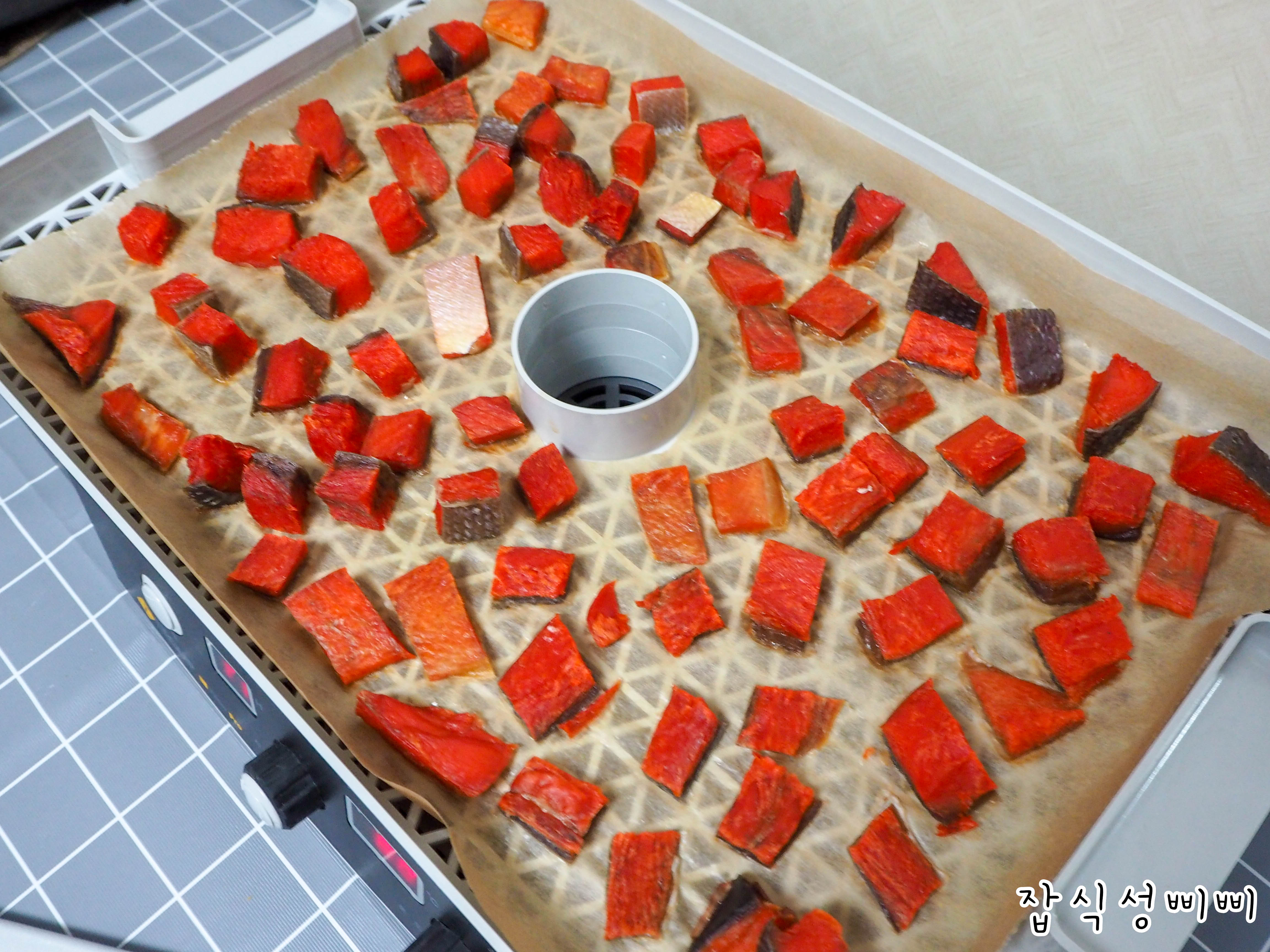 사진에서 보이는 것 처럼 조금은 과하게 건조된 것 같은 내 연어큐브들.. ㅋㅋㅋㅋ