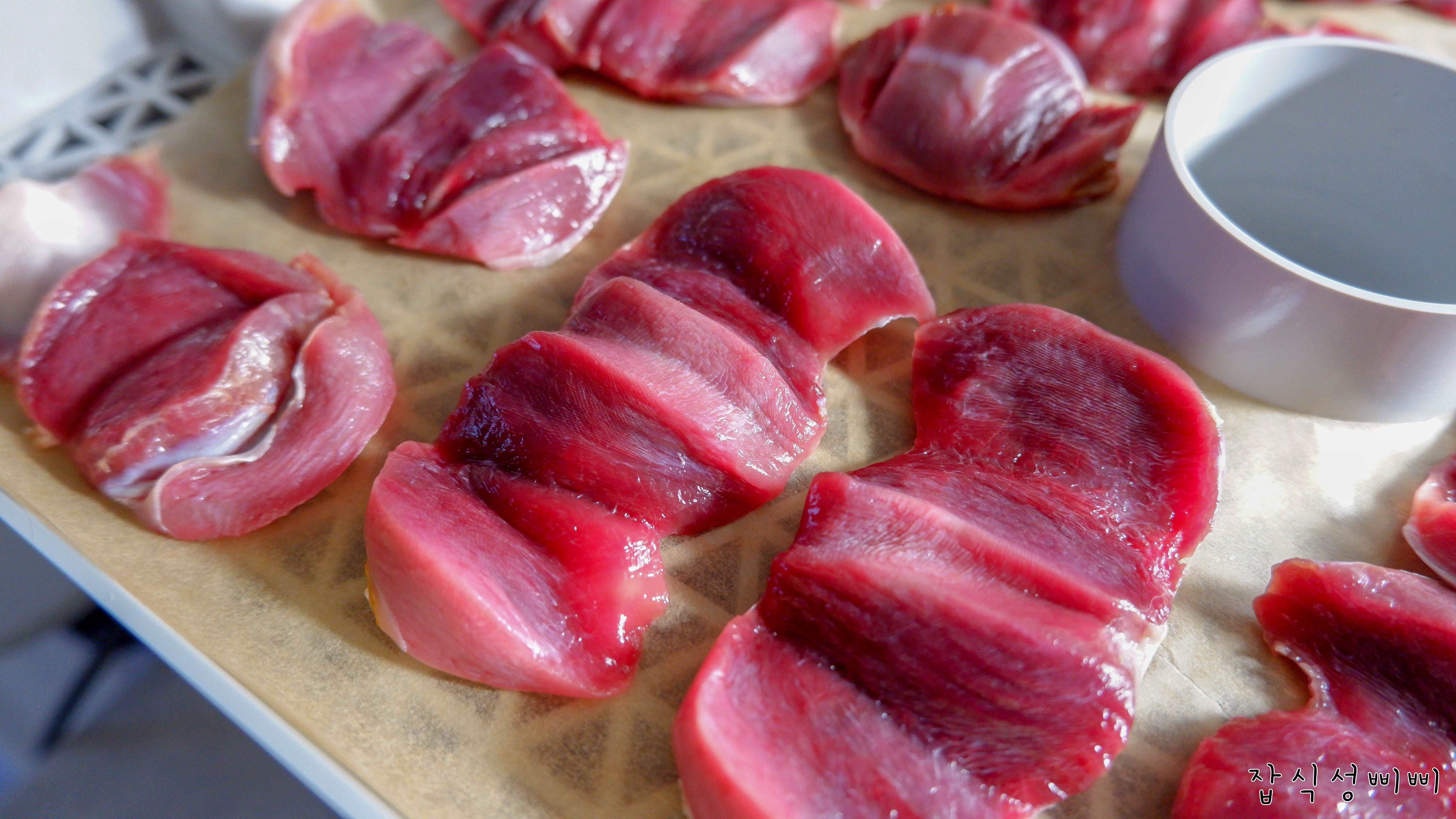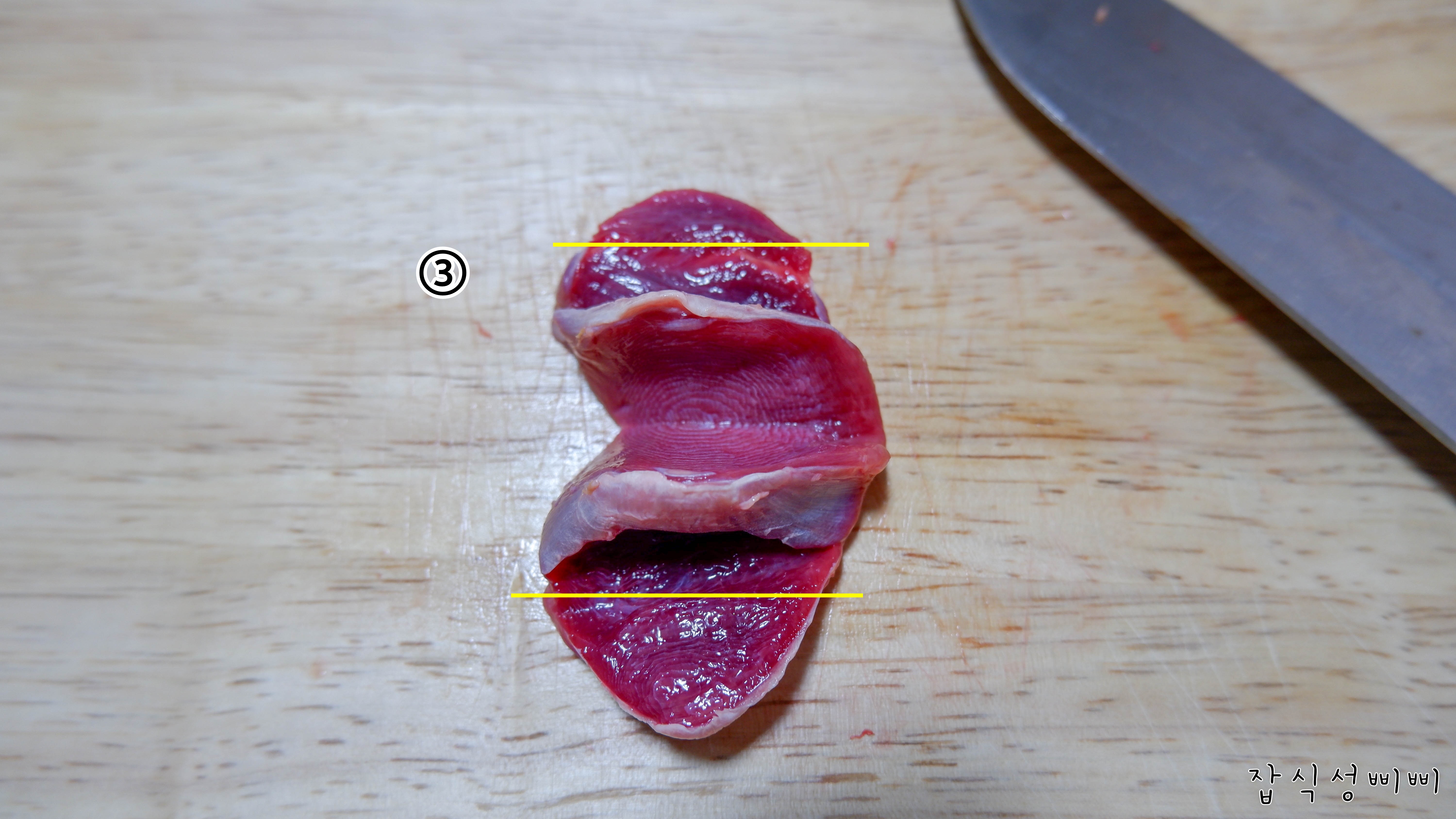 적당히 과한 지방이나 찌꺼기 부분만 제거해주시면 된답니다. 이제 손질 해보려고 해요!!