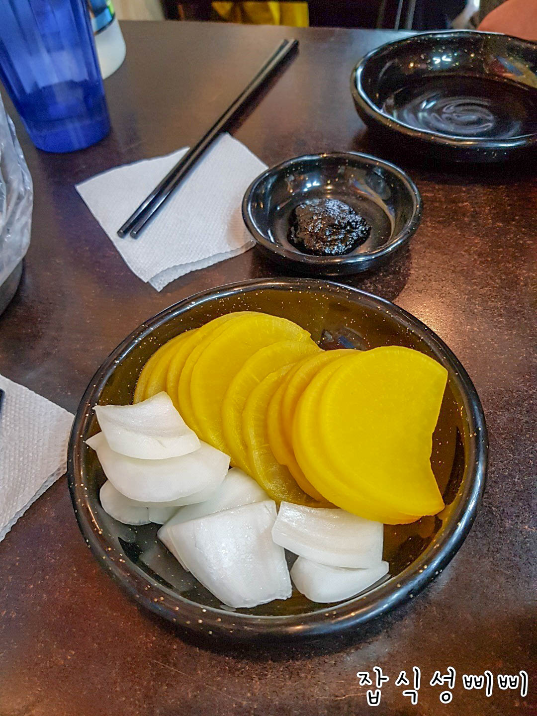 중국 요리에 빠질 수 없는 단무지와 양파 ~~ ㅋㅋ 식초를 쪼로록 뿌려서 단무지 먹으며..