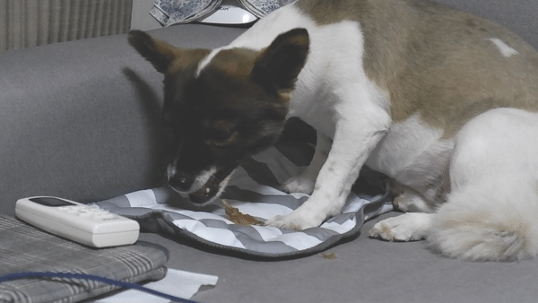 반은 노즈워크용으로 자르고 반은 개껌처럼 트위스트 꼬아주었어용 ㅎㅎㅎ