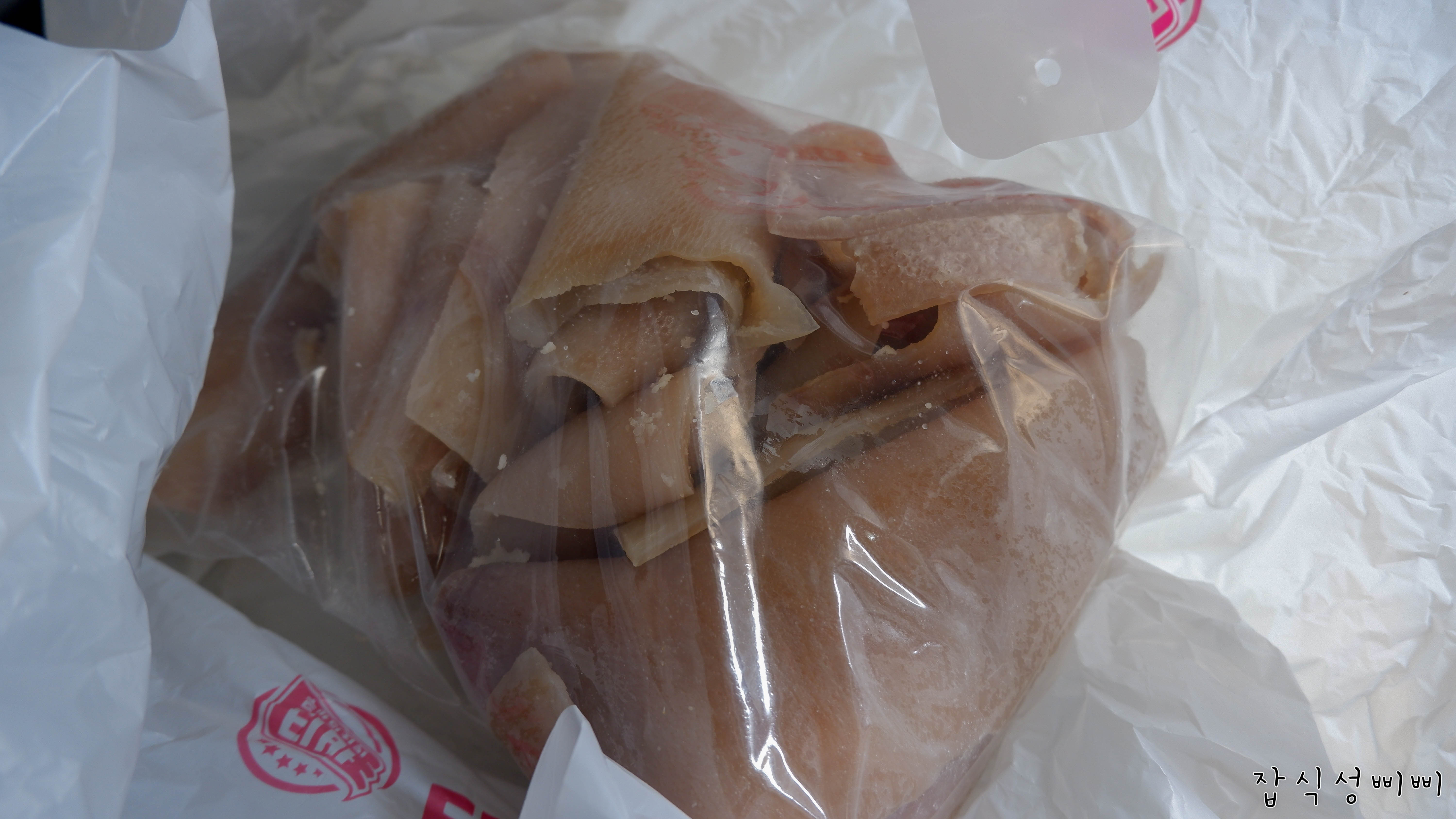 저렴한 돼지껍데기 가격에 반해서 2kg나 주문했답니다.. 하.. 저의 실수였죠..