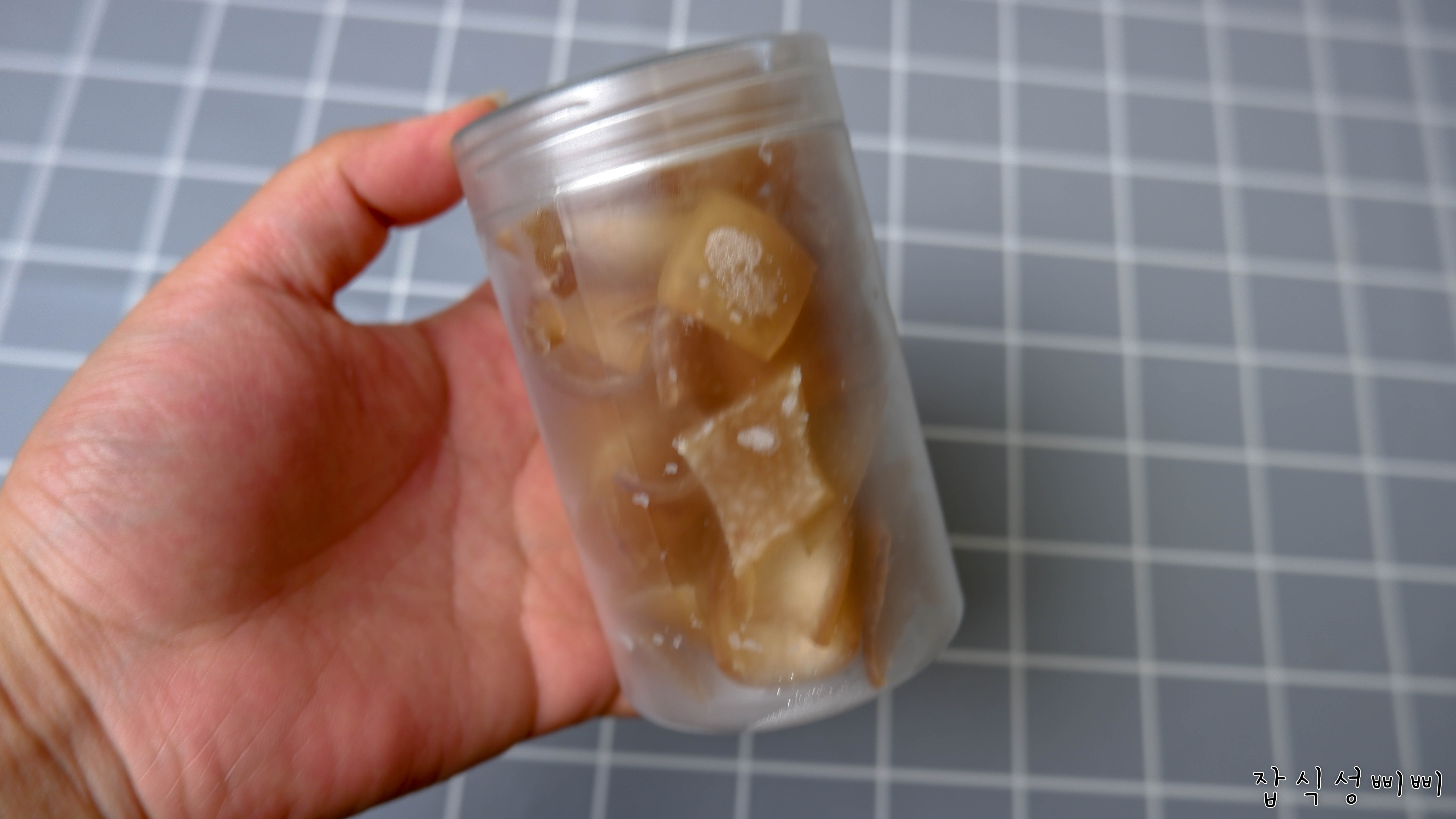노즈워크용은 투명 용기에~ 껌모양은 비닐에 넣고 냉동실에 넣었답니다.