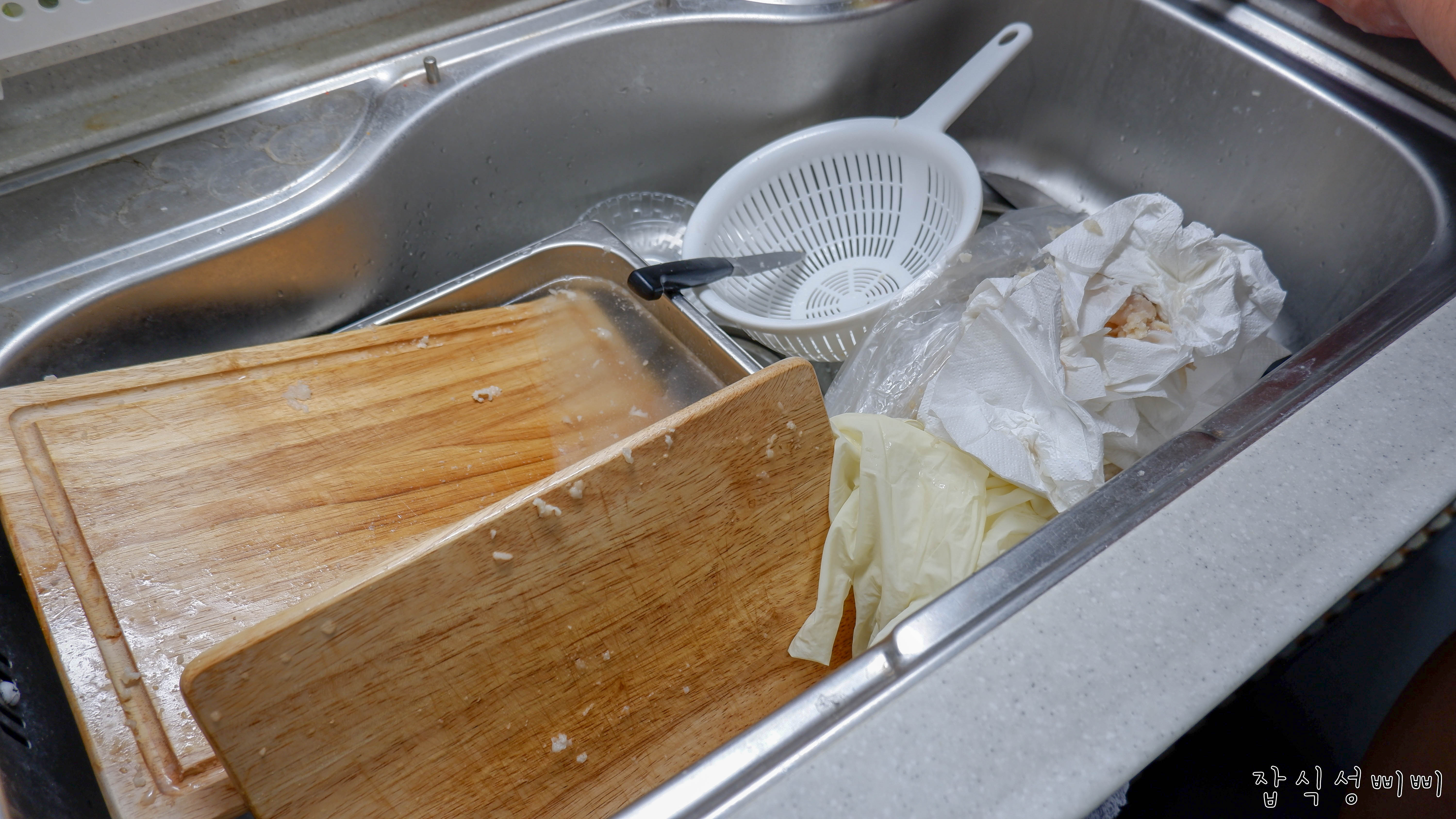 *** 싱크대에 돼지껍데기 외에 다른 그릇들은 모두 치워주세요. 기름 범벅됩니다 ㅠㅠㅠ***