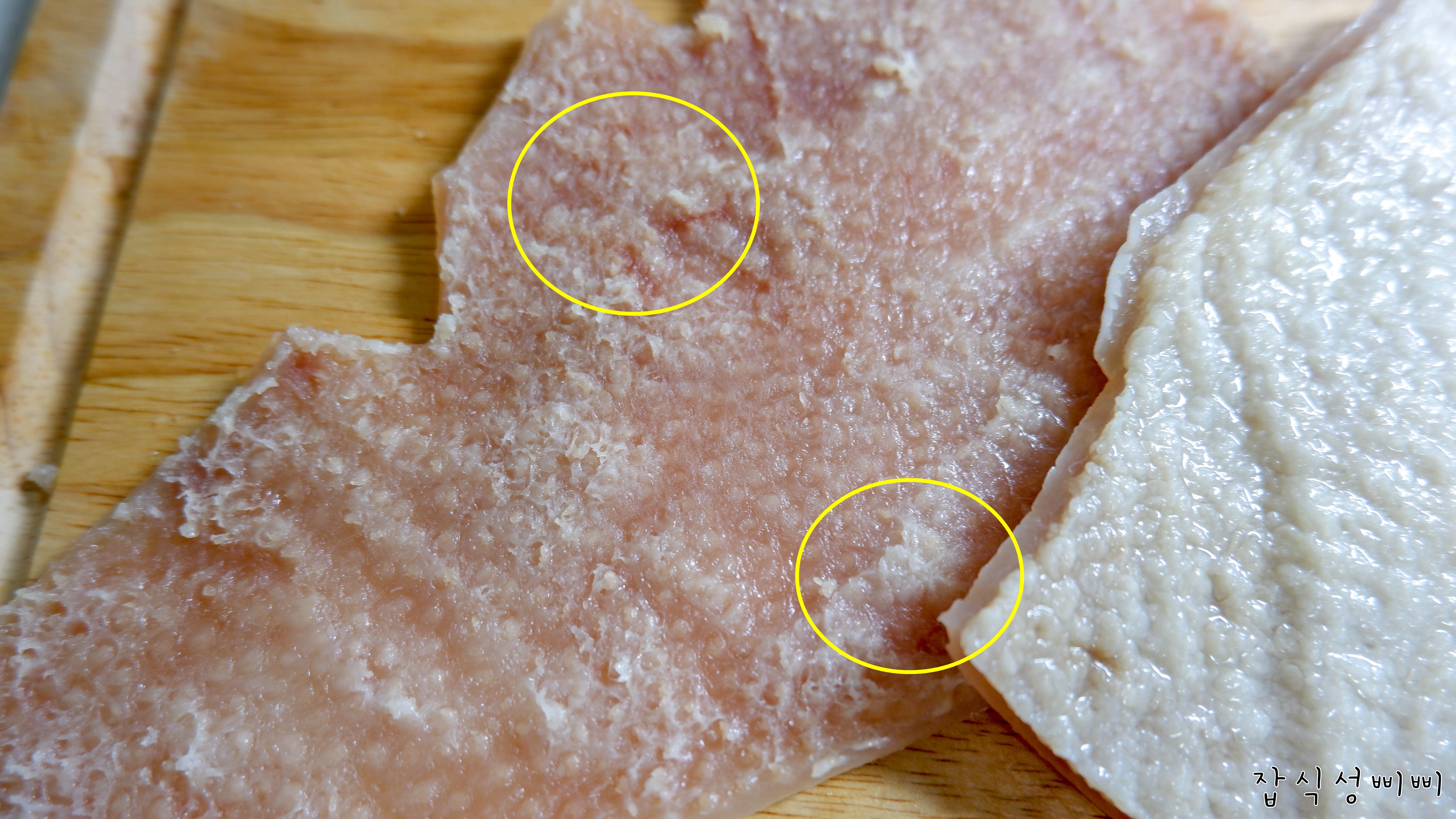사진처럼 왼쪽에 하얗게 보이는건 기름 덩어리 제거가 완벽하게 되지 못한 껍데기에요 ㅠㅠㅠ 아쉽아쉽