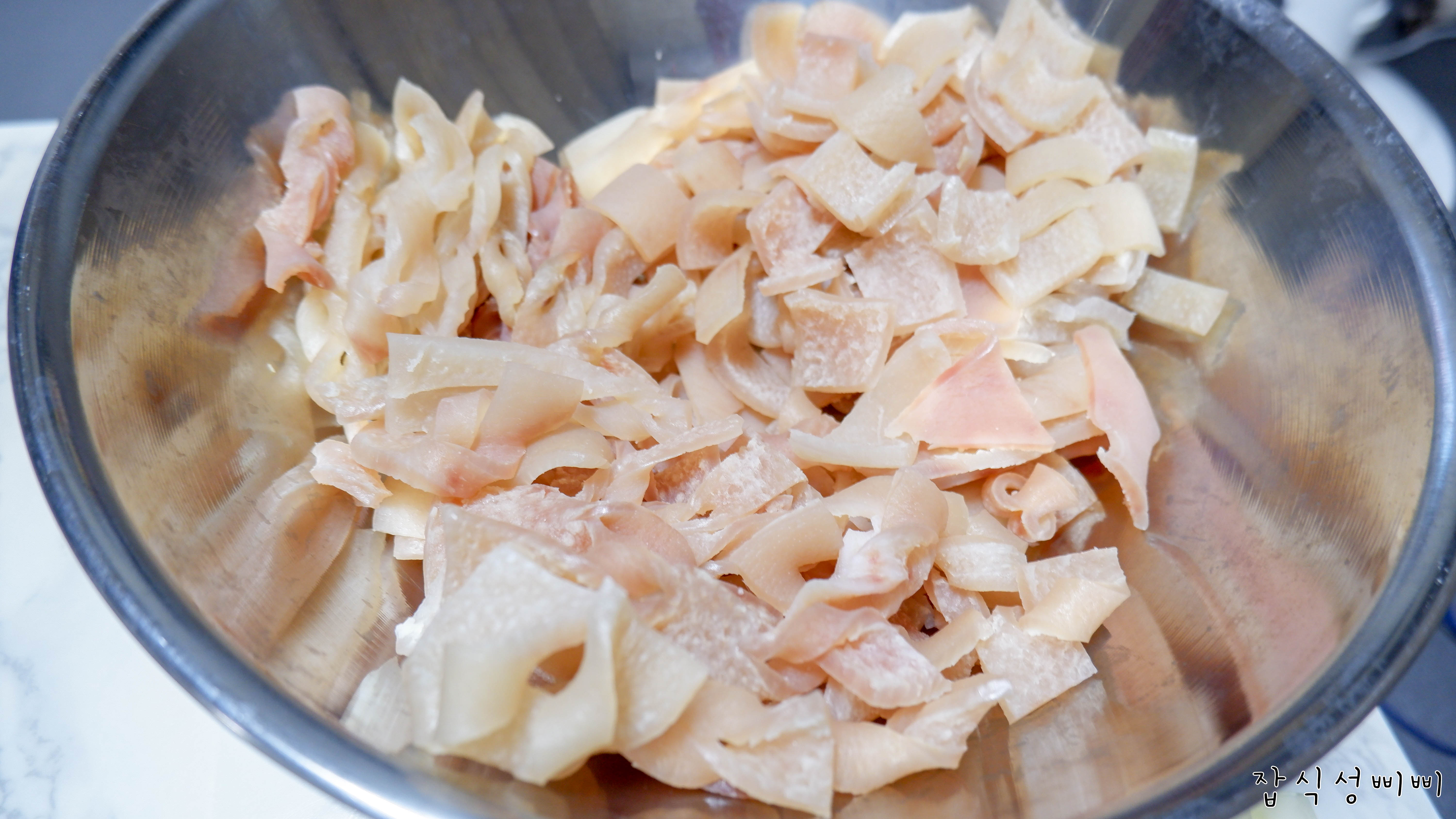 아이들이 잘 먹고 콜라겐이 풍부해 다이어트에도 좋고 피부에도 좋다는 돼지껍데기~~