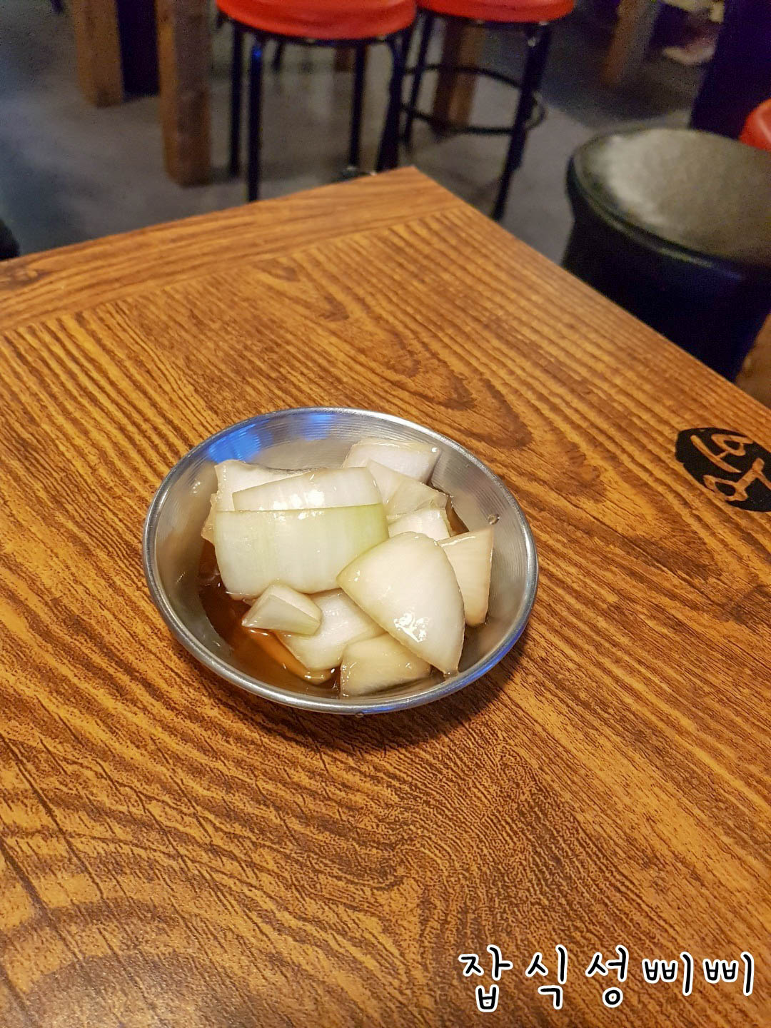 여쭤보니 주문이 많이 밀렸다고 하시더라구요. 뭐 이미 들어와서 앉았으니 기본 안주에 소주만 들이켰네요.