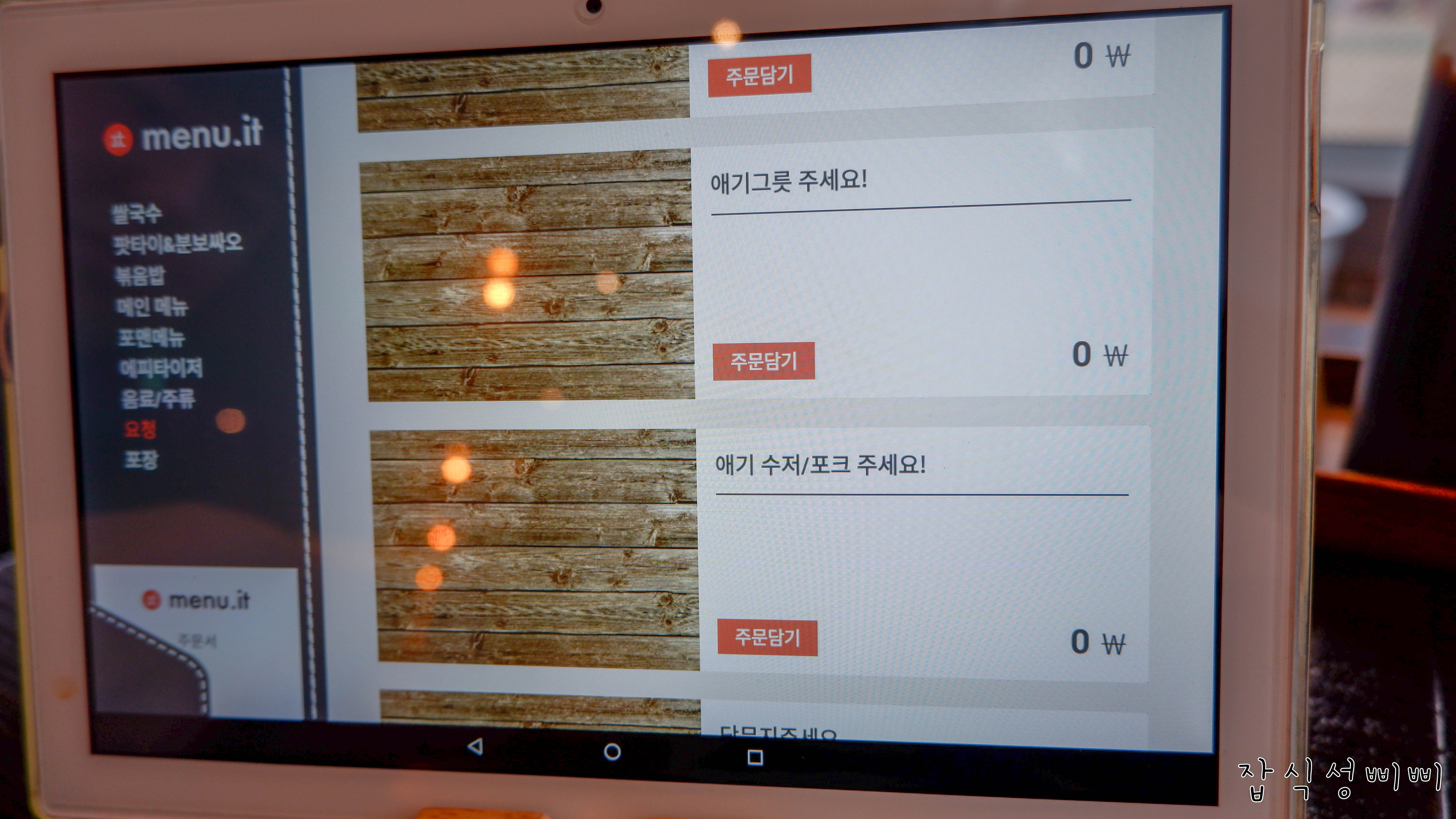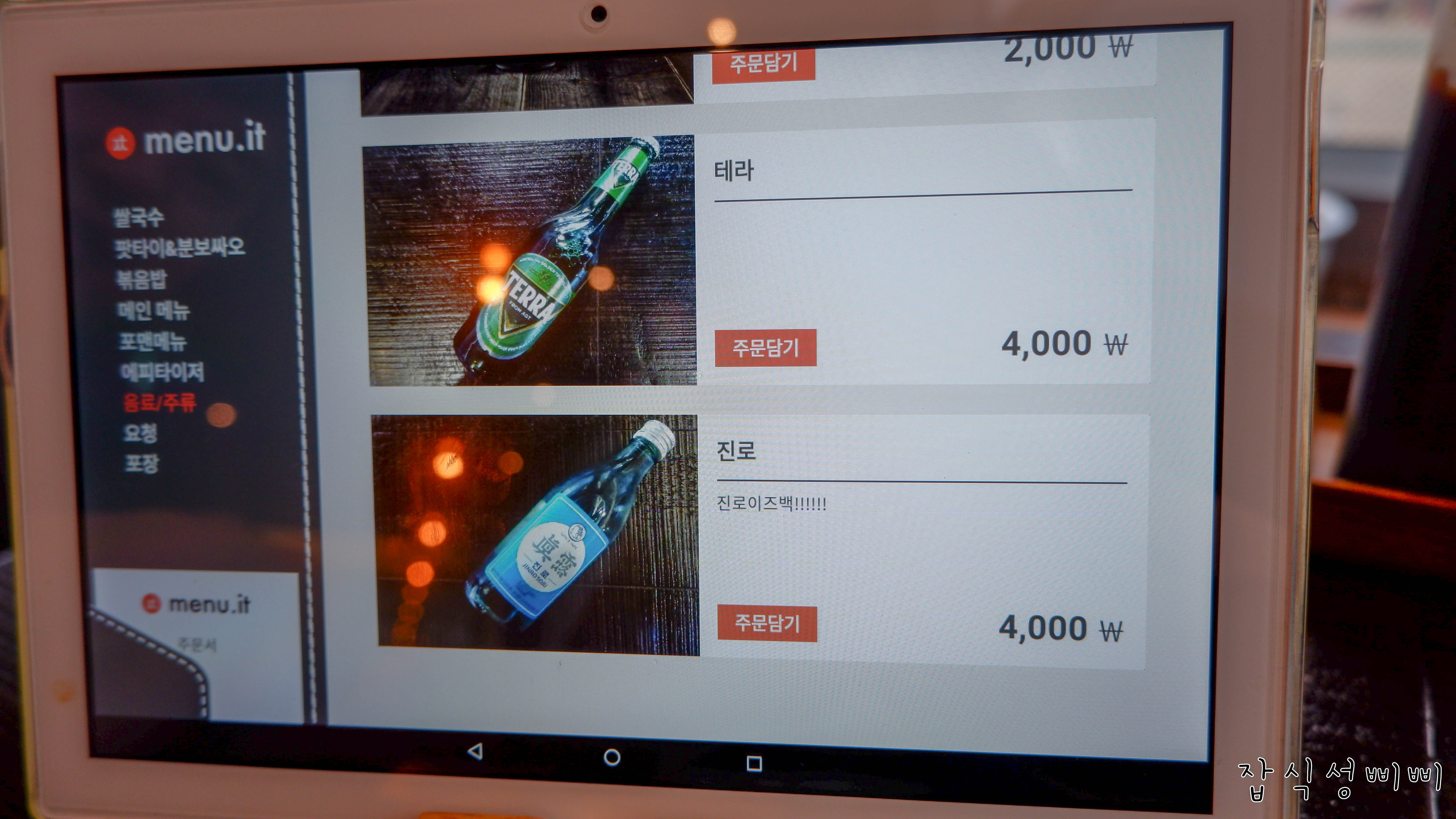 모든 테이블마다 이렇게 휴대용 태블릿이 준비되어 있더라구요. 바로 요게 메뉴판입니다 +_+