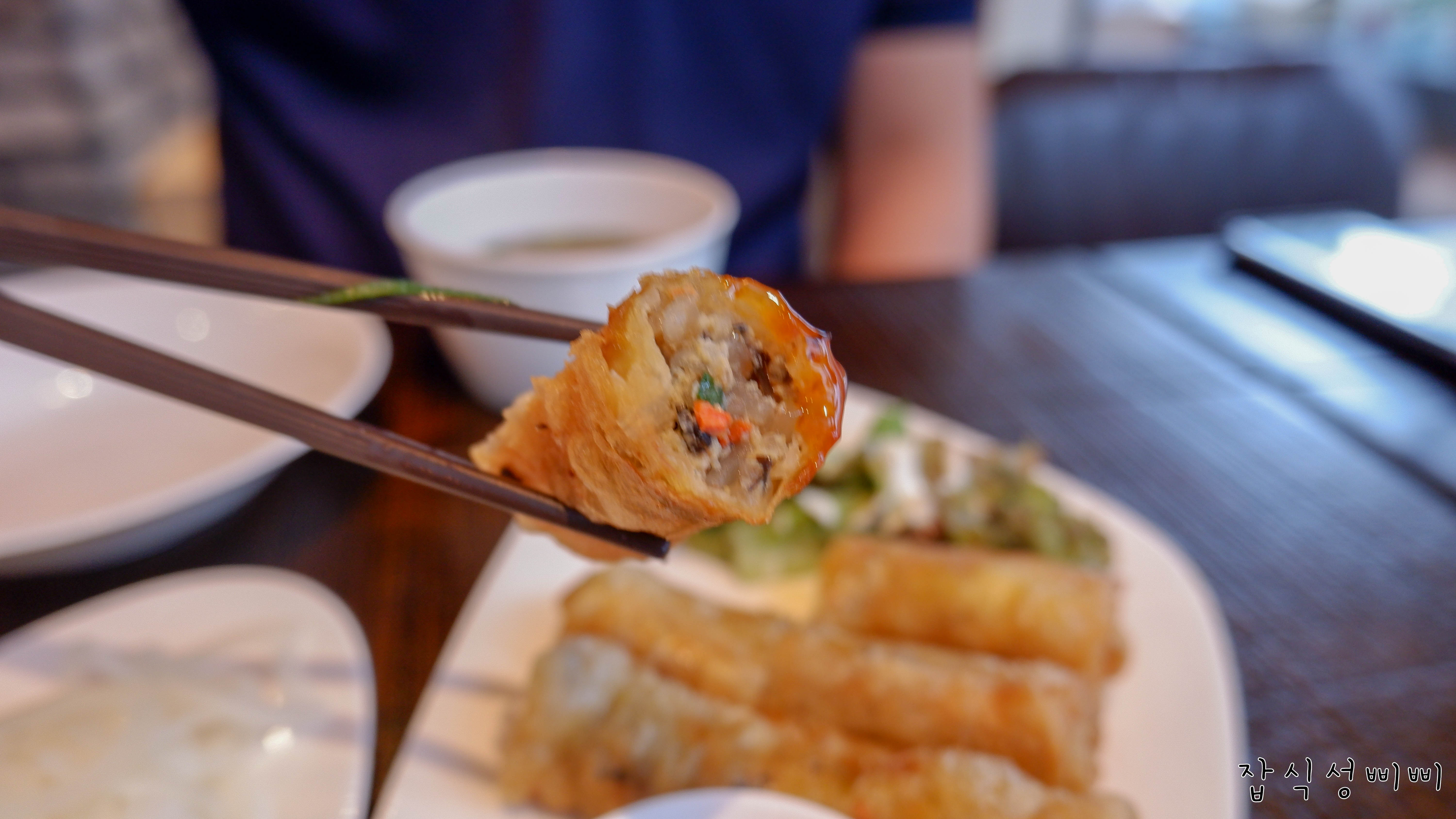 같이 나온 칠리소스에 콕 찍어먹으면 튀김이지만 느끼한 맛은 줄고 바삭바삭 맛있는 식감과 맛만 남는 짜조 :)
