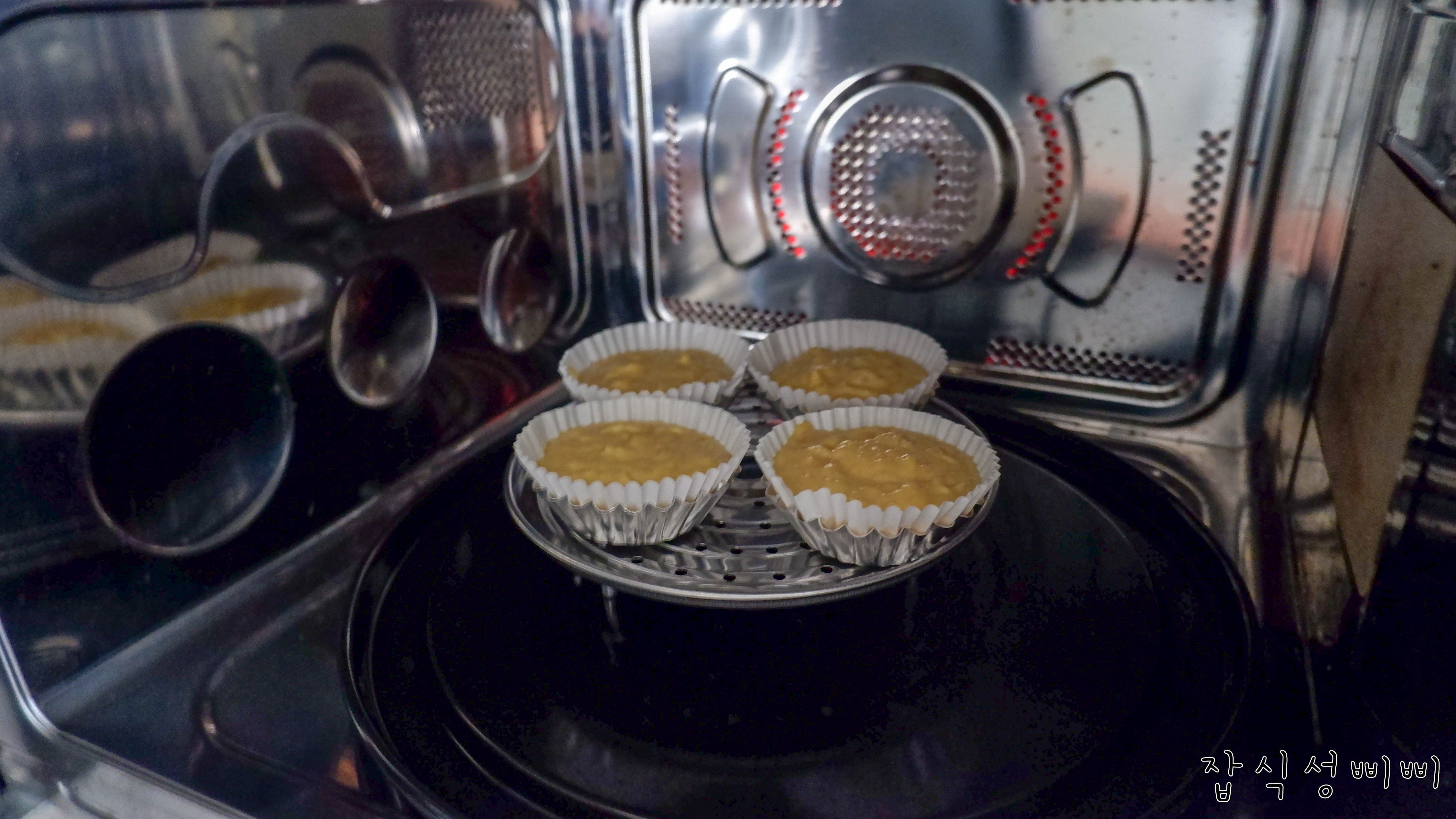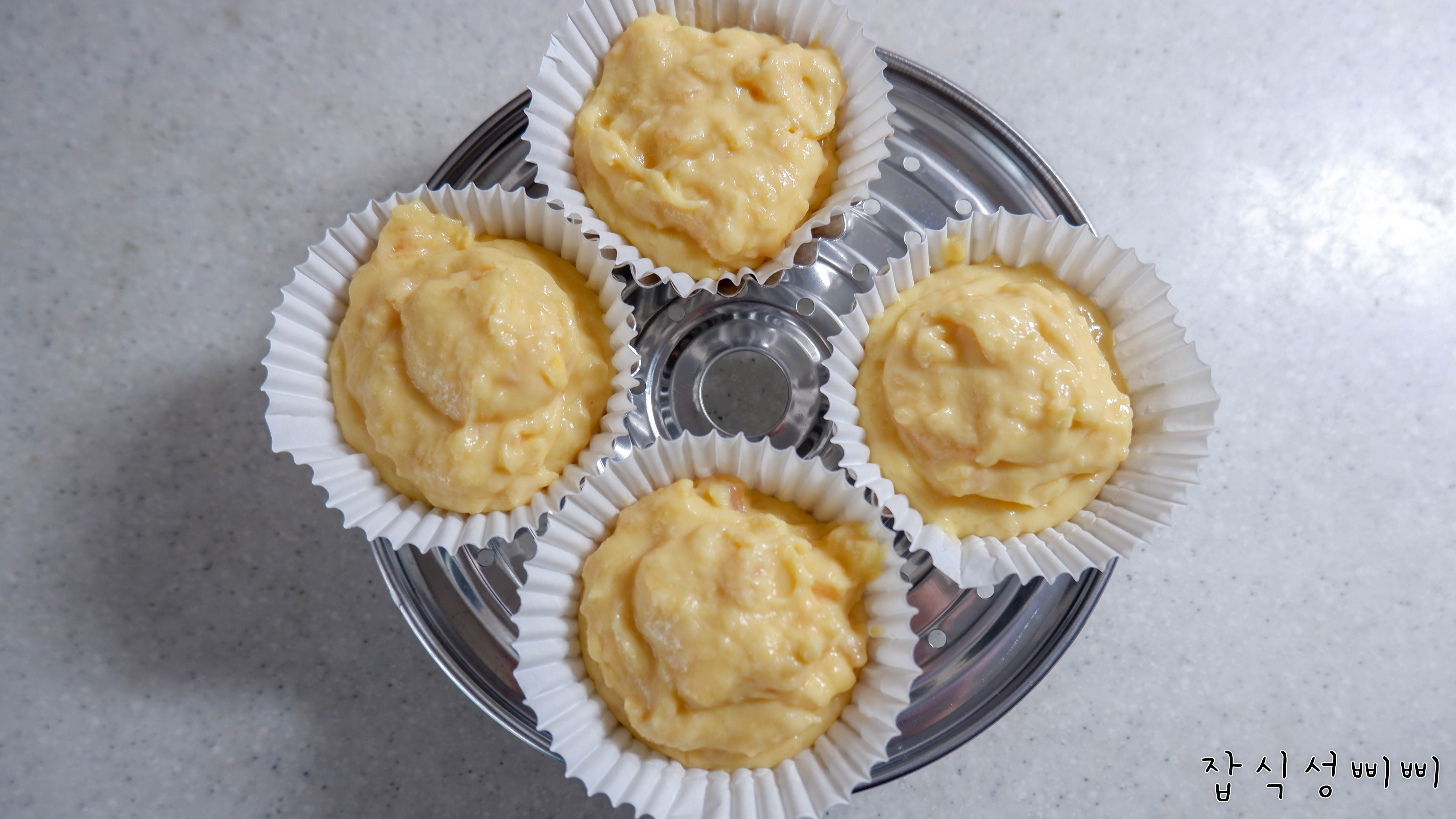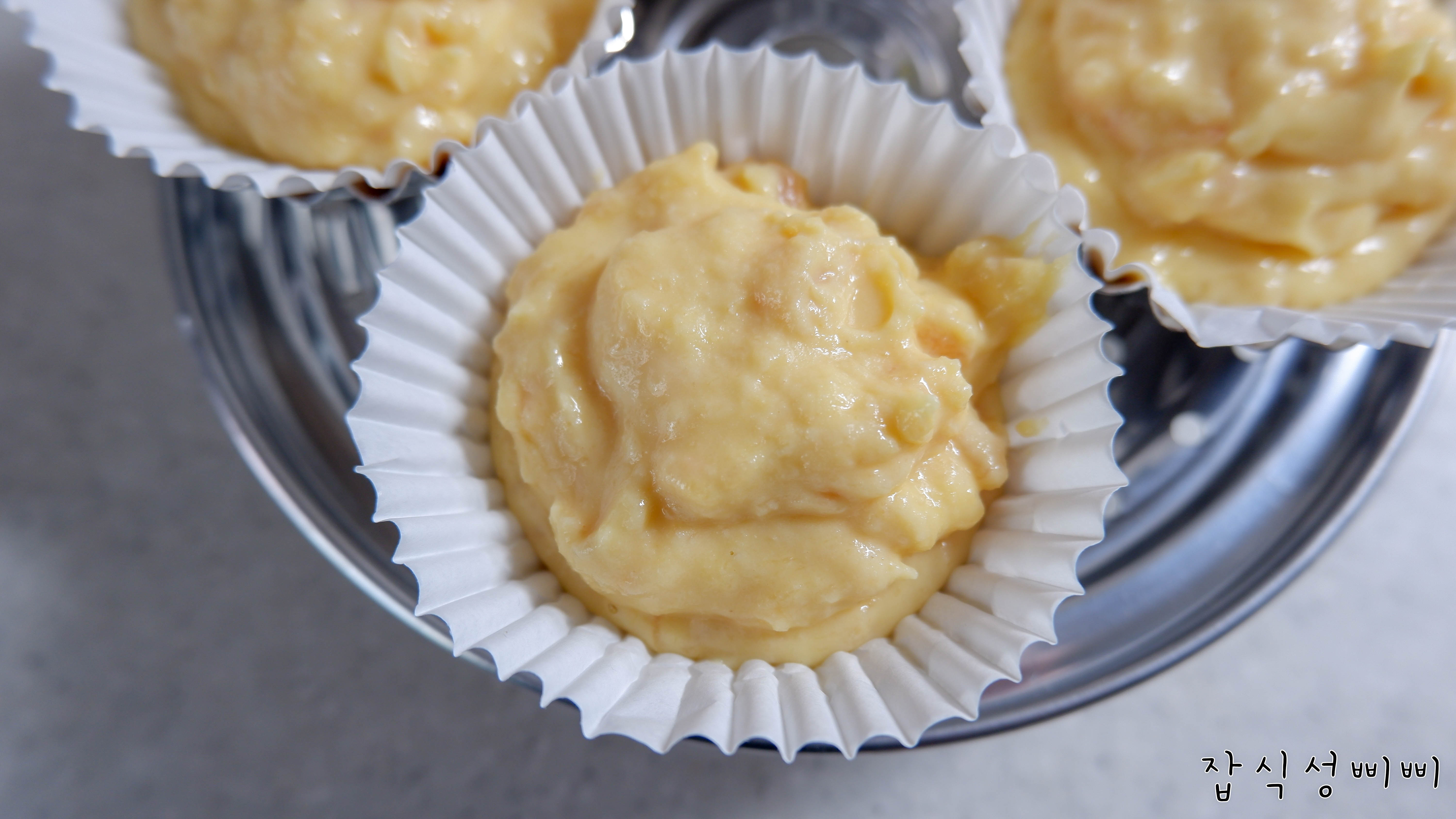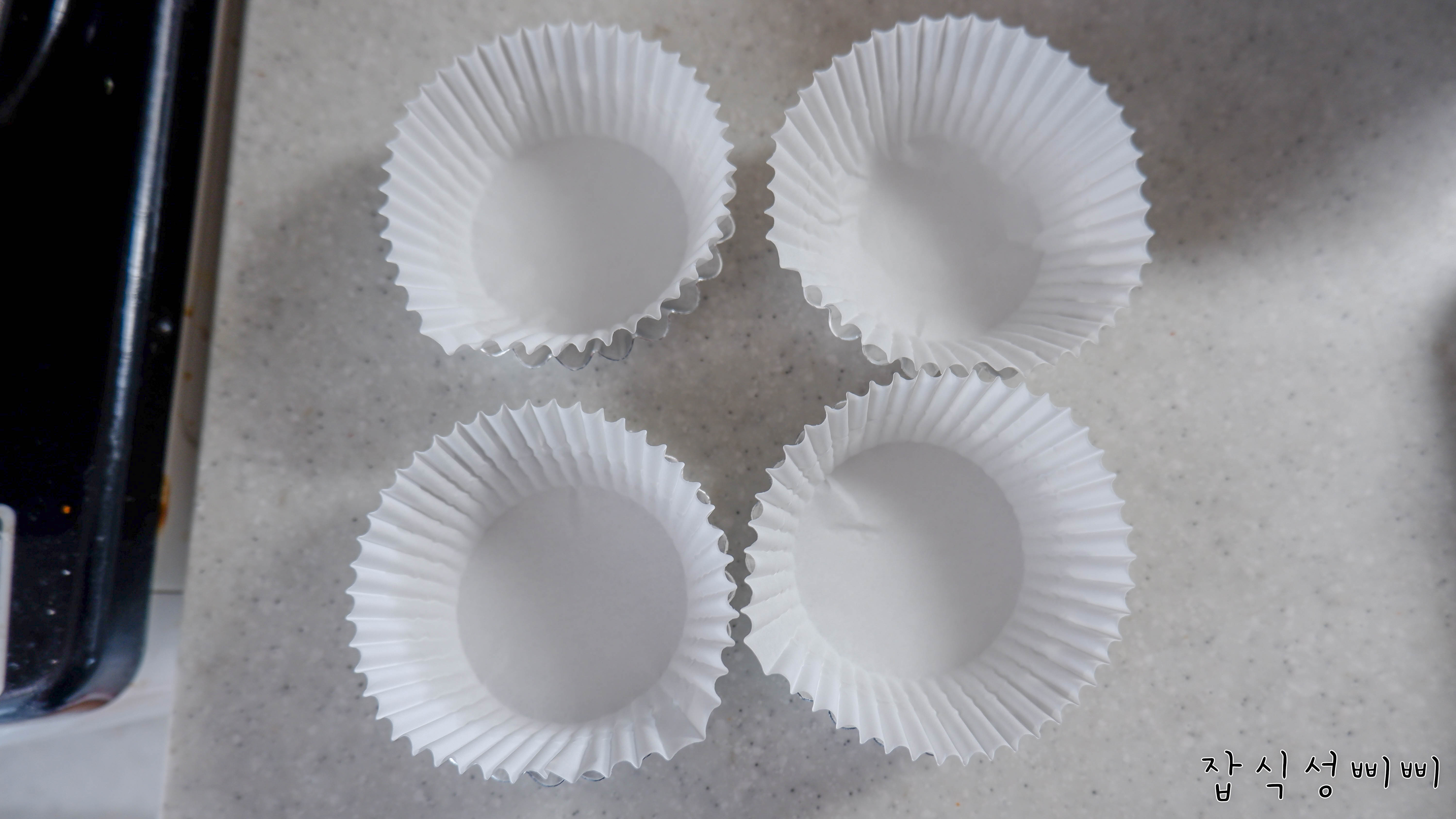 원래는 머핀컵 안쪽에 올리브유를 발라줘야하는데, 깜빡했네요. 더위먹었는지 ㅠㅠㅋㅋ