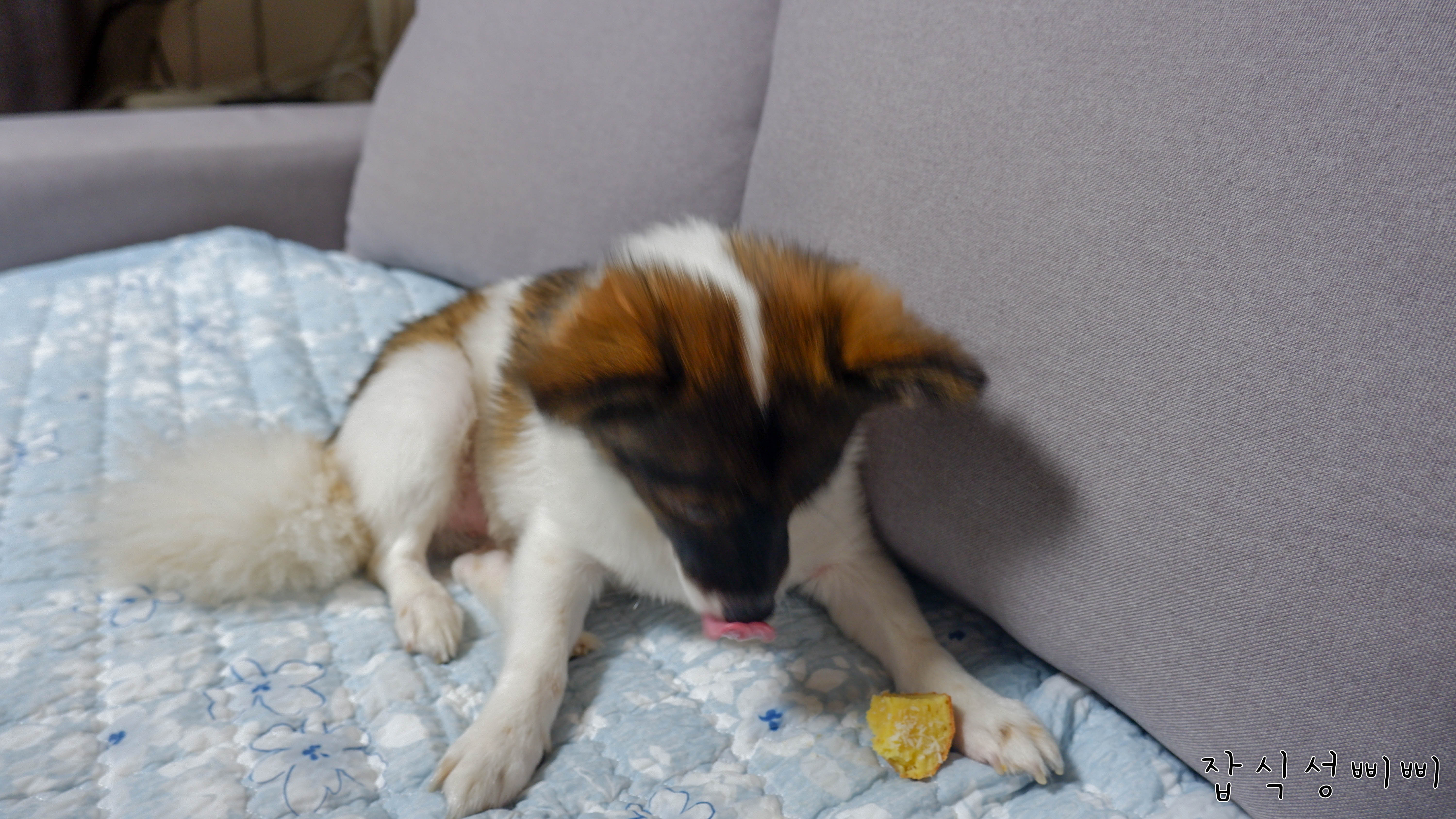 겨울이는 항상 사진찍기 어려운 강아지,, ㅠㅠ 주자마자 들고 도망가고 절대 보여주지 않아요 ㅋㅋㅋ