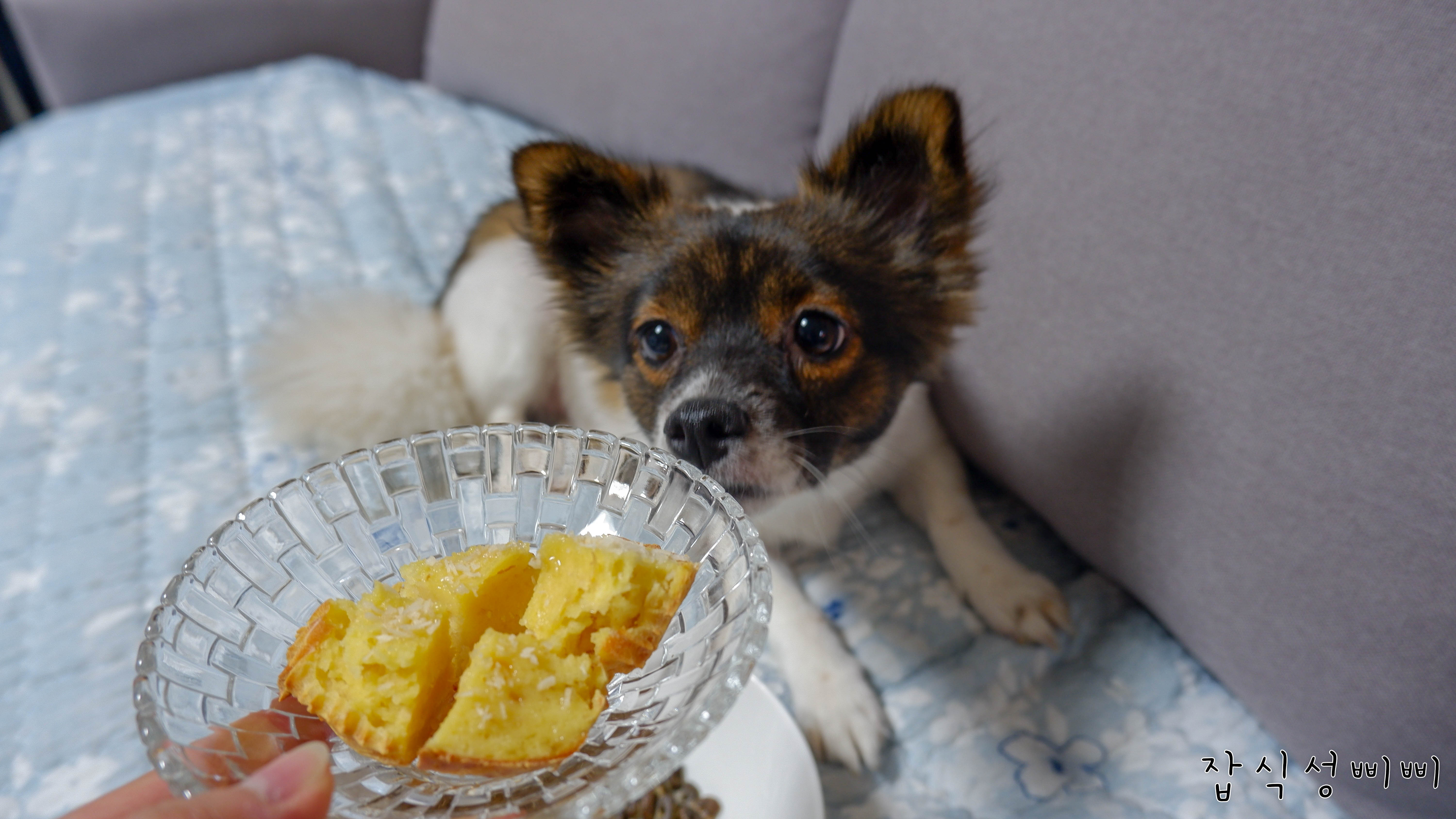 달달한 코코넛 향이 머핀과 만나니 정말 그럴듯한 강아지 베이킹이 완성되었어용 ㅎㅎ