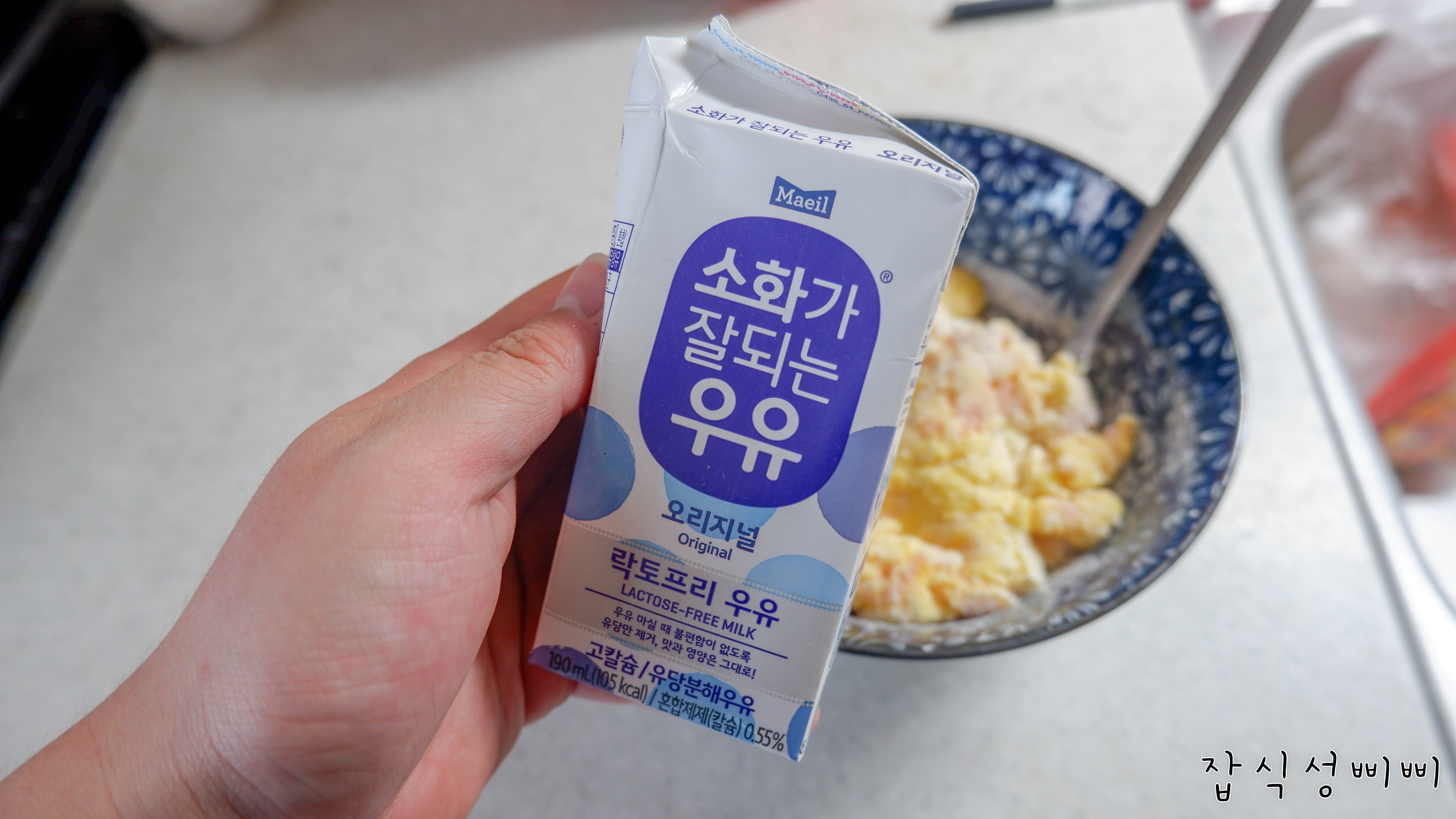 멸균우유의 용량이 190ml인데 절반하고 쪼금 안되게 쓴 것 같아요. 남은 우유는 애기들이 먹었지용 ㅋㅋㅋ