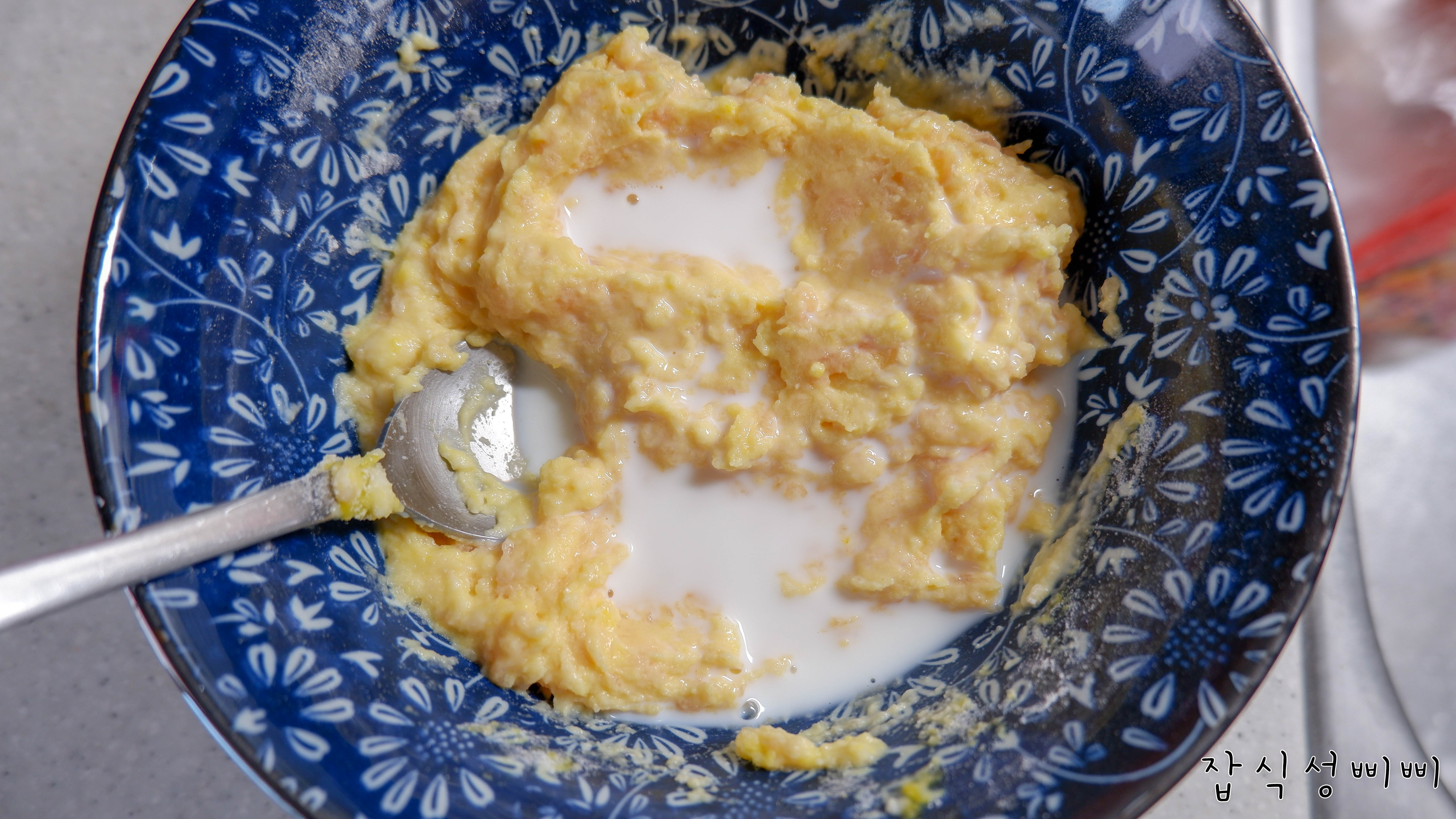 반죽의 농도를 맞추기 위해 우유를 조금씩 부어주세요.