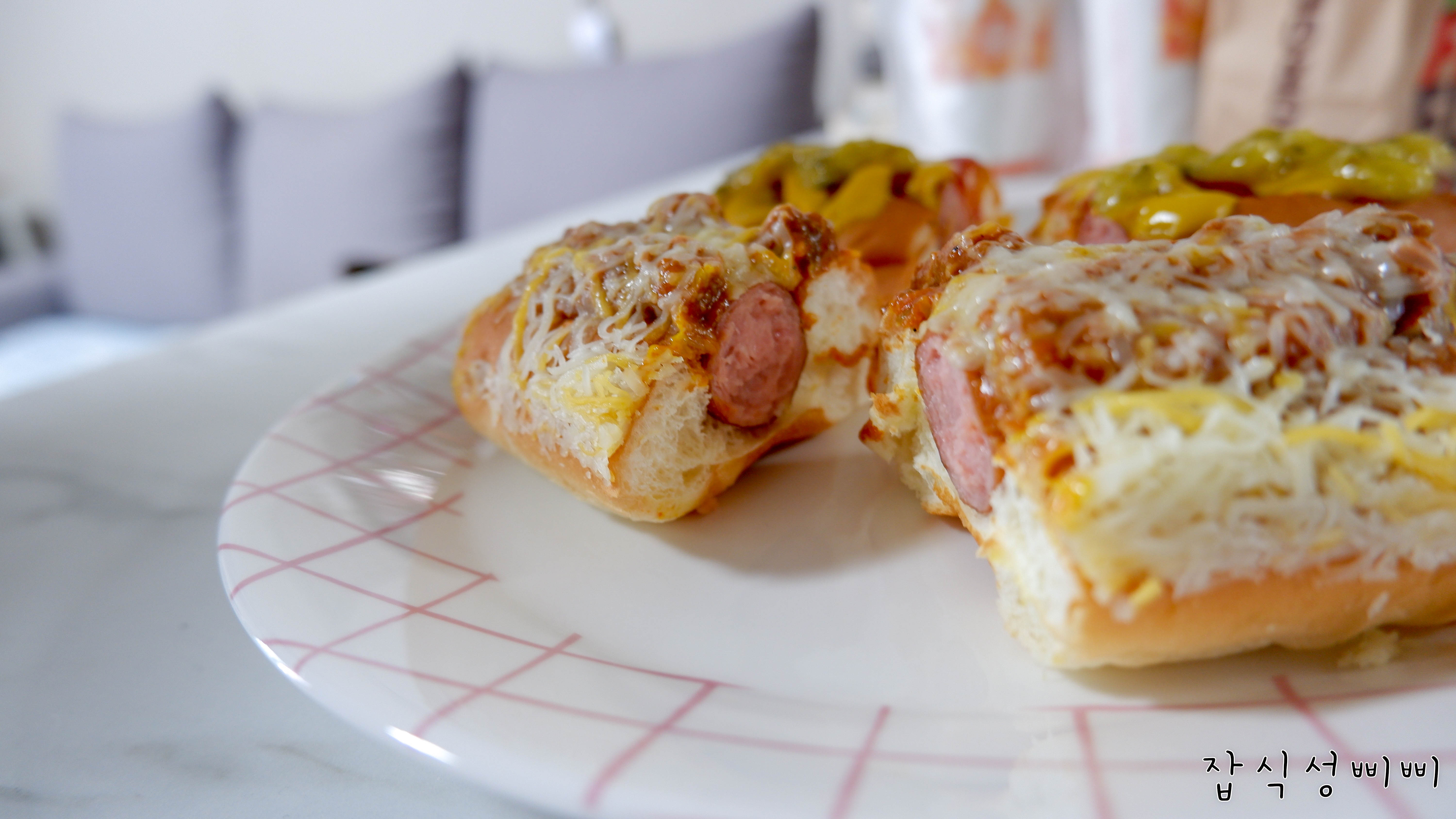 인터넷으로 찾아보니 비프칠리독이 위에 치즈가 올라간 소세지이고 아메리칸 독은 가장 베이직한 비주얼이라고 하더라구요.
