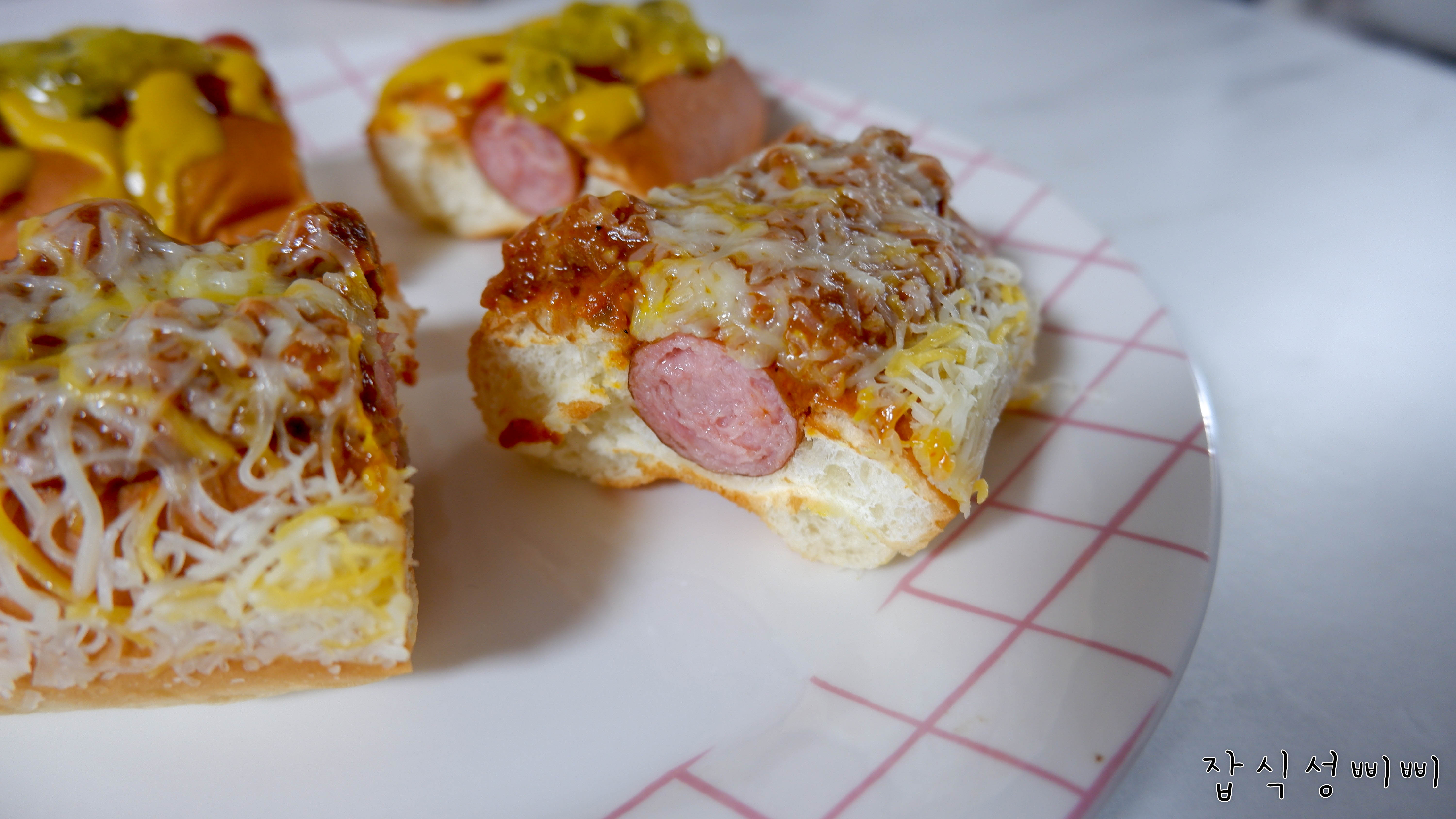 렐리쉬 소스까지 뿌려서 반으로 컷팅해 셋팅해본 모습이에요!