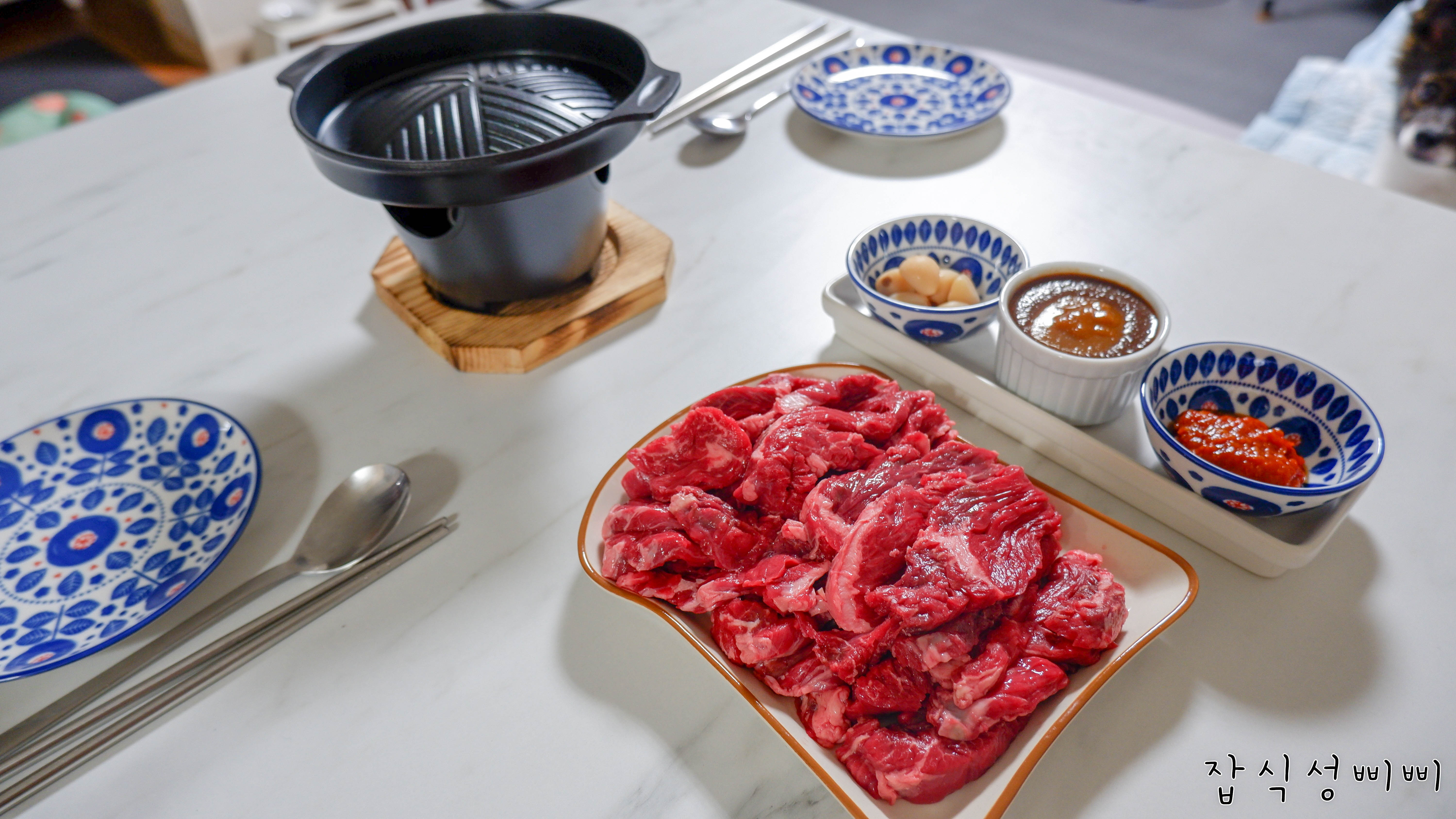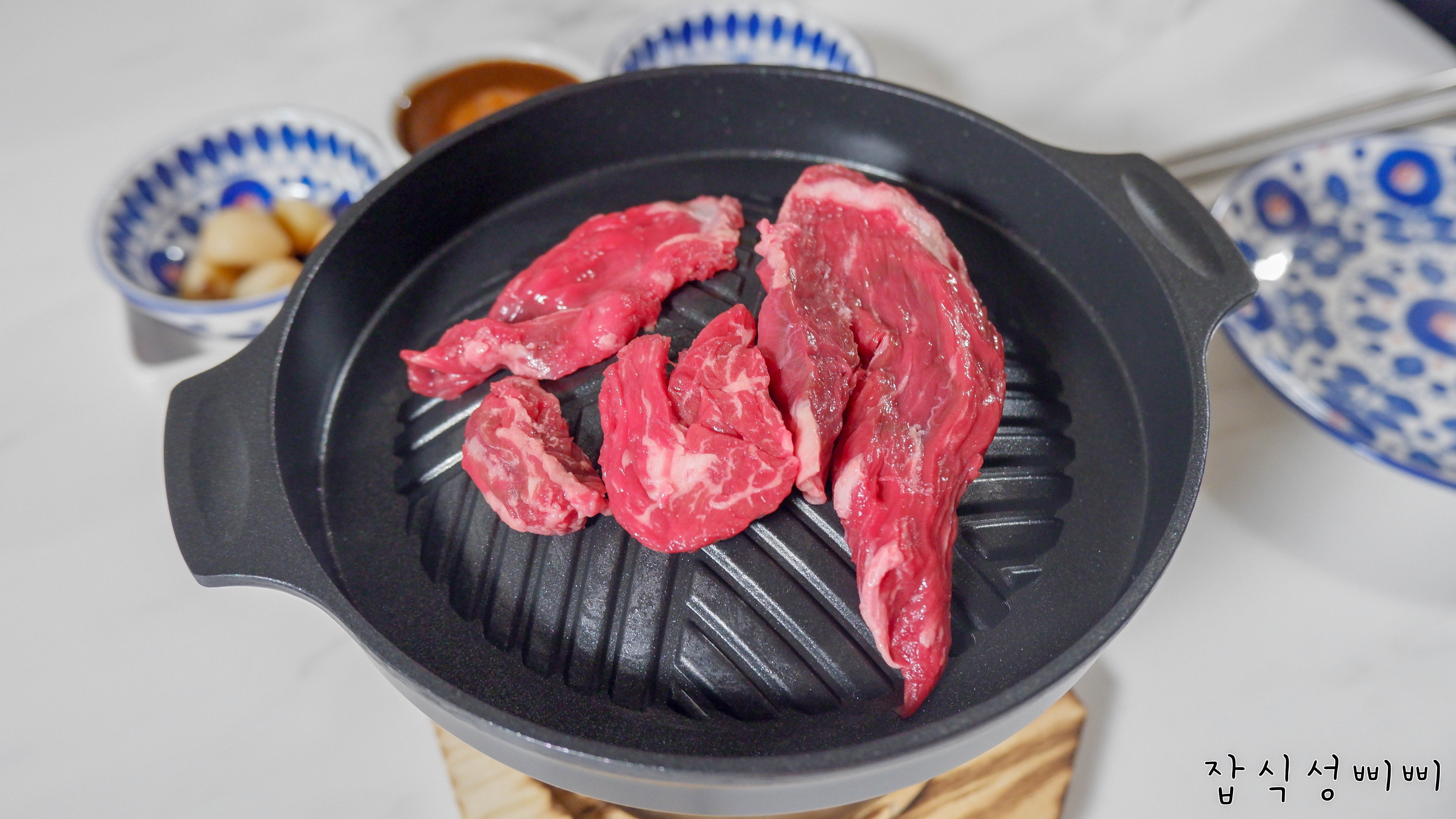 집에서 소고기를 구워먹는 날에는 가스불에 후다닥 구워서 빨리빨리 먹는게 일상이었거든요 ㅠㅠ