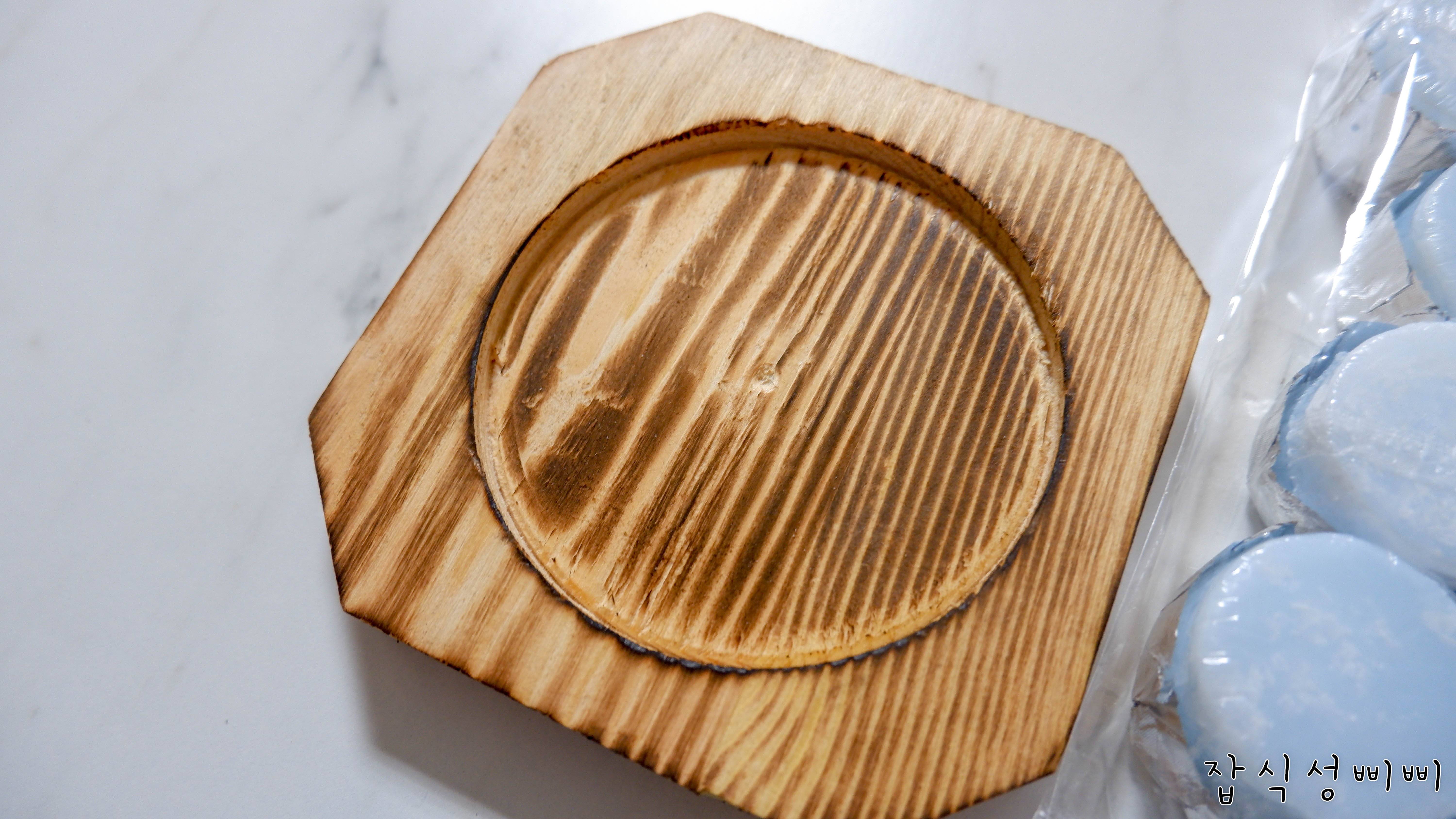 식탁 겸 책상에 놓고 쓰는거라, 혹시 이염이나 그을음이 생길까봐 우드받침대는 필수 선택이었구요.
