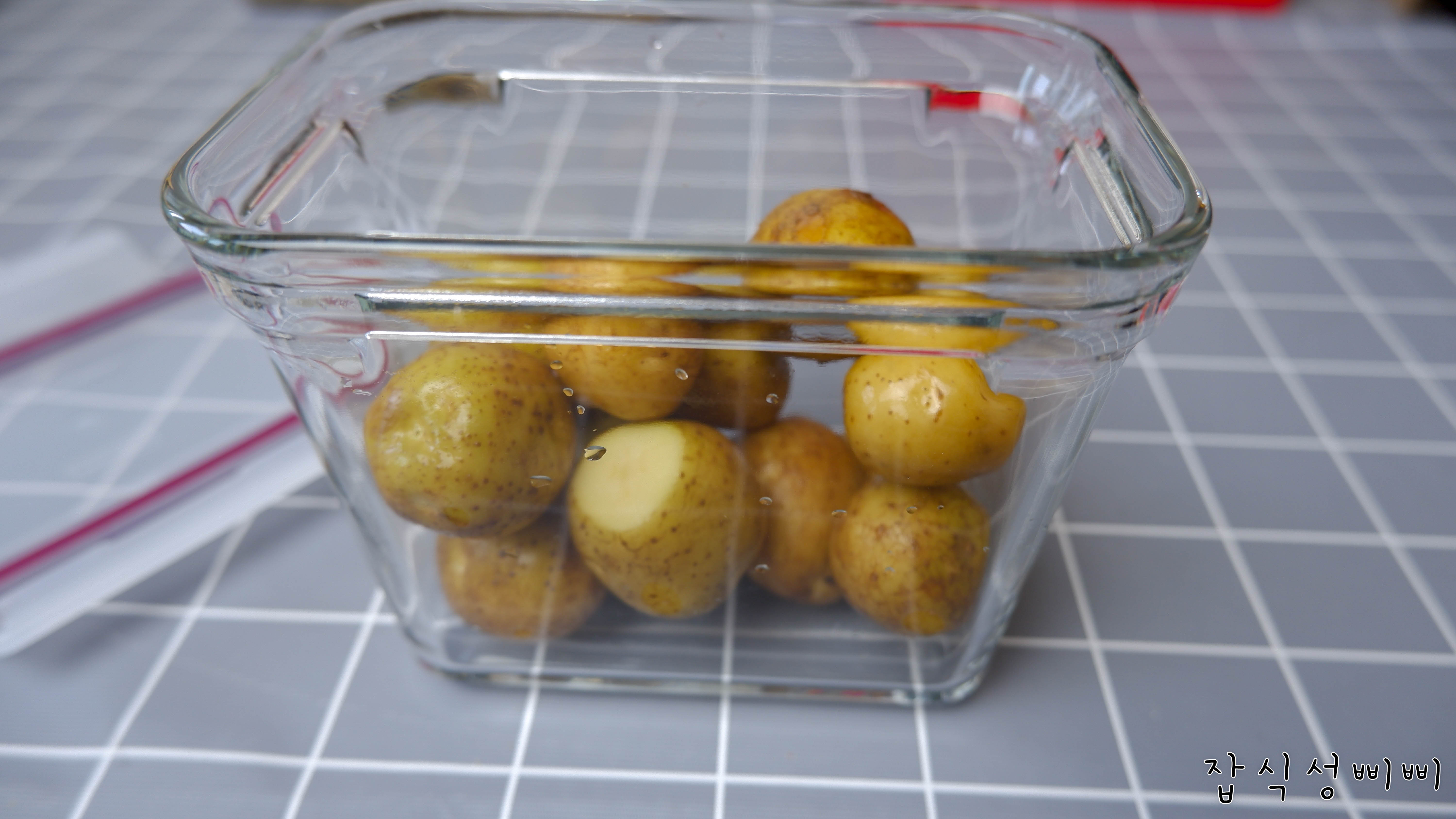 휴게소에서 파는 알감자를 만들어보았어요~ ㅎㅎ 양이 많아서 글라스락 플러스에 넣었지요!