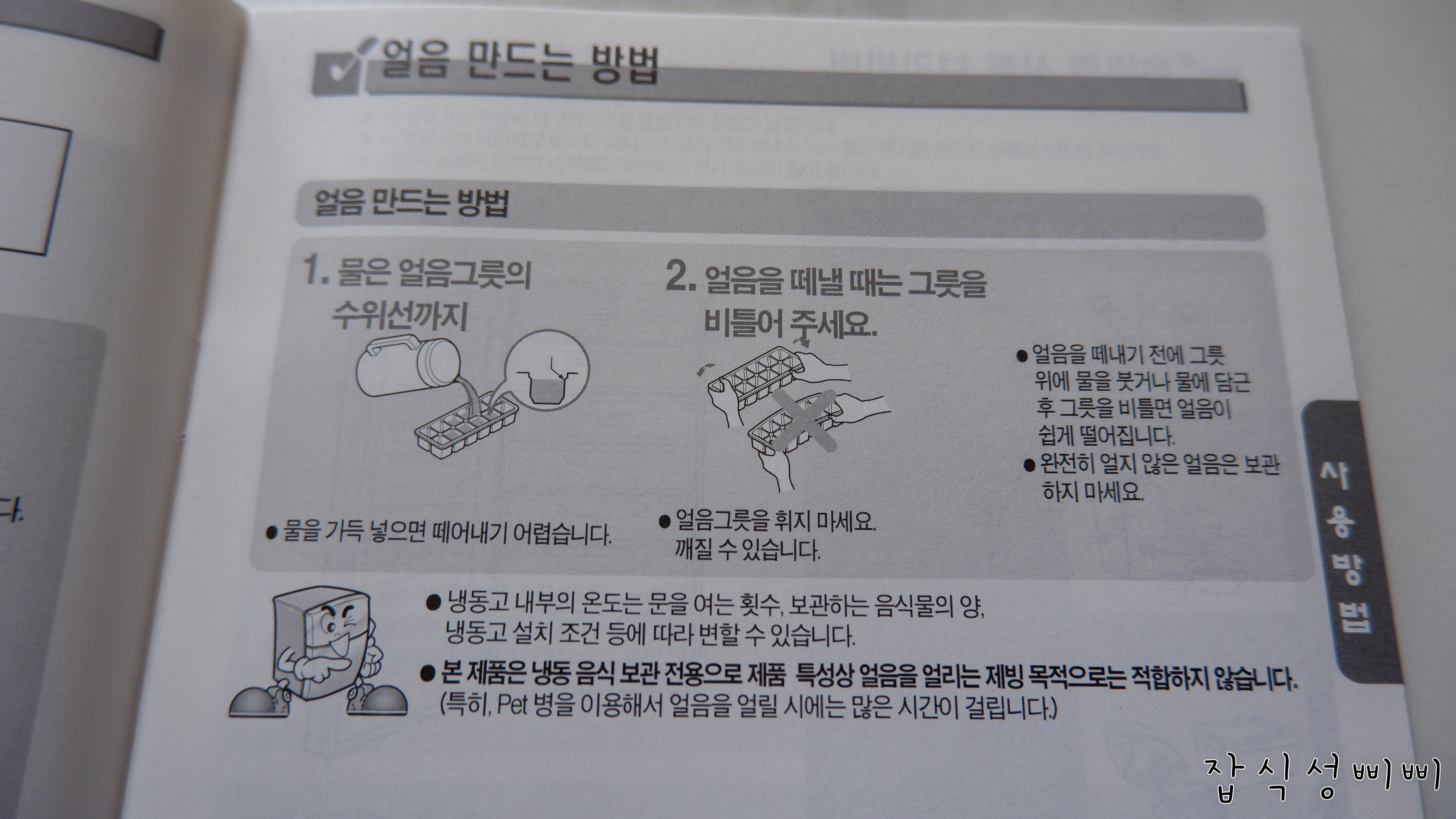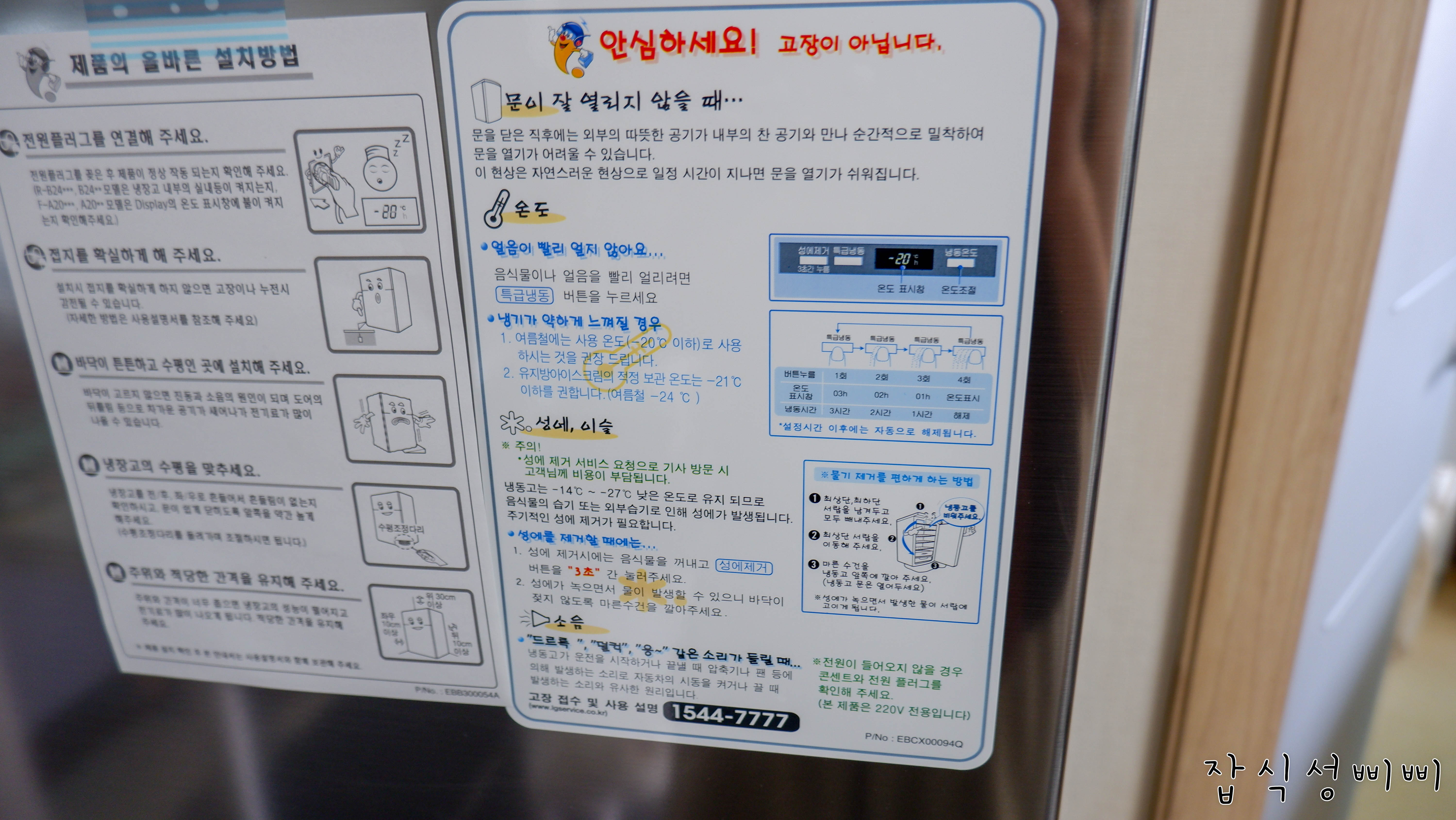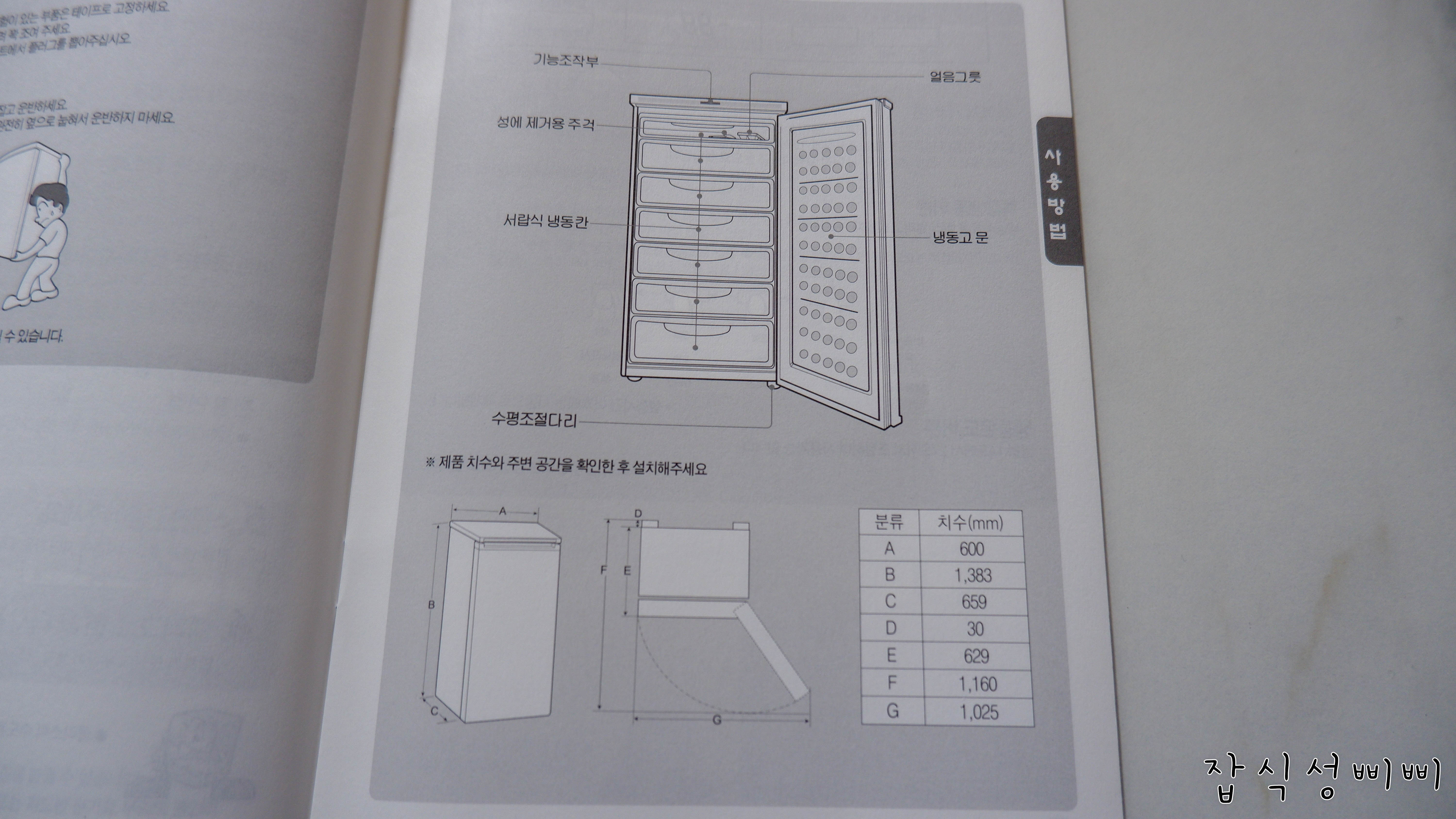 냉동고 전면에는 일반적인 설명이 붙어있어요.