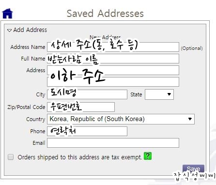 마음에 드는 부품도 찾았고 장바구니에 담아두었다면 이제 주소를 입력할 차례입니다.