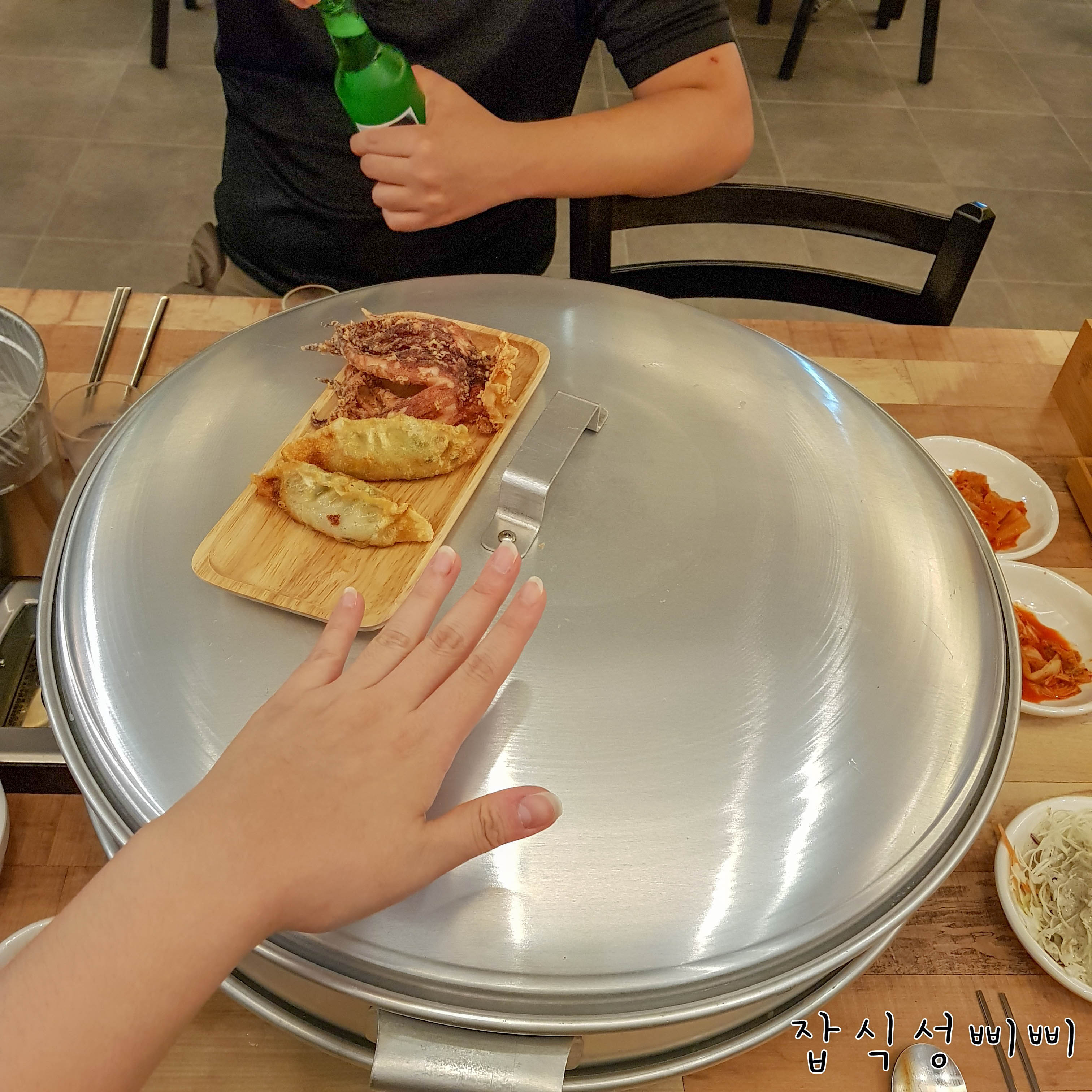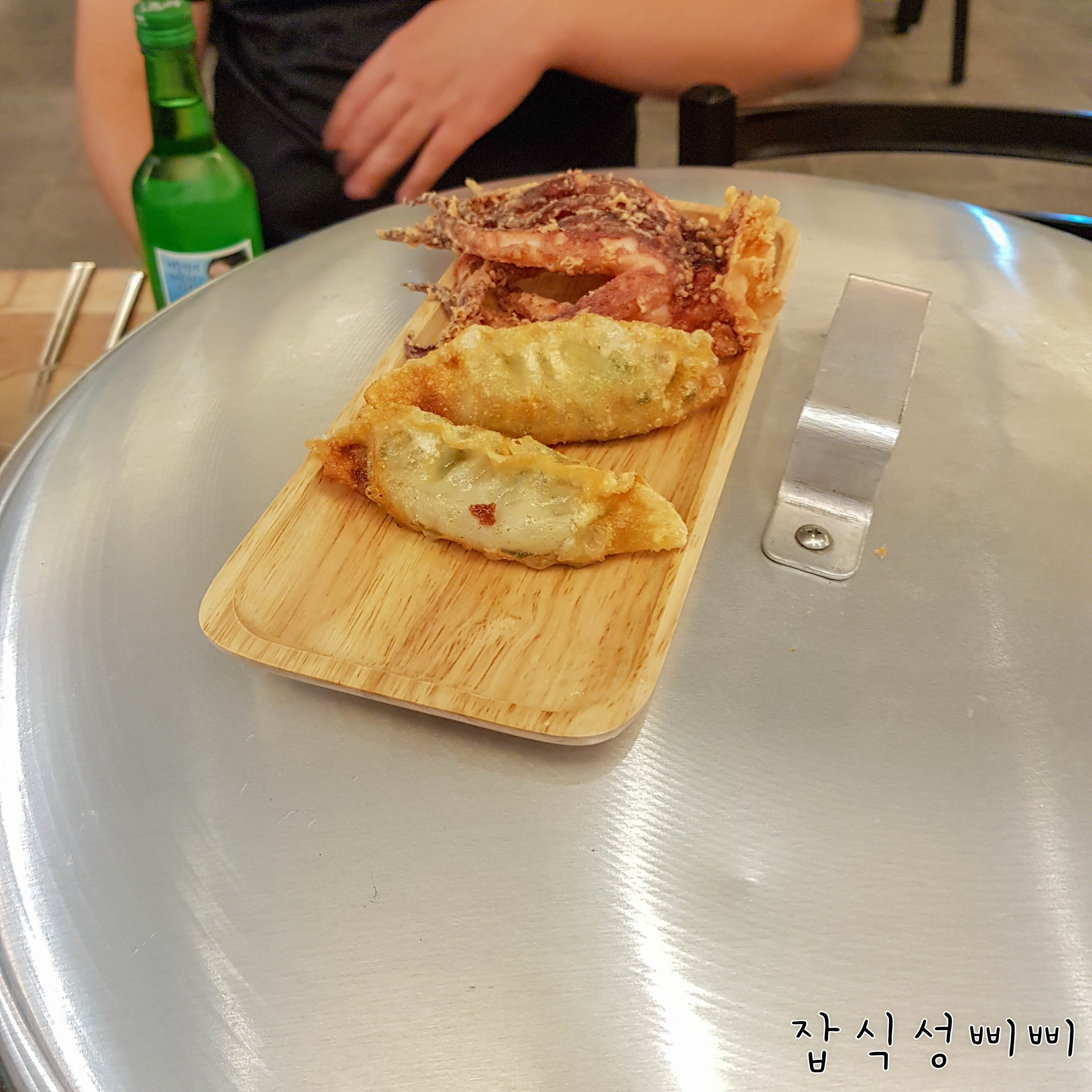 만두와 오징어 튀김이 나왔어요. 오징어 튀김은 바삭바삭하지만 촉촉해서 자꾸 손이 가던 안주에요.
