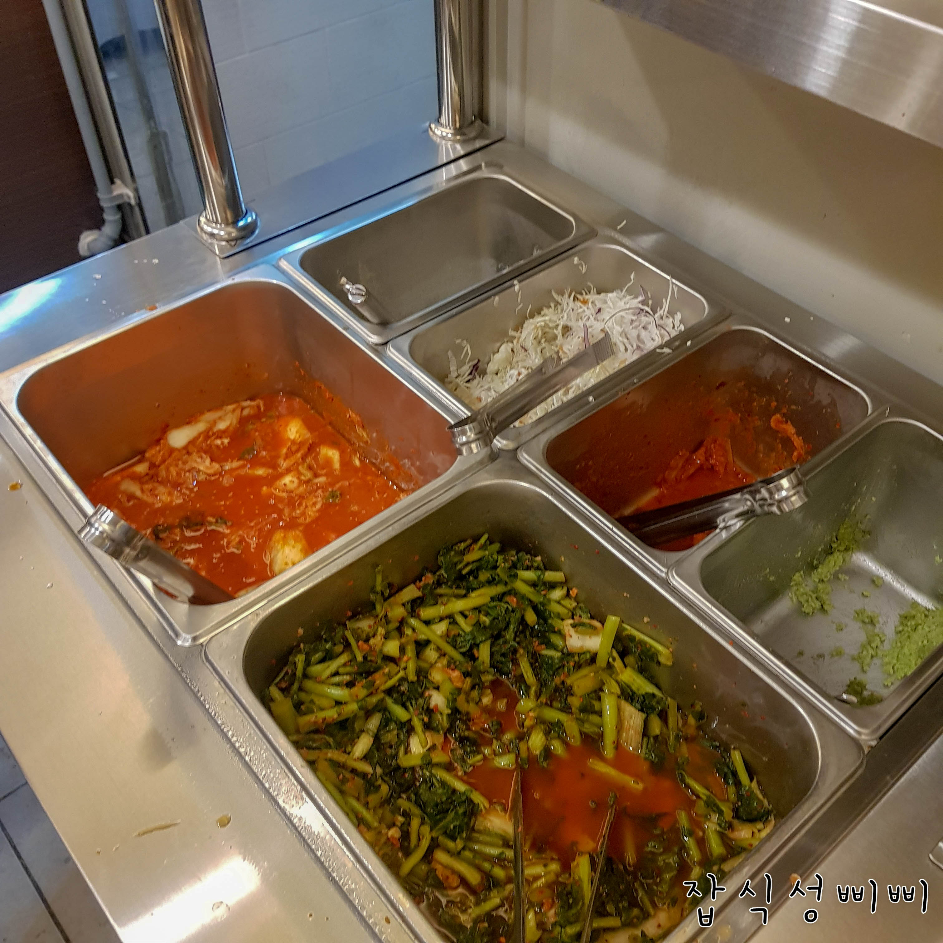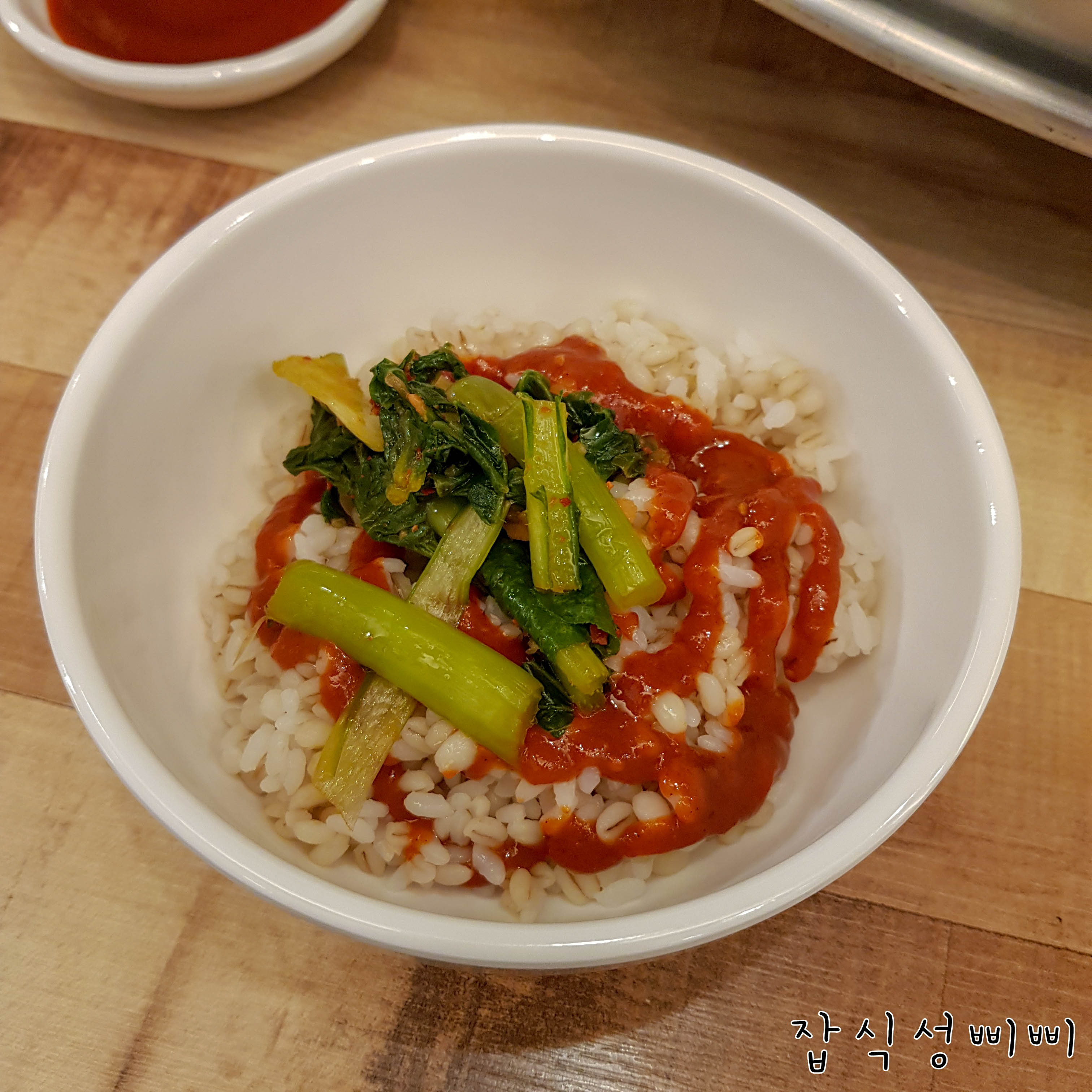 이렇게 셀프코너가 있어서 밑반찬도 리필해서 먹을 수 있구요. 보리밥도 셀프랍니다.