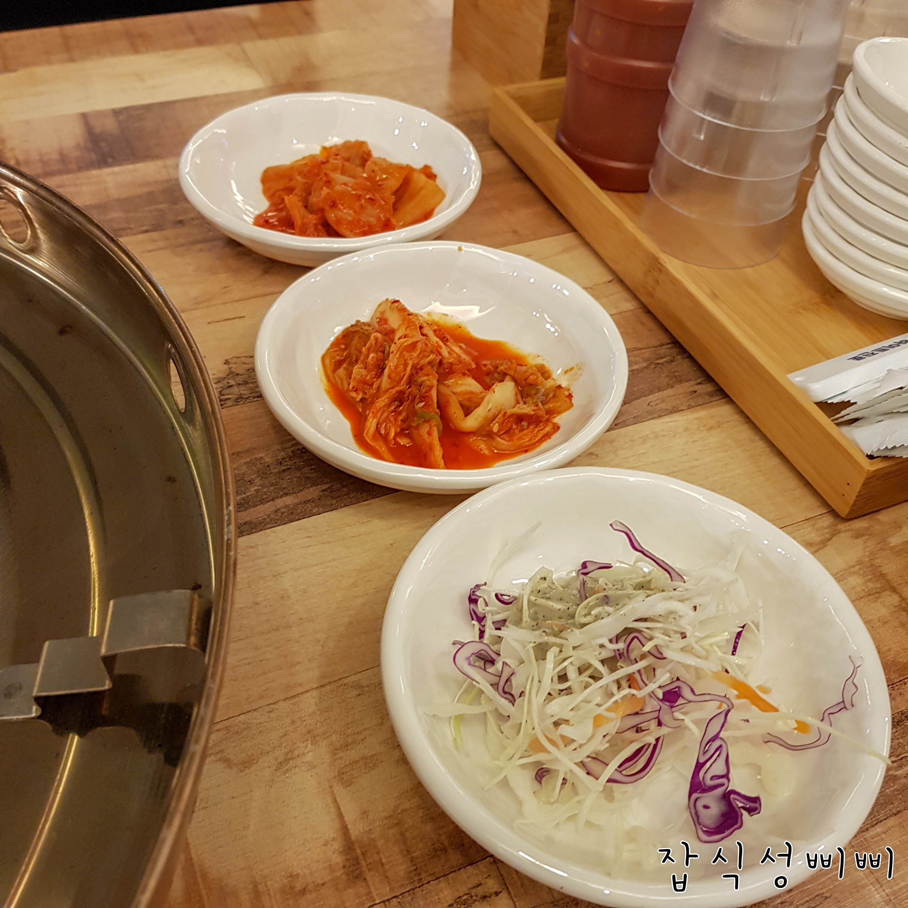 샐러드와 김치, 볶음김치 이렇게 3가지의 기본 반찬을 준비해주시네요~