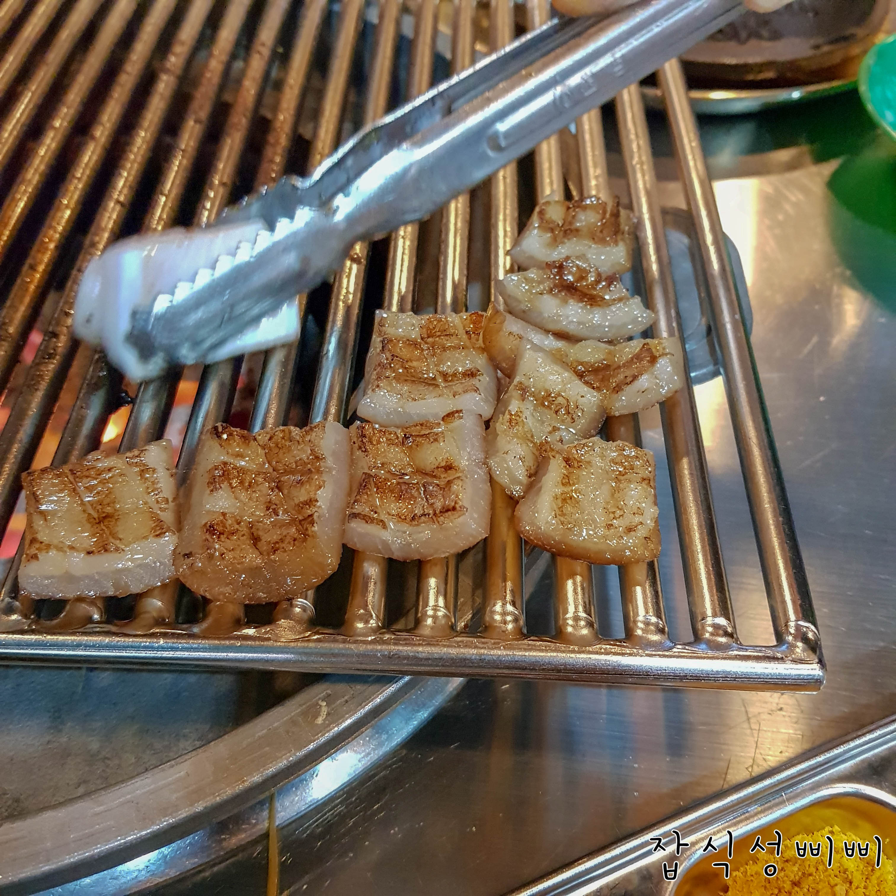 야들야들 맛있는 껍데기가 앞뒤로 맛있게 익은 모습입니다 :) 껍데기가 두툼해서 씹는 식감이 쫄깃쫄깃하더라구요.