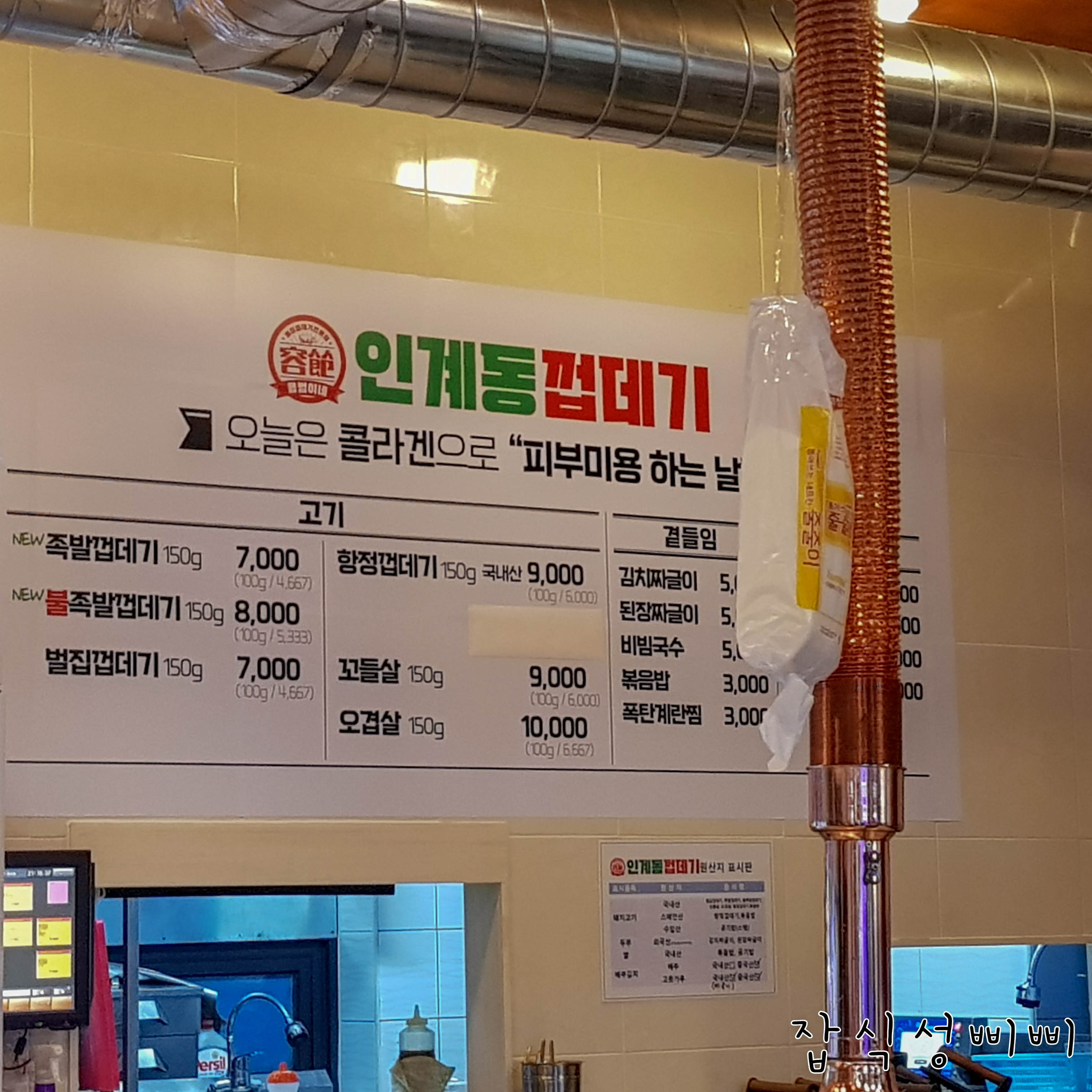 인계동껍데기는 현대모닝사이드 쪽 보라동입구 상권에 위치해있습니다. 이쪽에선 술 잘 안마셔서 주차는 잘 모르겠네요.