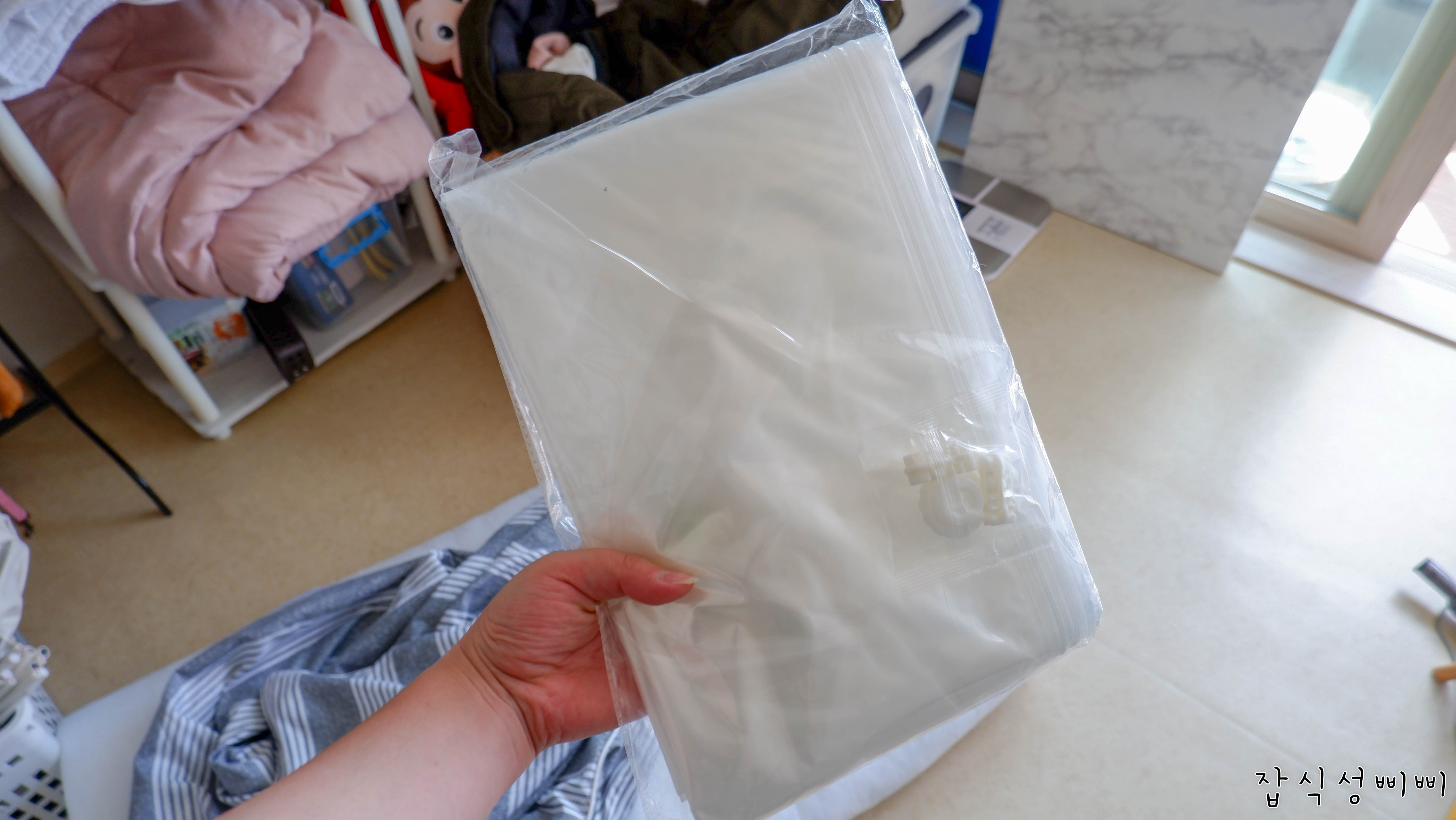 삐삐는 압축팩에 넣기 전에는 세탁할 때 섬유유연제를 거의 쓰지 않아요. 압축한 이후 냄새가 좀 독해지더라구요.
