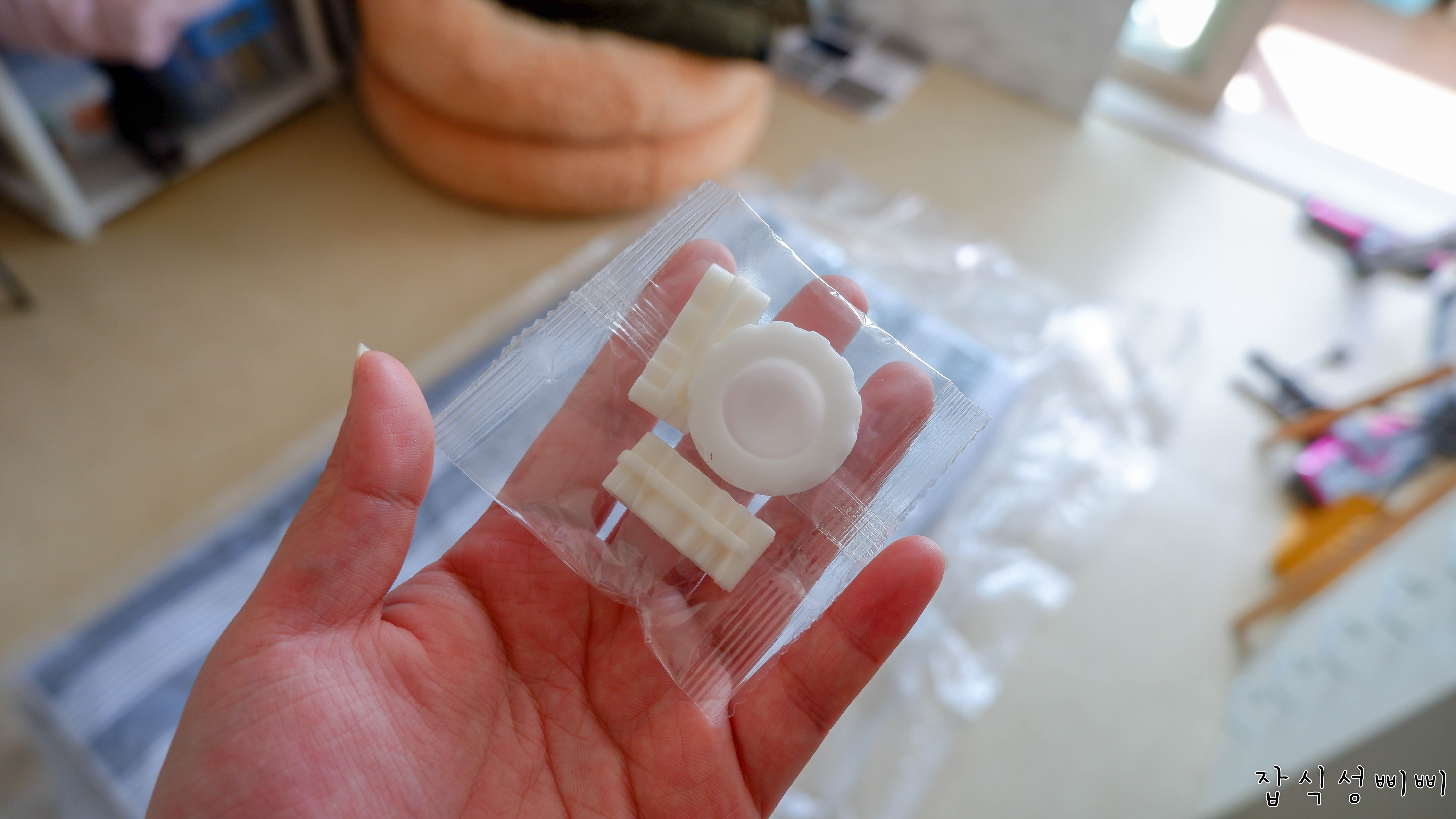 압축팩 하나, 클립 두 개, 그리고 밸브 뚜껑 하나 이렇게 들어있답니다.