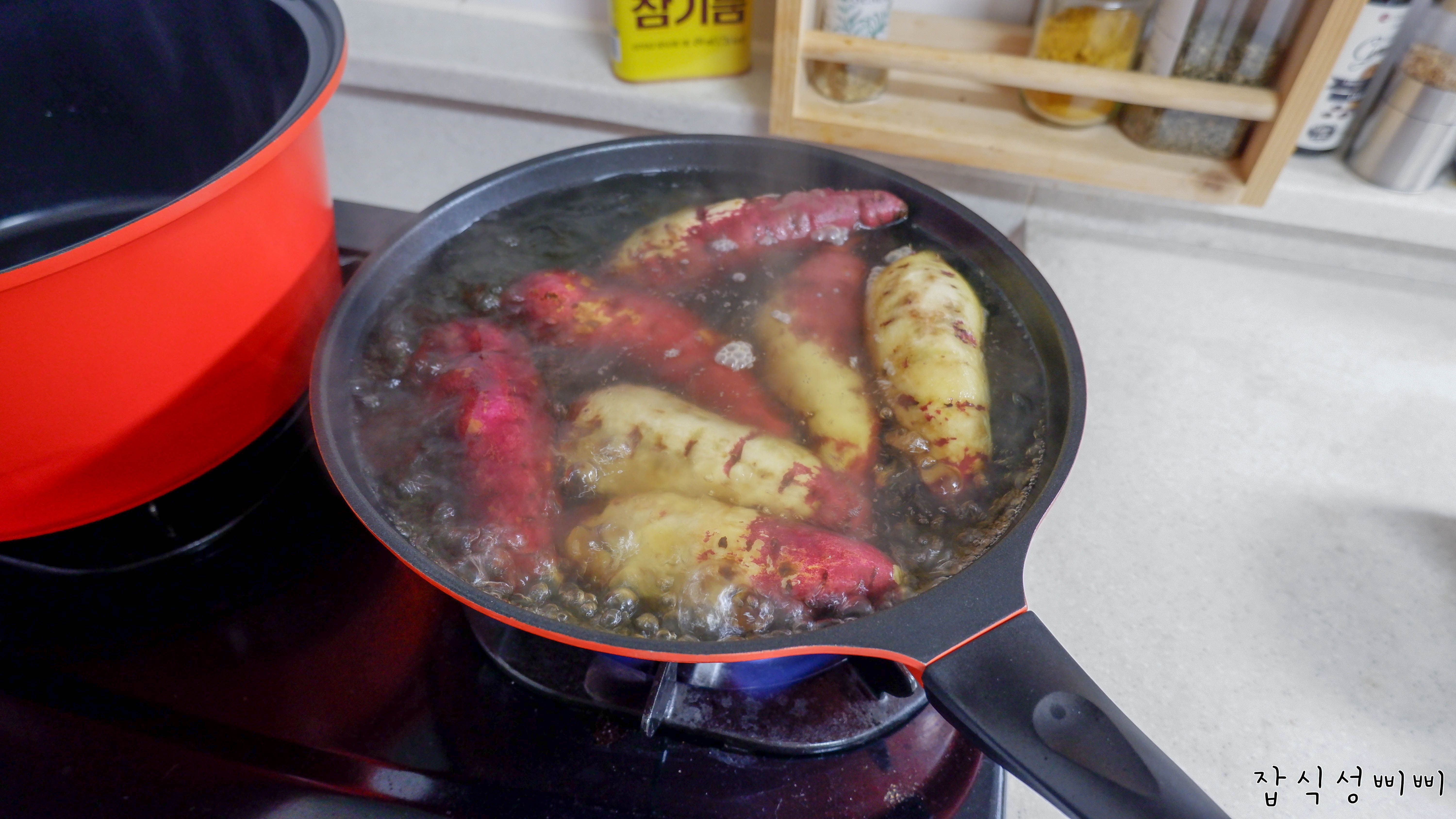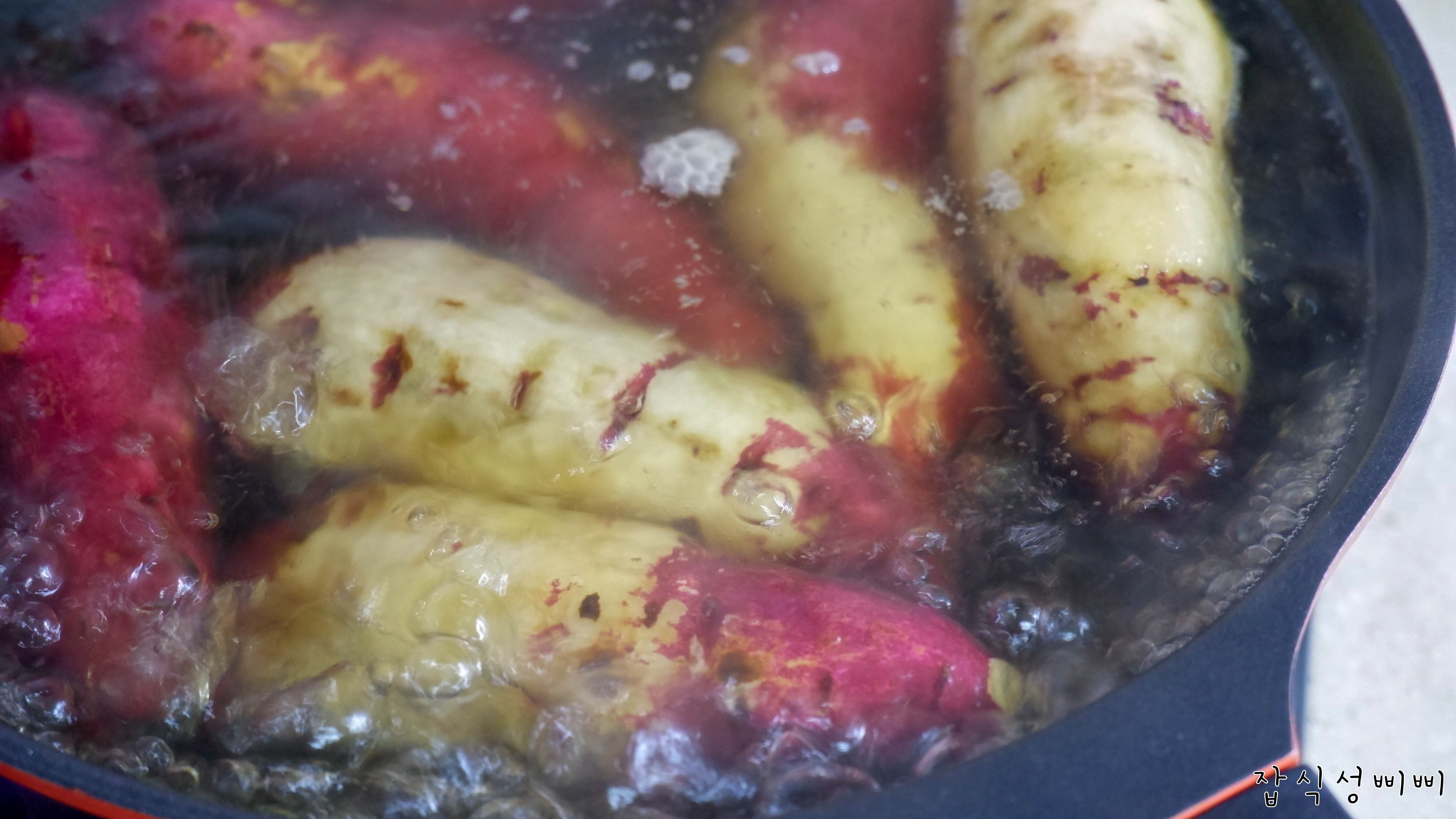 어느새 고구마가 다 익었네요~ 젓가락으로 찔러서 익었는지 확인하는 건 다들 아시죠? ㅎㅎ