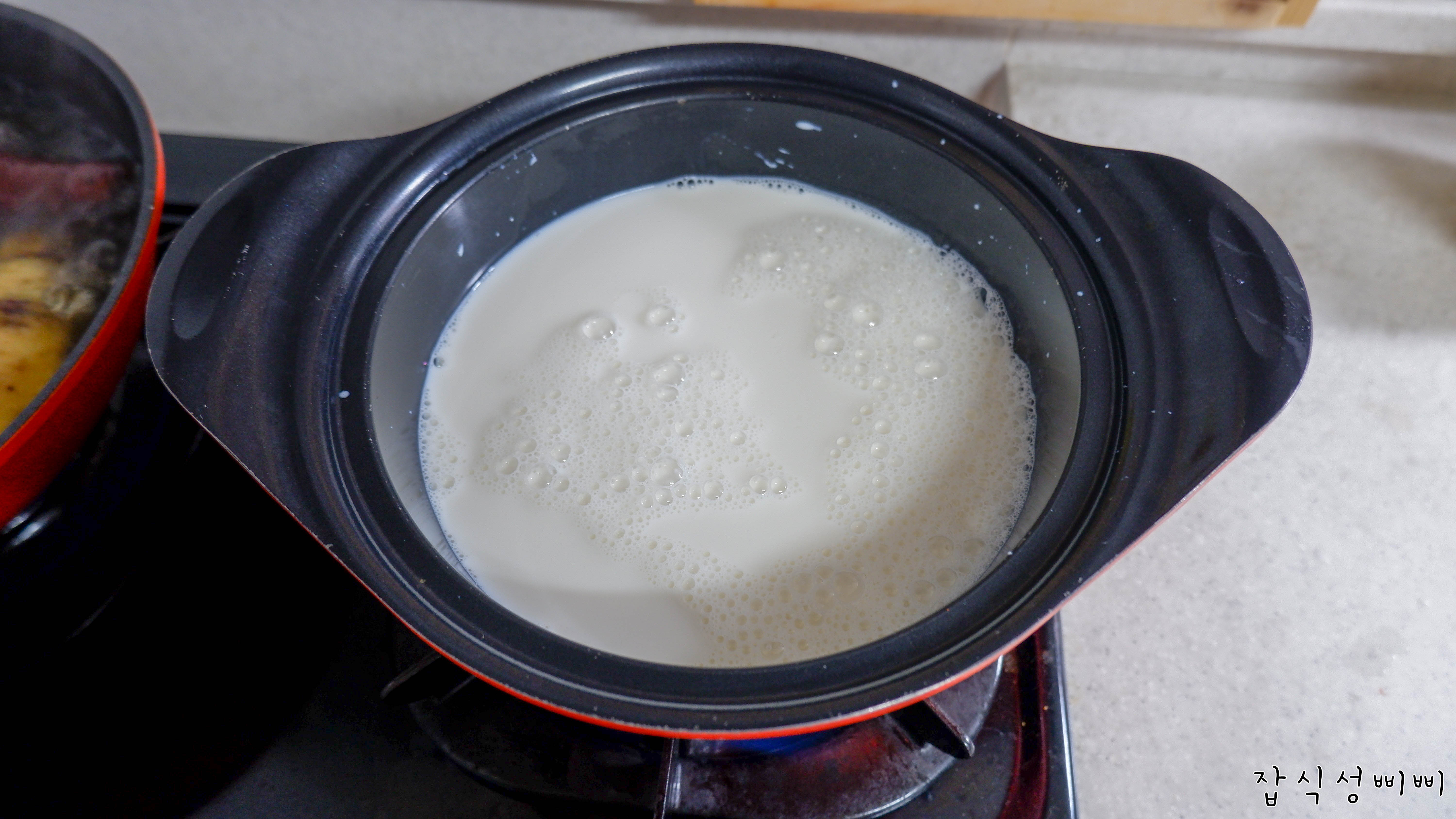 우유가 넘치지 않도록 잘 저어주면서 끓여주세요~ 항상 넘쳐버리는 삐삐의 우유..^^ㅋㅋㅋ