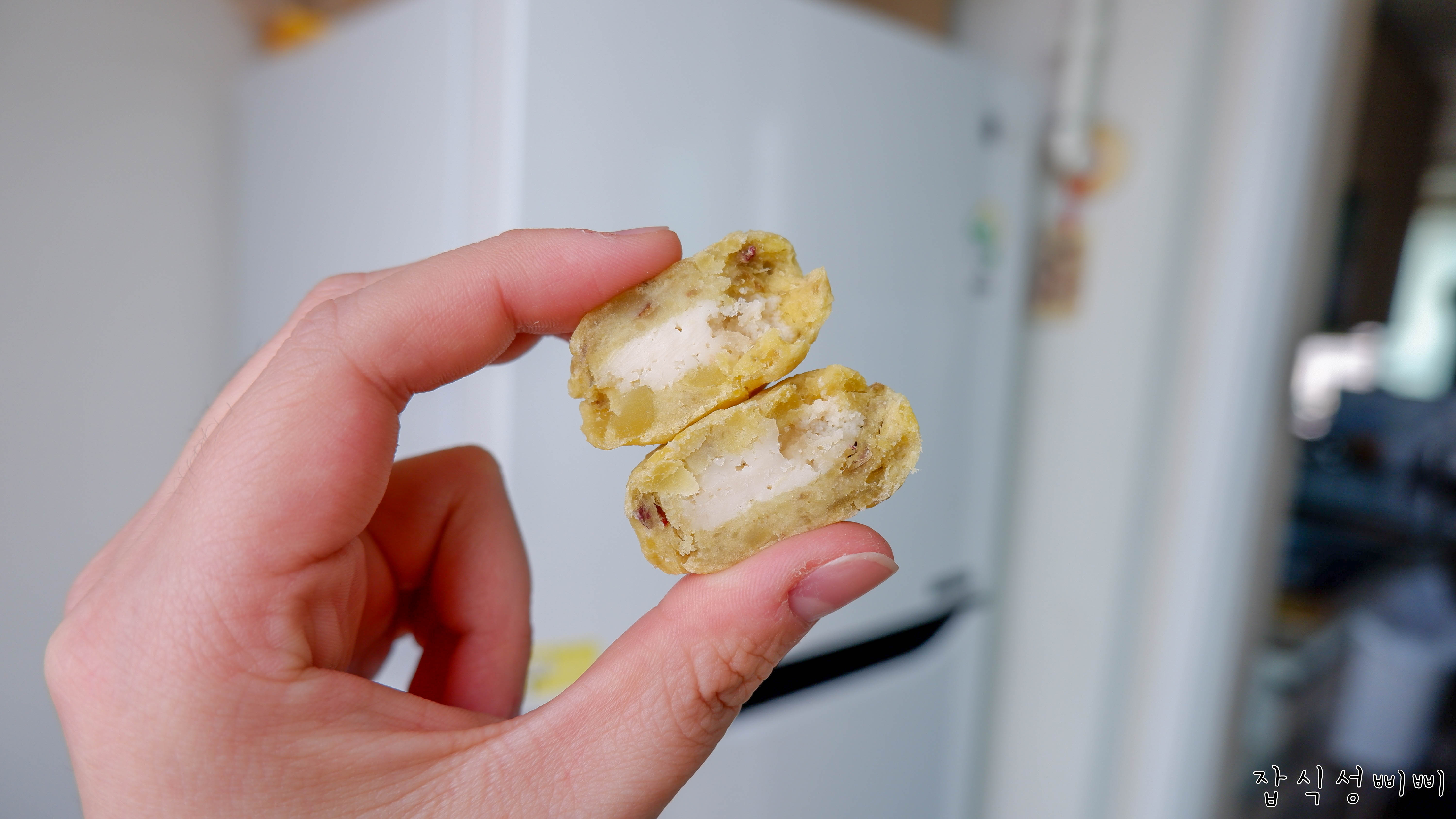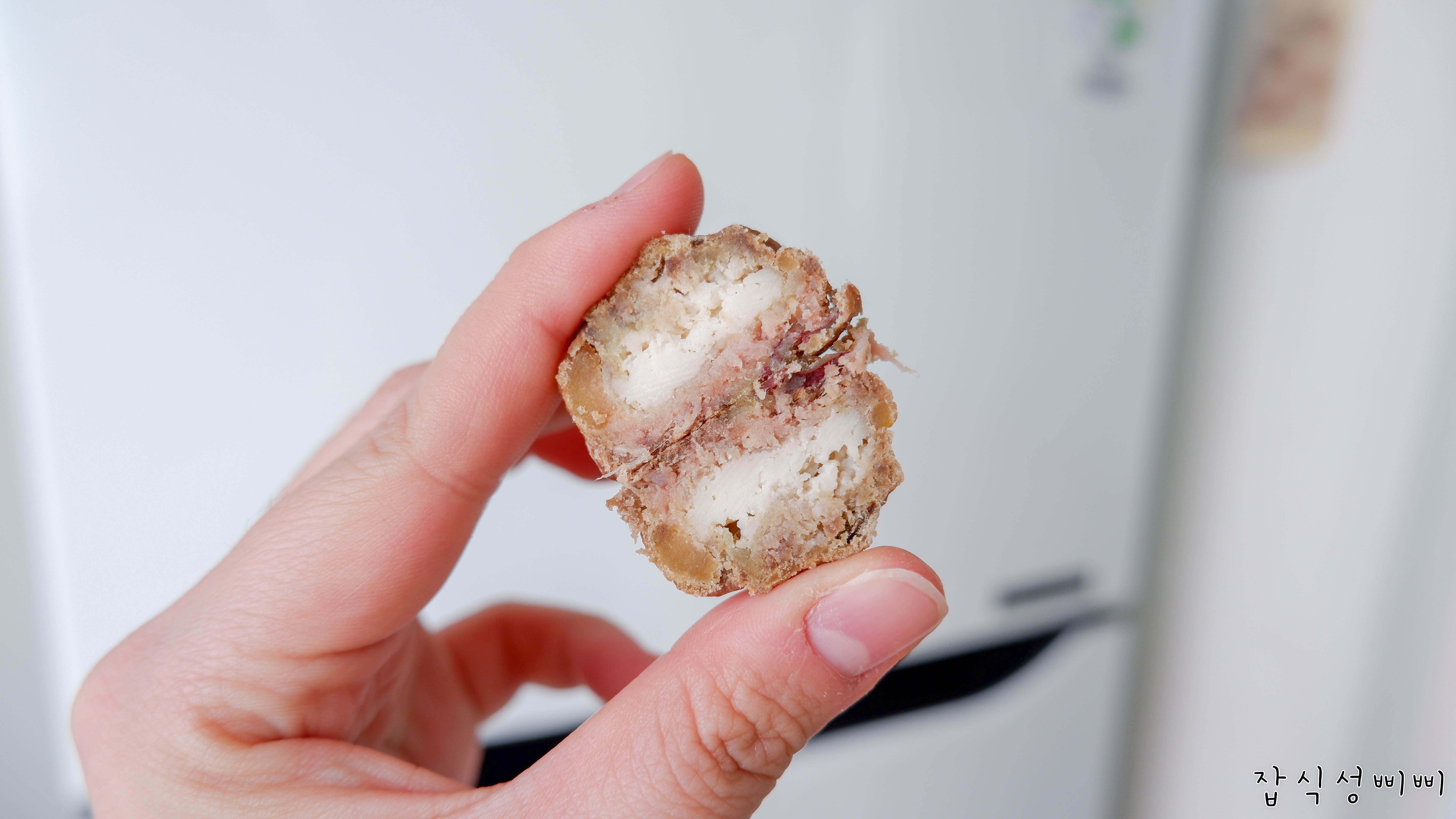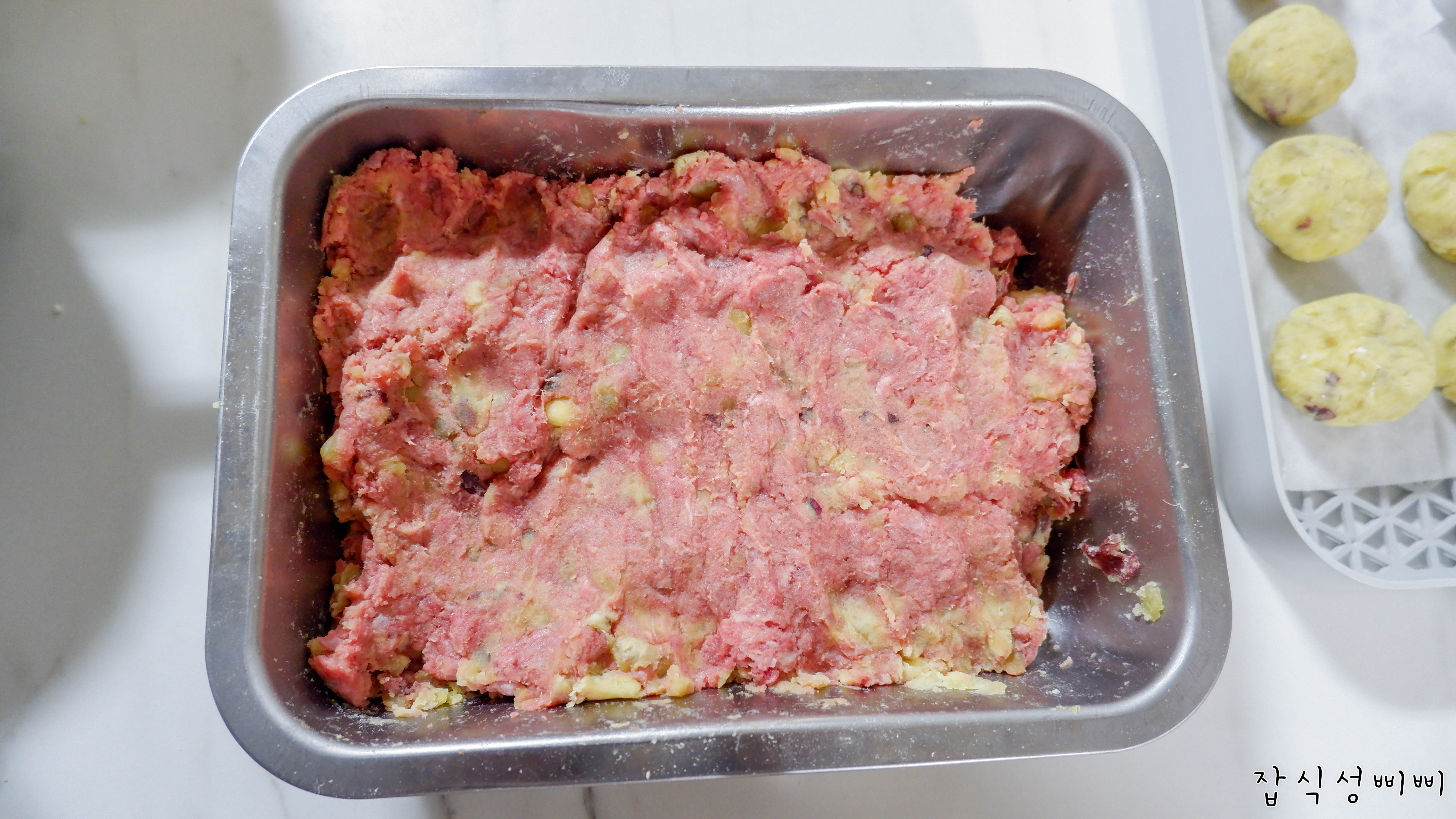 고기 반죽 속 치즈 가득 완자에요. 개인적으로 고구마보다 고기 반죽 속에 치즈를 쏙 넣은게 더 맛있어보여요^^
