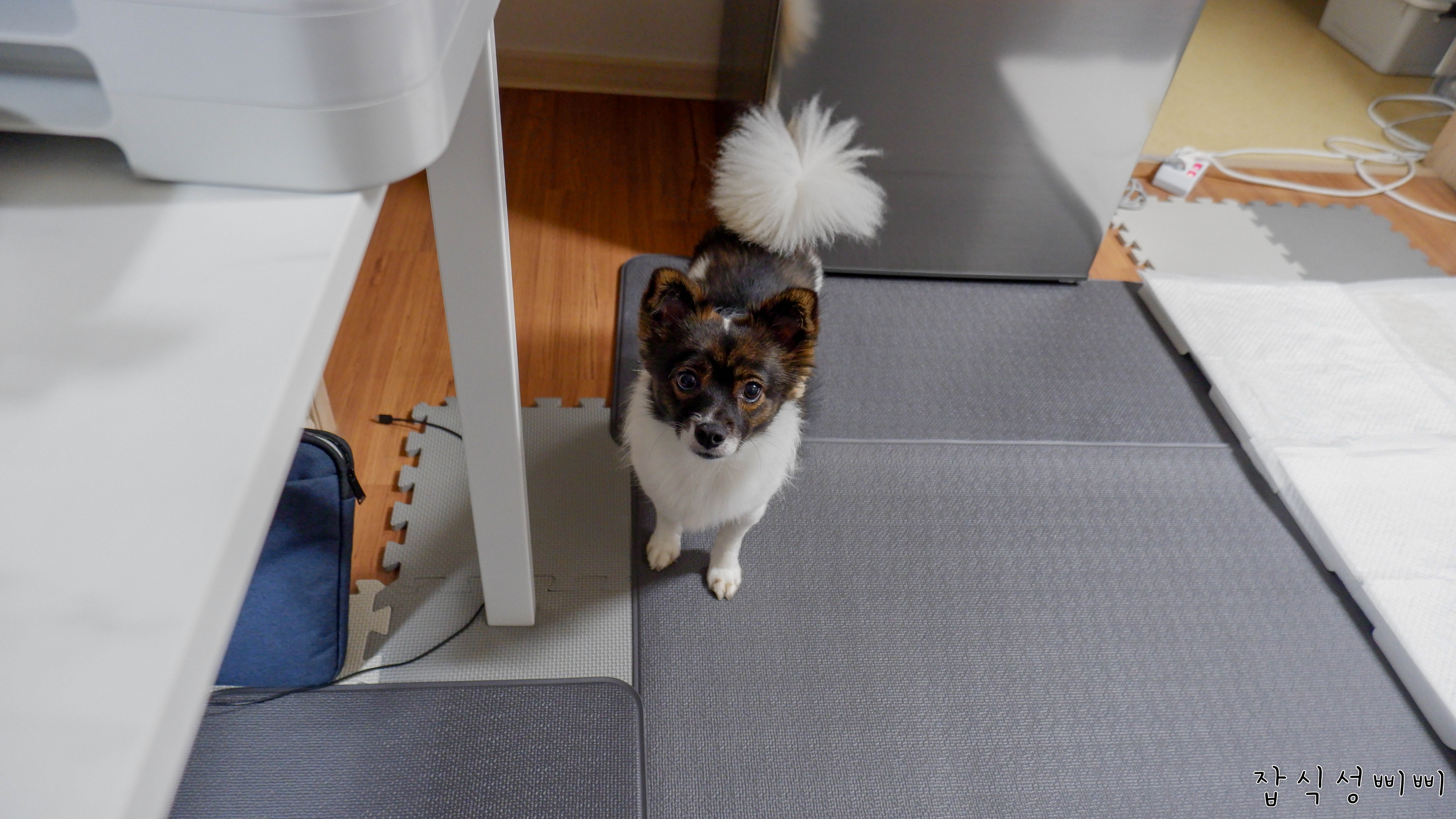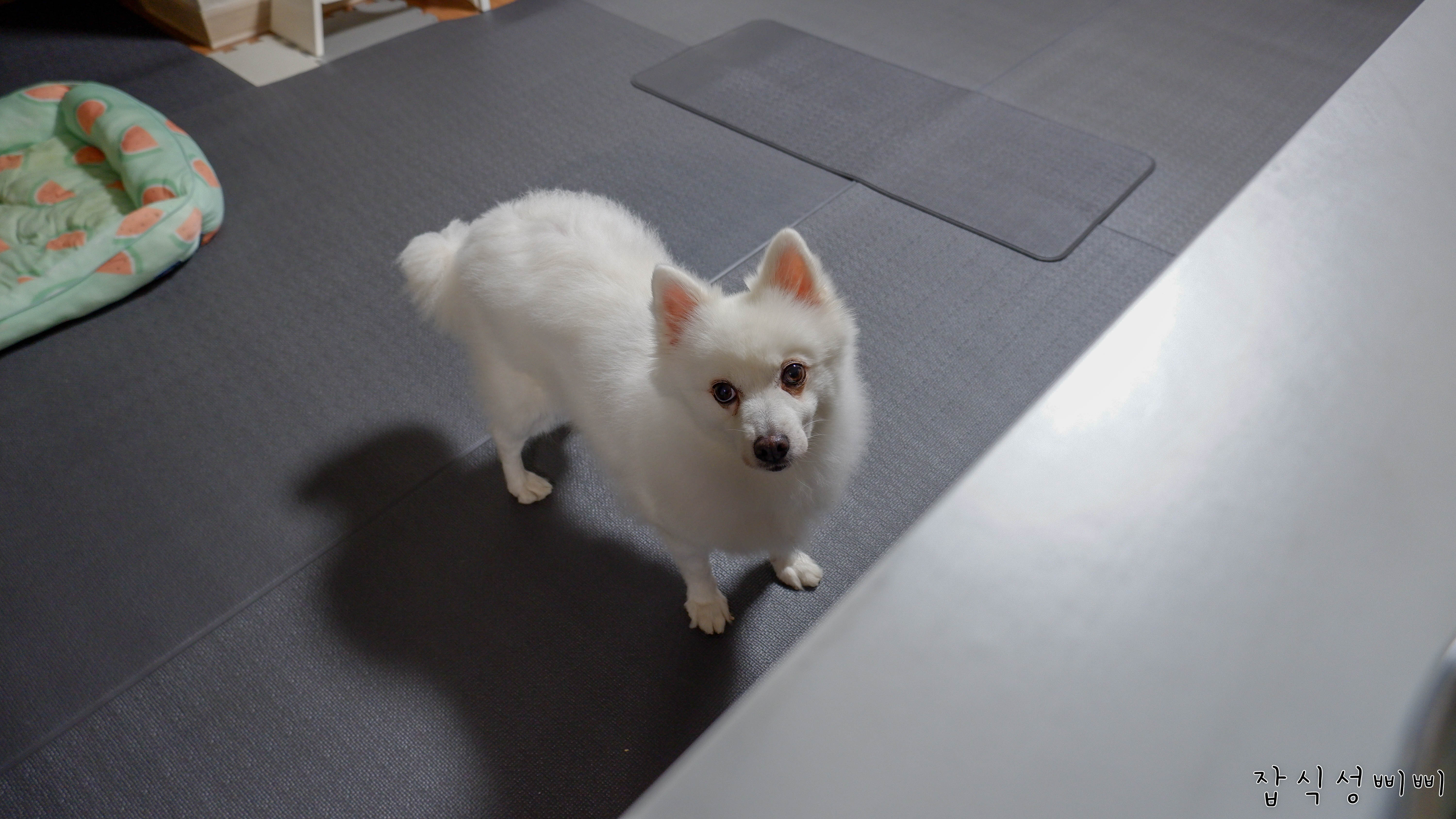 엄마가 또 부엌에서 뭔갈 사부작사부작 만들고 있으니 궁금해서 후다닥 쫓아오는 강아지들이네요.