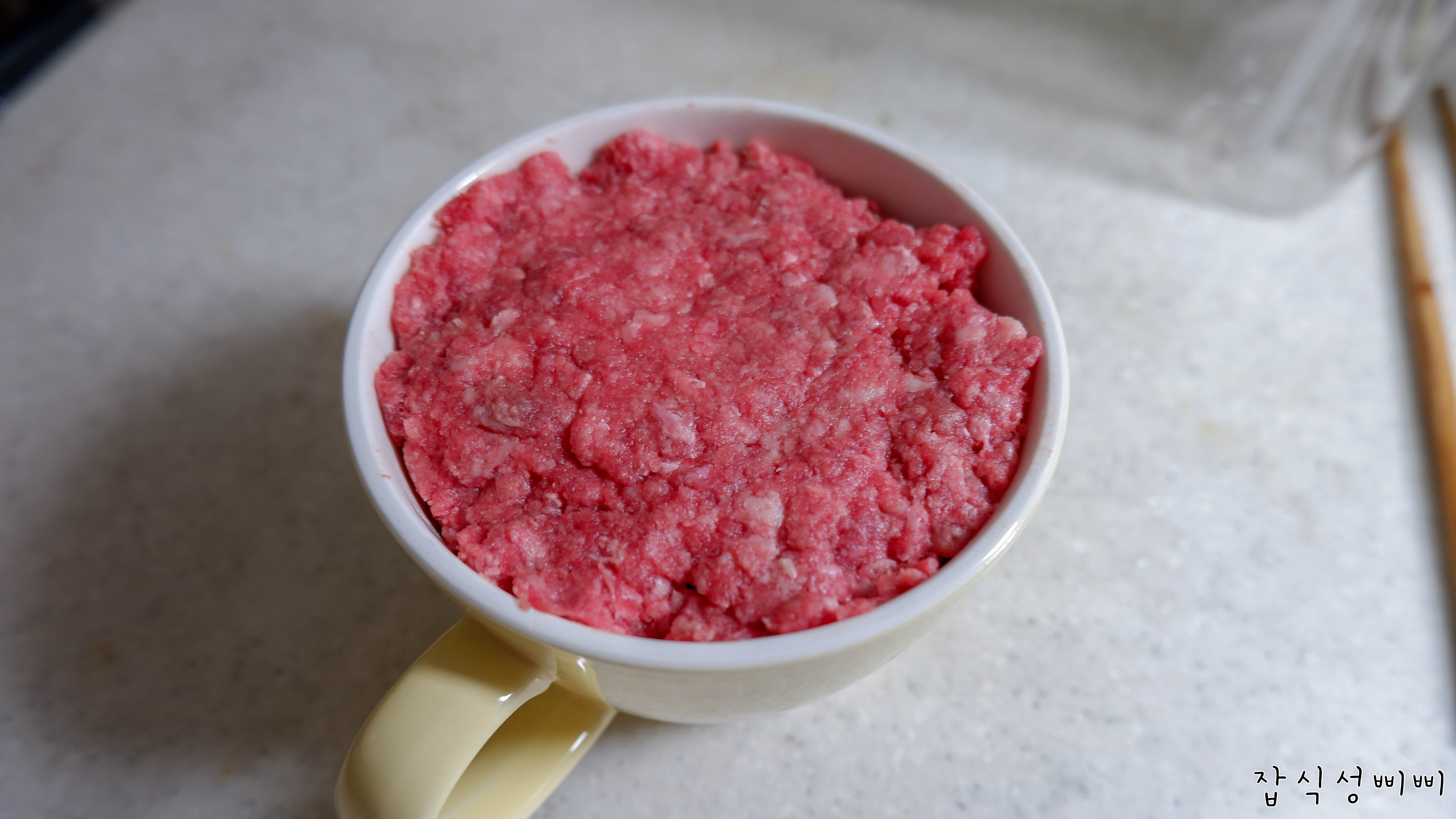 삐삐가 구입한 분쇄육은 80% 살코기와 20%의 지방으로 섞여 있는 고기에요. ㅎㅎ 해동해서 사용했어요.
