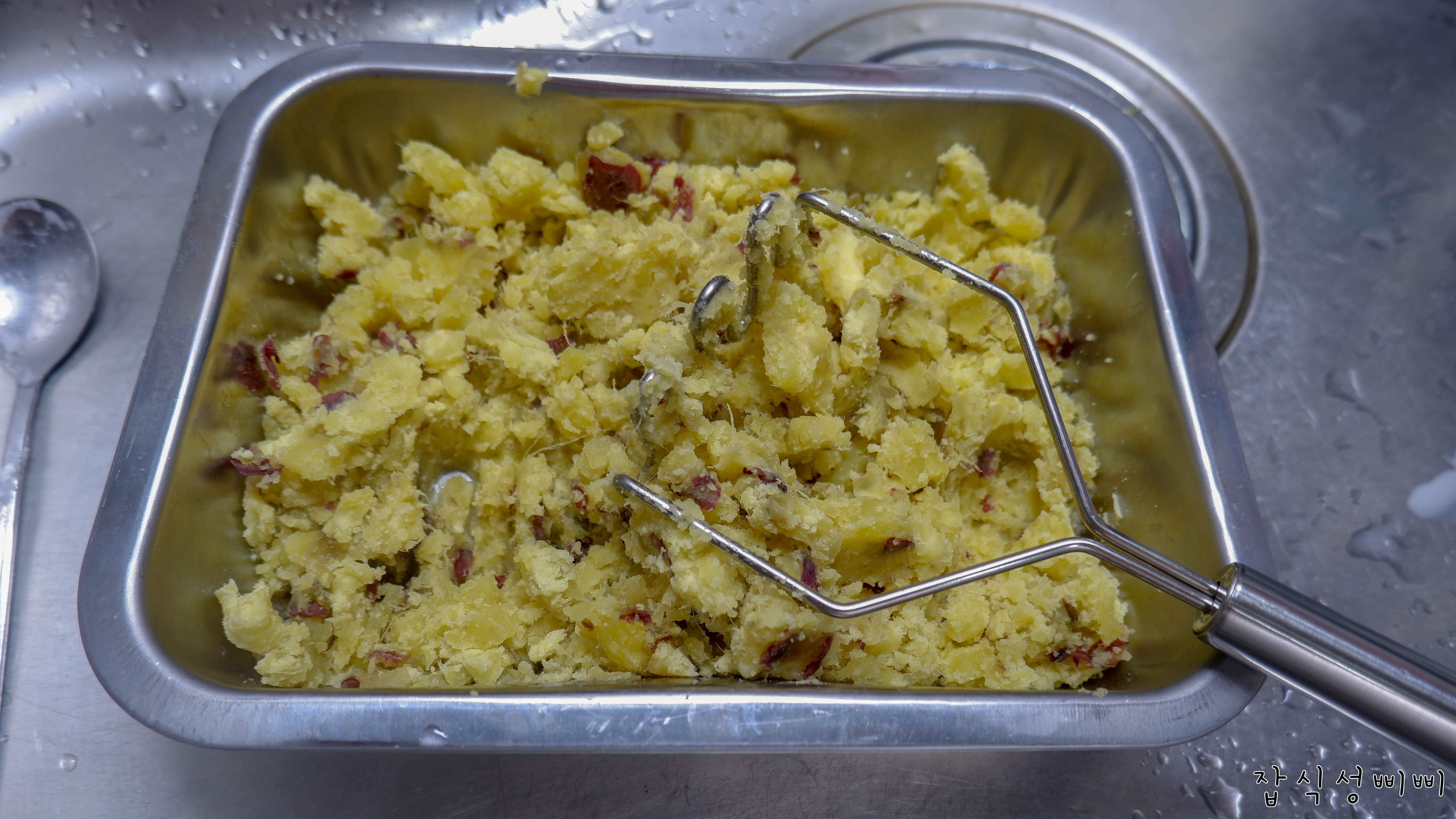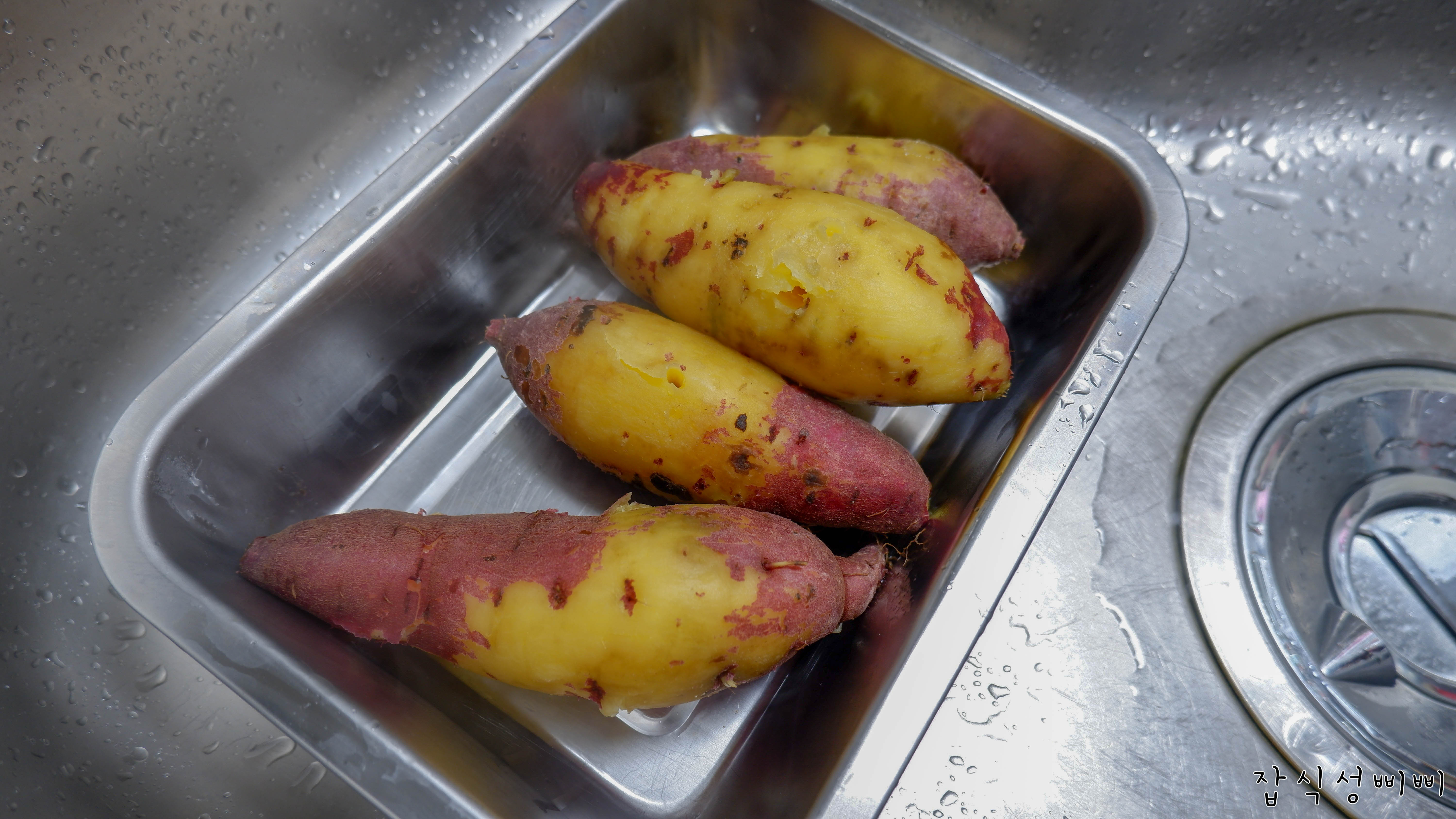 고구마 껍질을 벗겨서 사용하려고 했는데.. 생각보다 너무 귀찮고 피곤한 탓에 그냥 사용했어요.