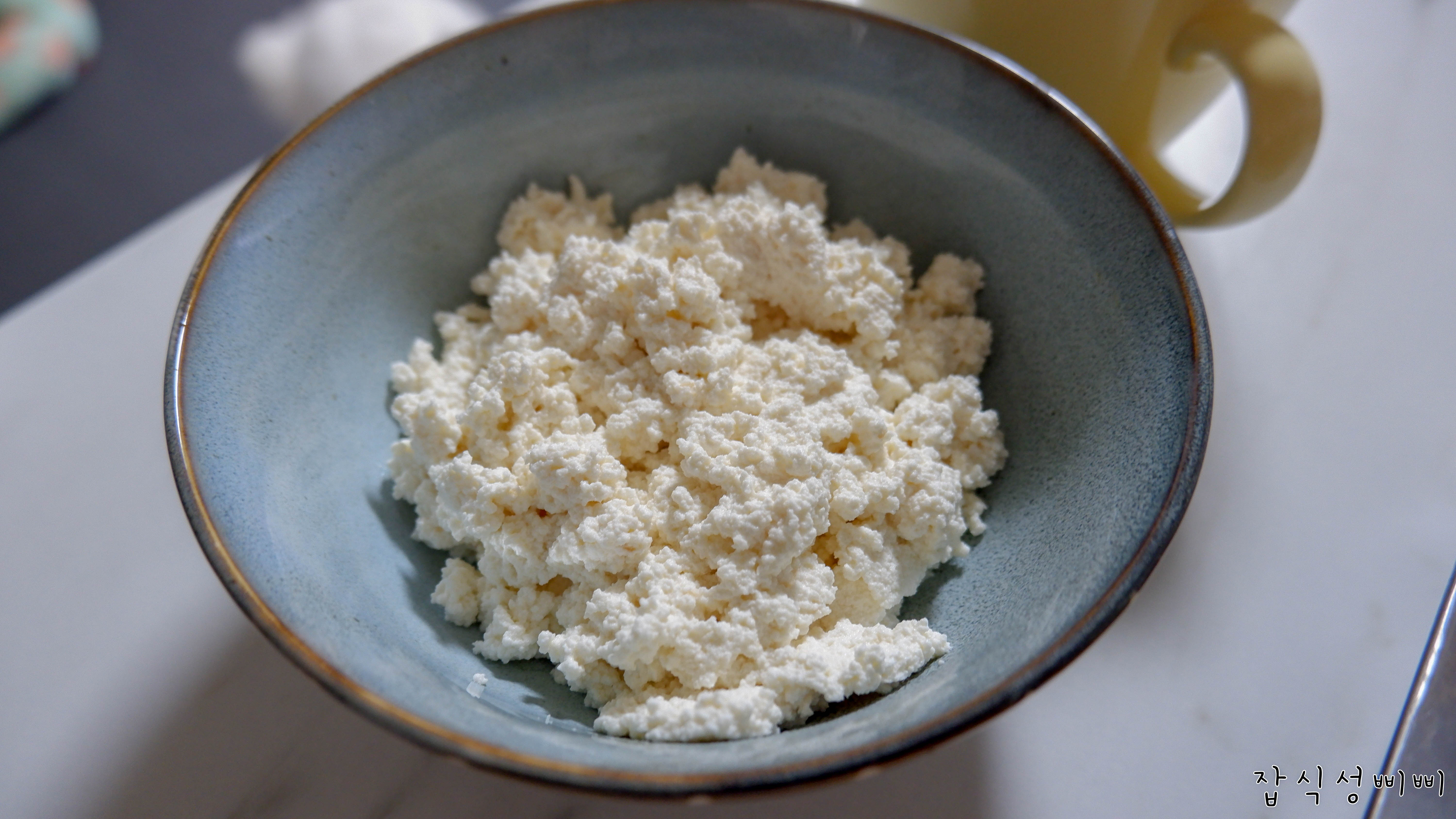 우유 190ml 팩 6개 정도 사용해서 한 냄비를 끓여도 치즈는 한 그릇 밖에 안나와요 ㅠ_ㅠ