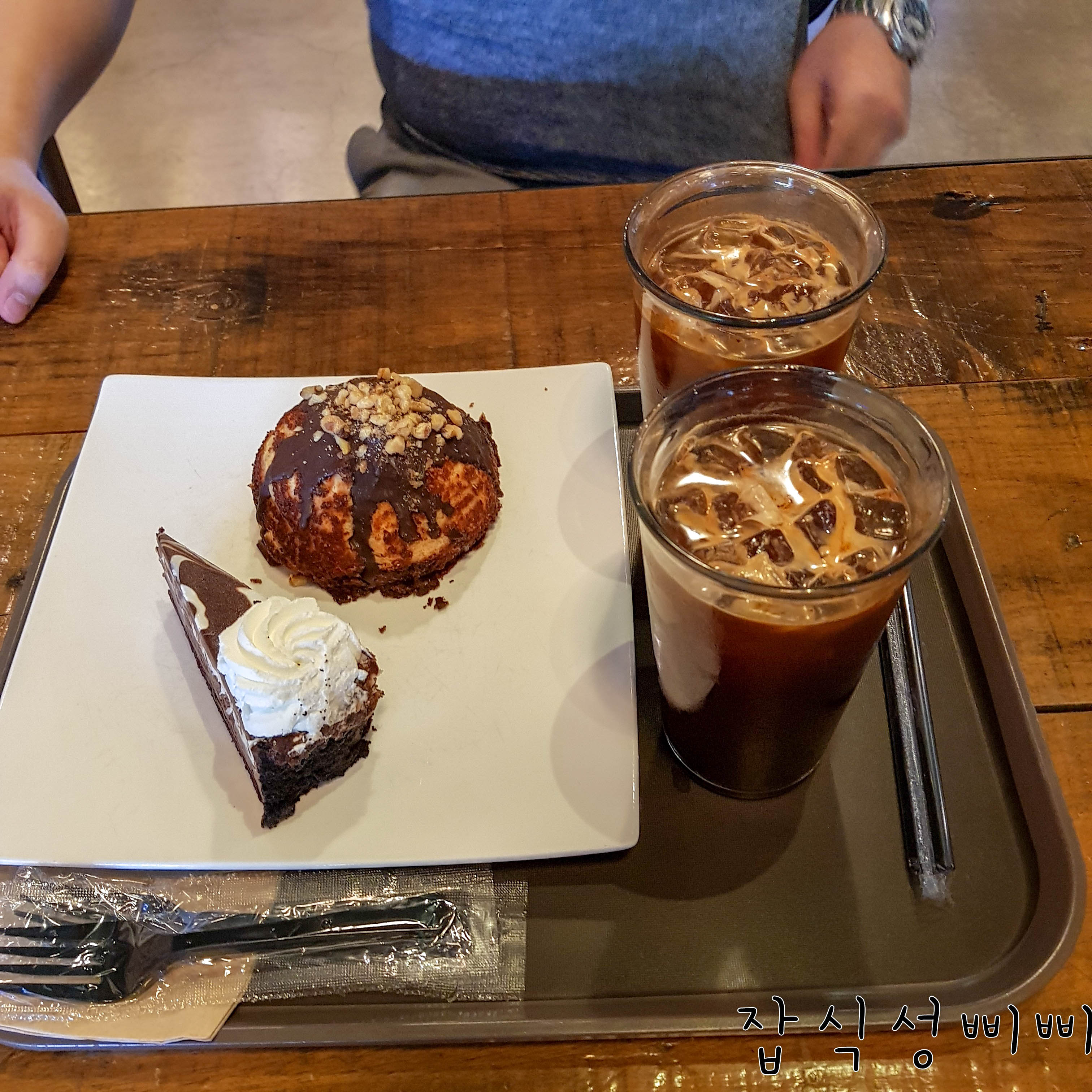 아메리카노 두 잔과 케이크 두 개 주문했어요~