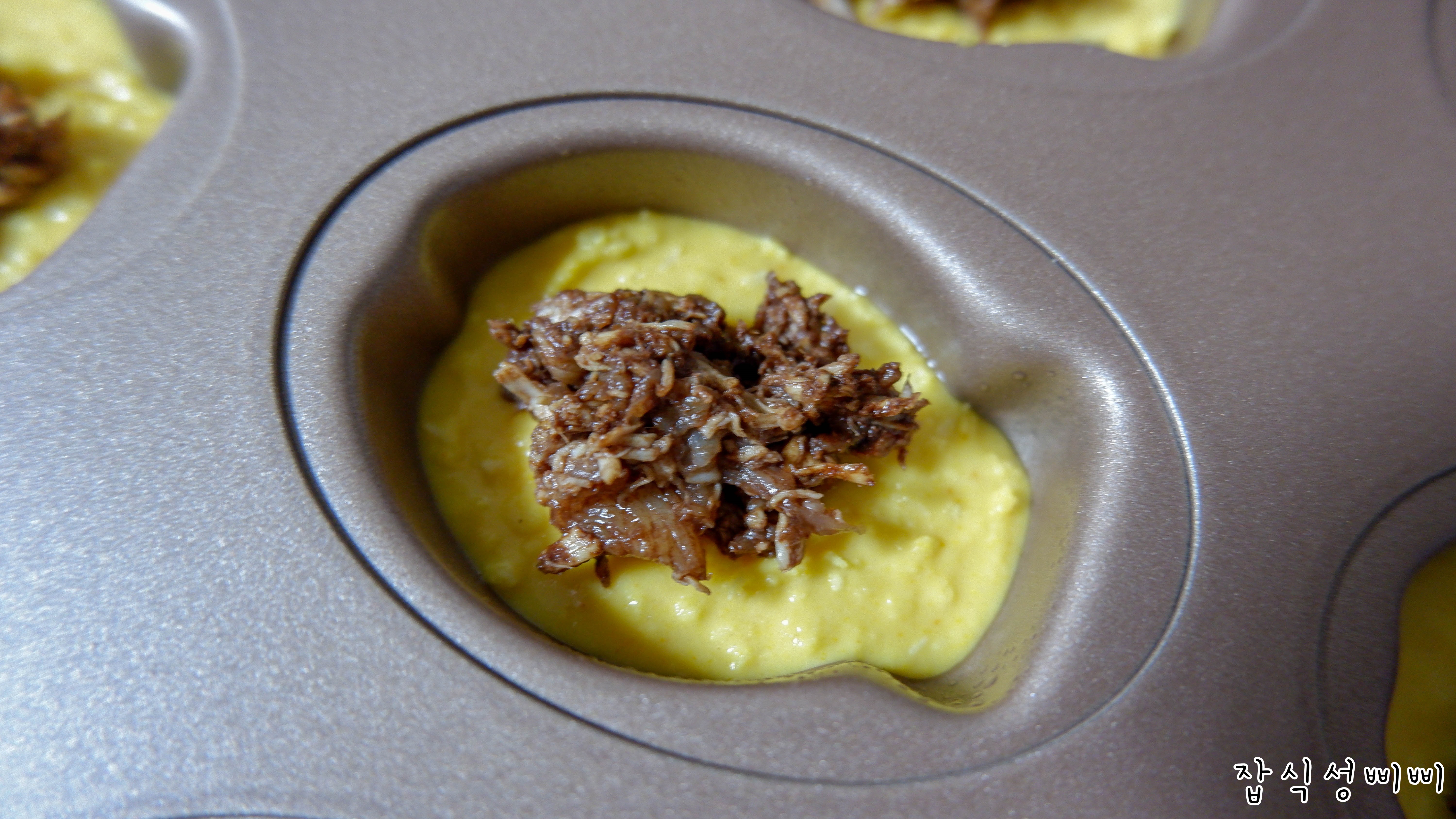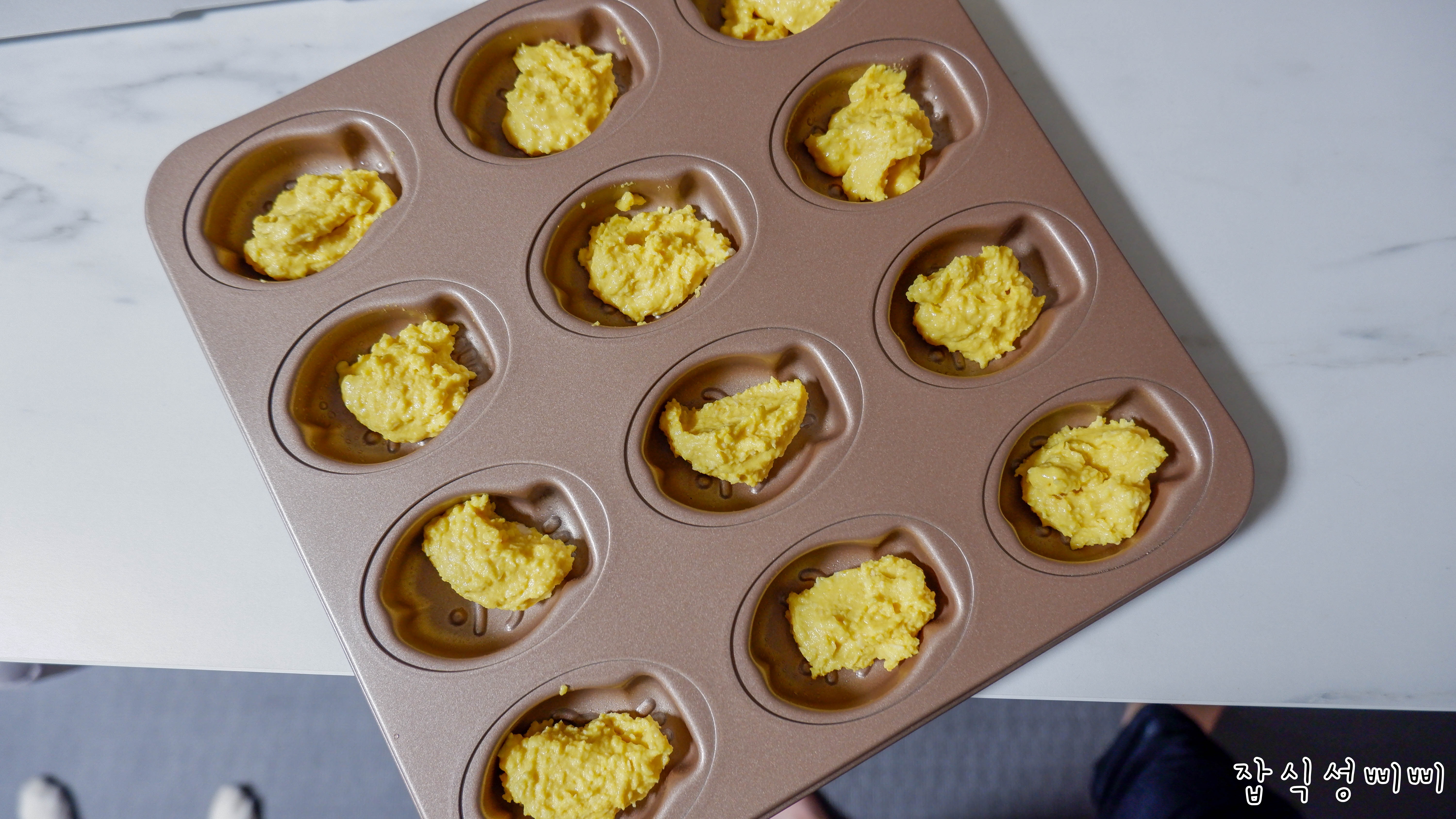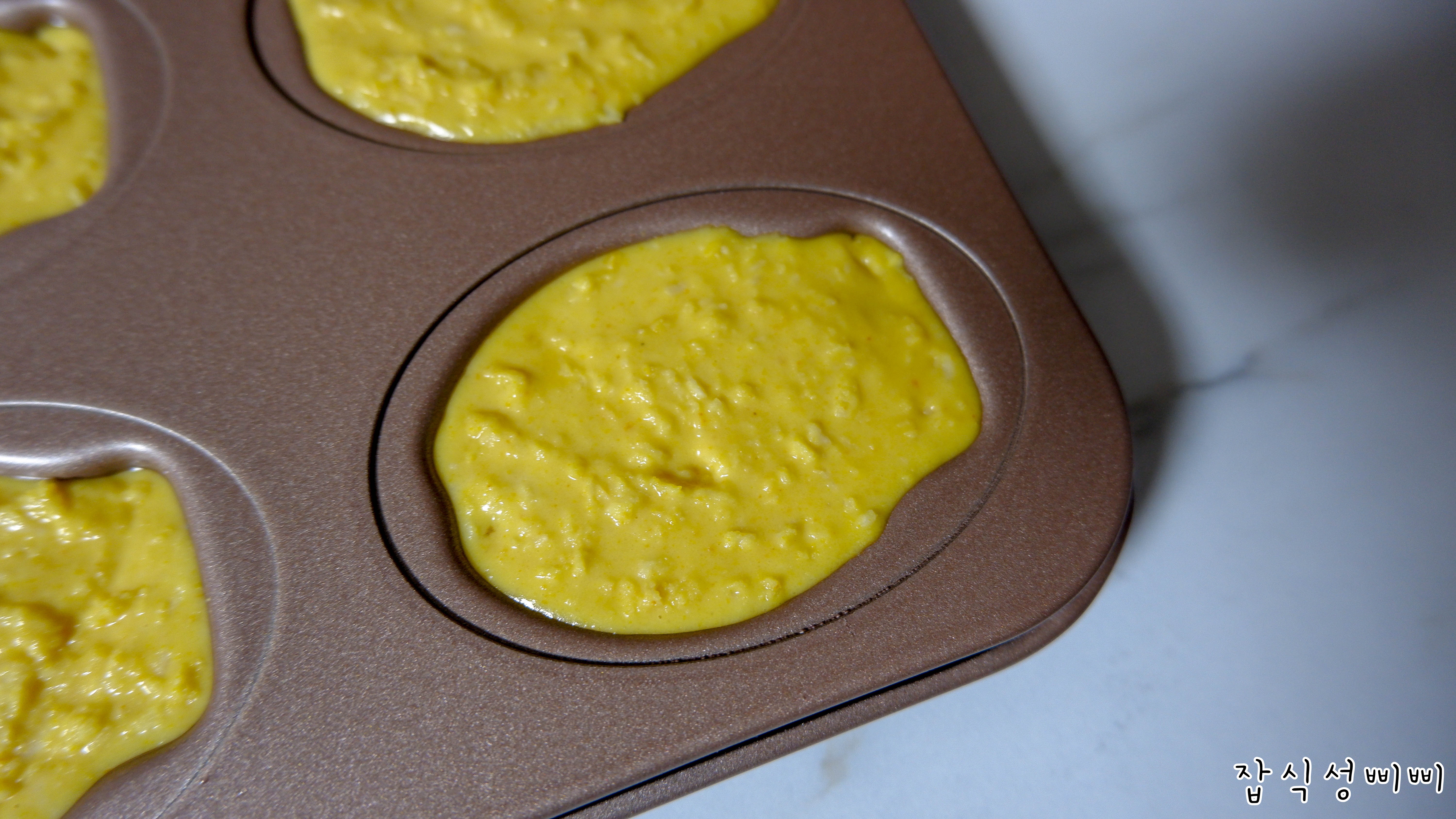 이렇게 되면 완성! 오븐에서 구워지면 살짝 올라오기 때문에 8~90%만 채운다는 생각으로 해주심 좋아요.