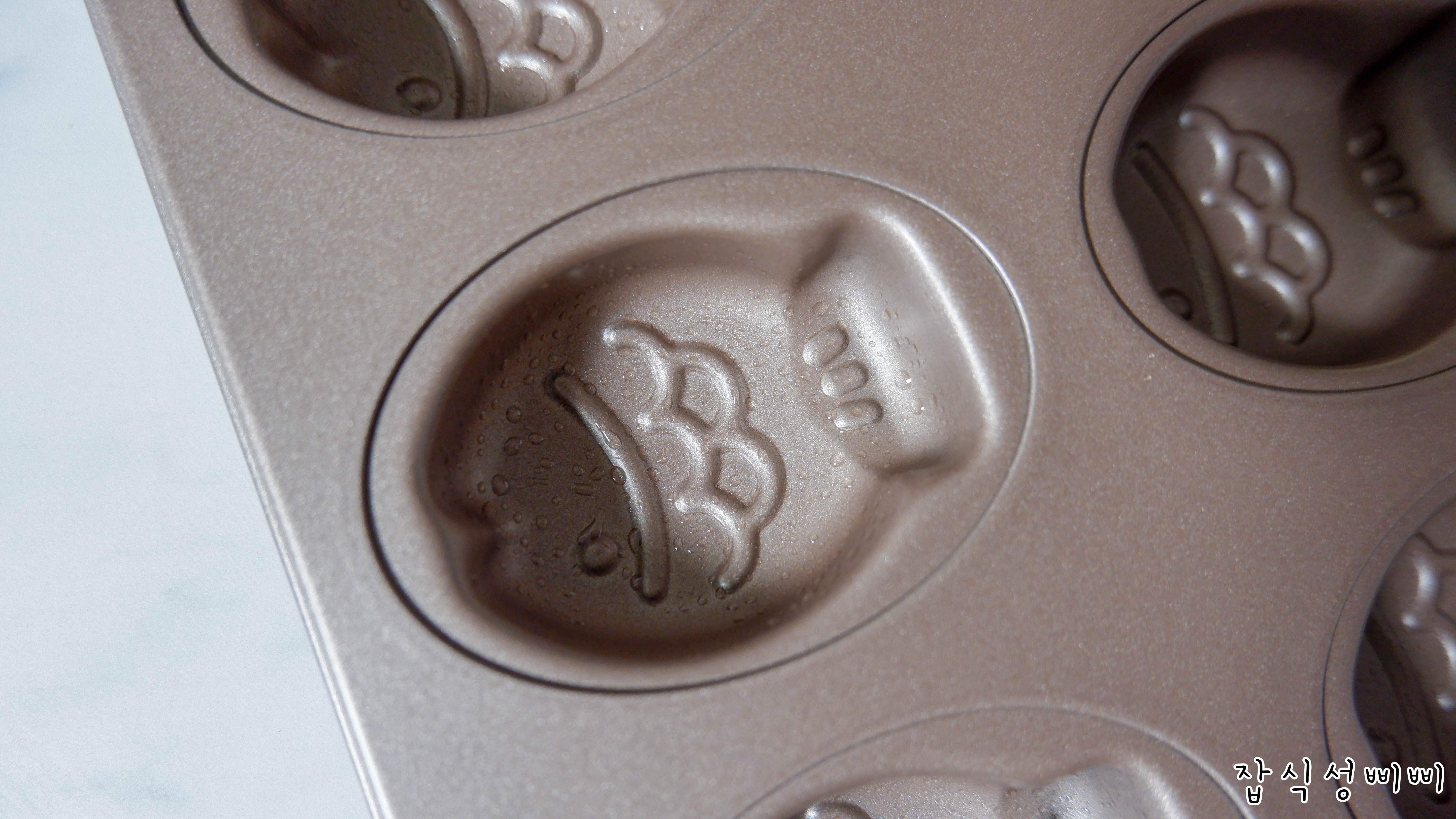 처음부터 많은 양의 반죽을 넣으면 몰드를 채우기 힘들어져요. 저는 반정도 넣고 모자라다싶으면 또 넣었어요.
