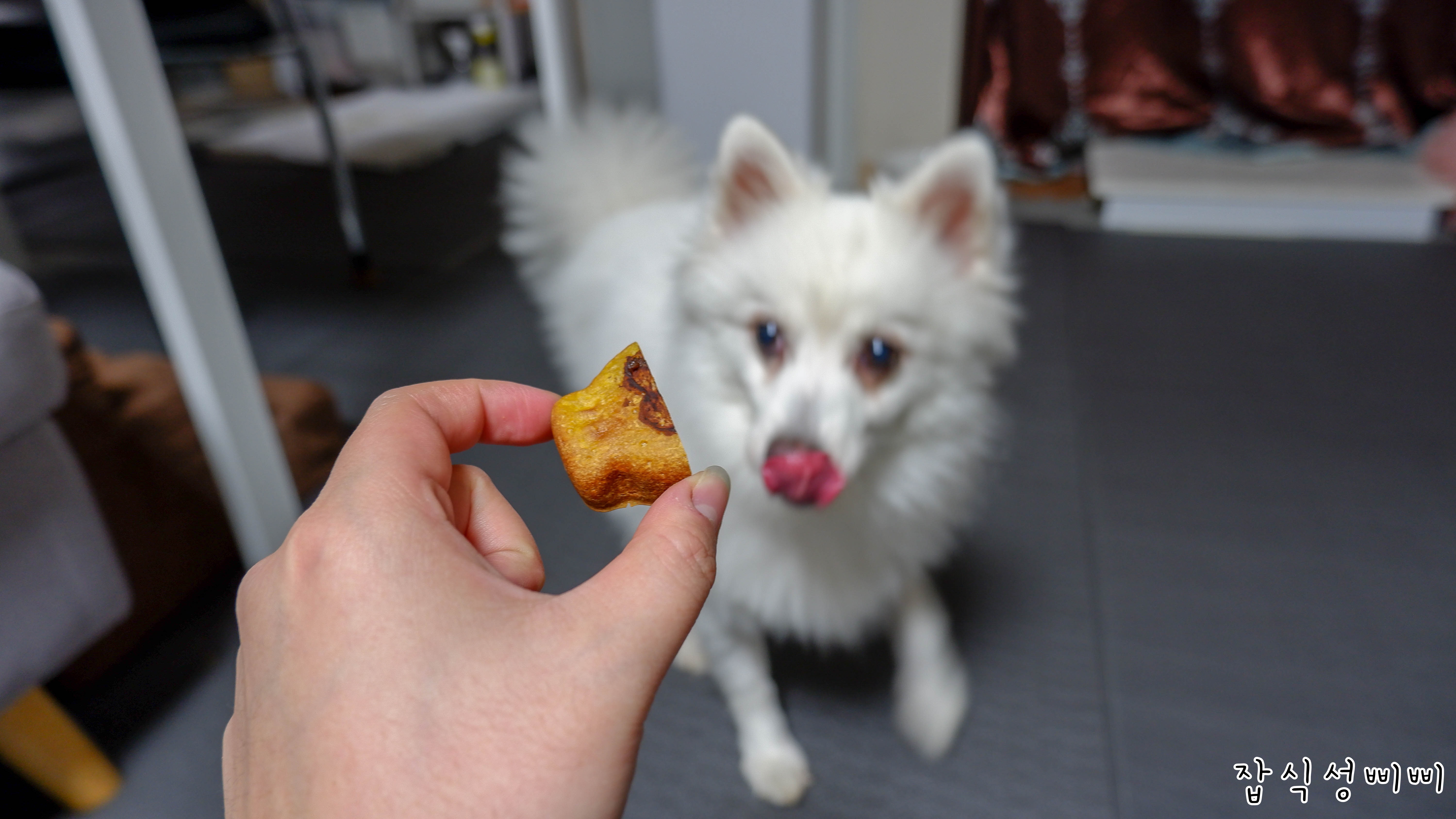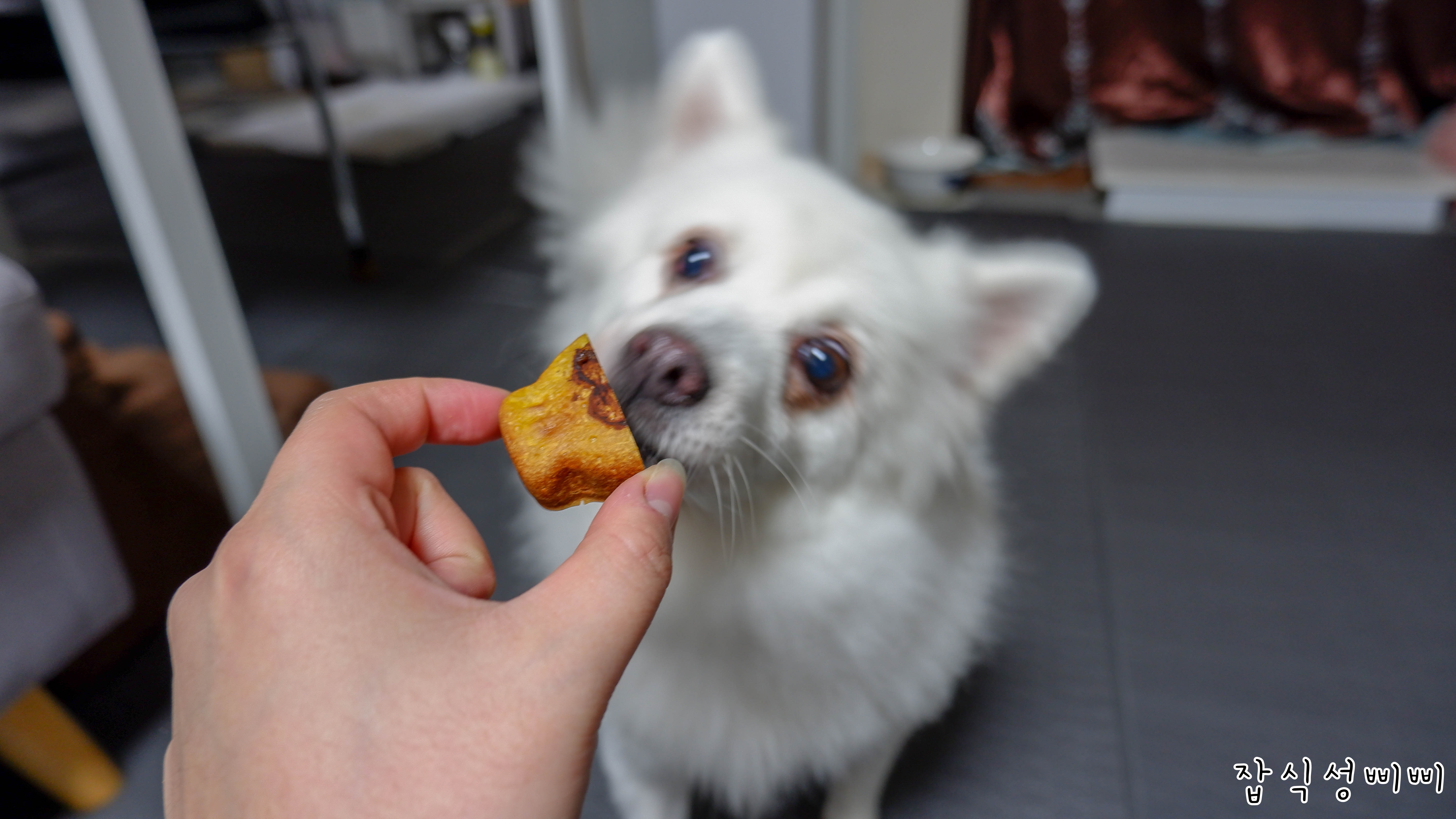 간식 먹을 때 누가 훔쳐가기라도 한건지 항상 얼굴도 안보여주고 허겁지겁 먹어요.
