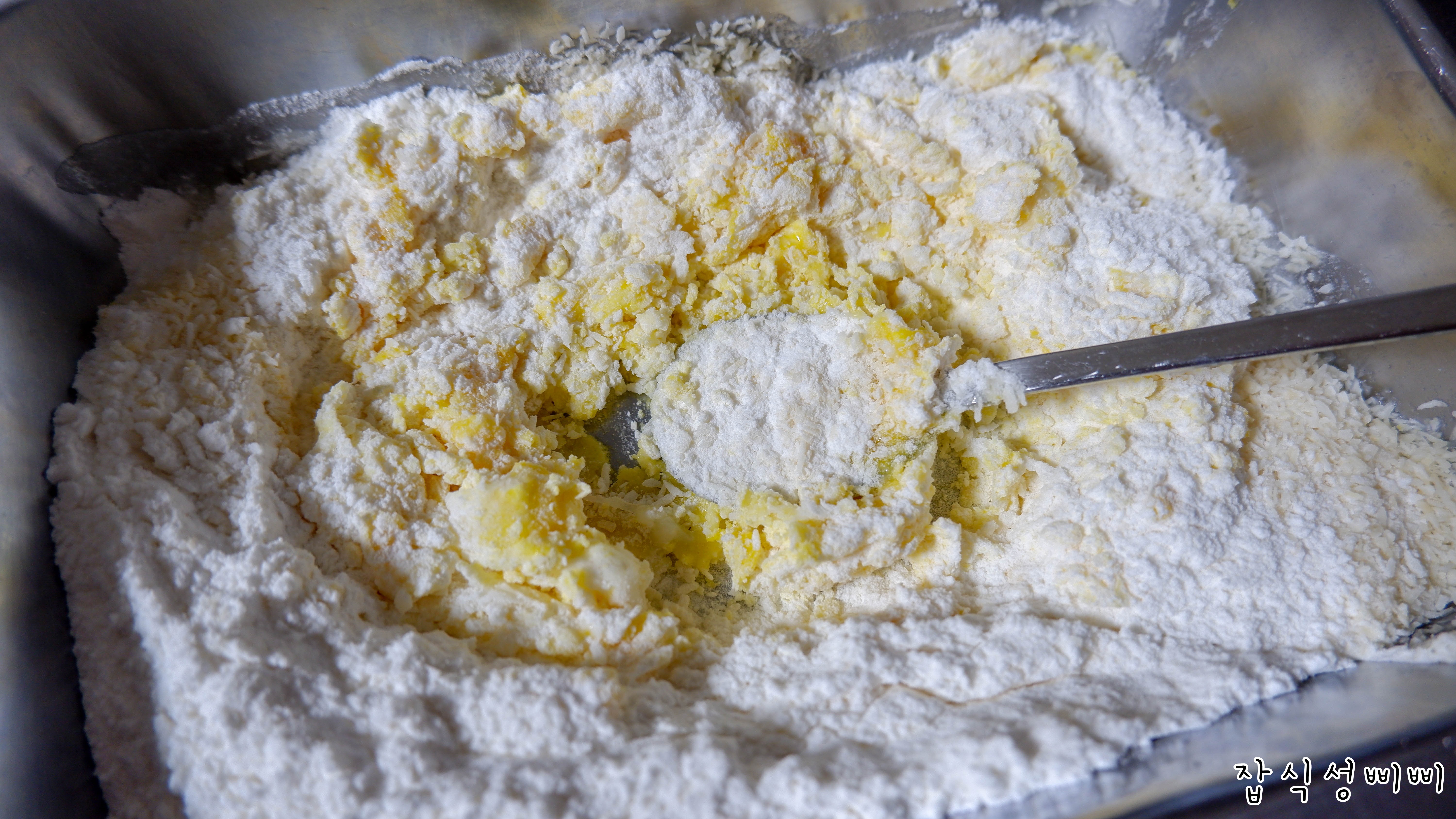 삐삐는 계량컵이 없어서 종이컵 기준으로 만들었는데요~ 쌀가루 3컵, 코코넛가루 2컵 정도로 사용했어요.