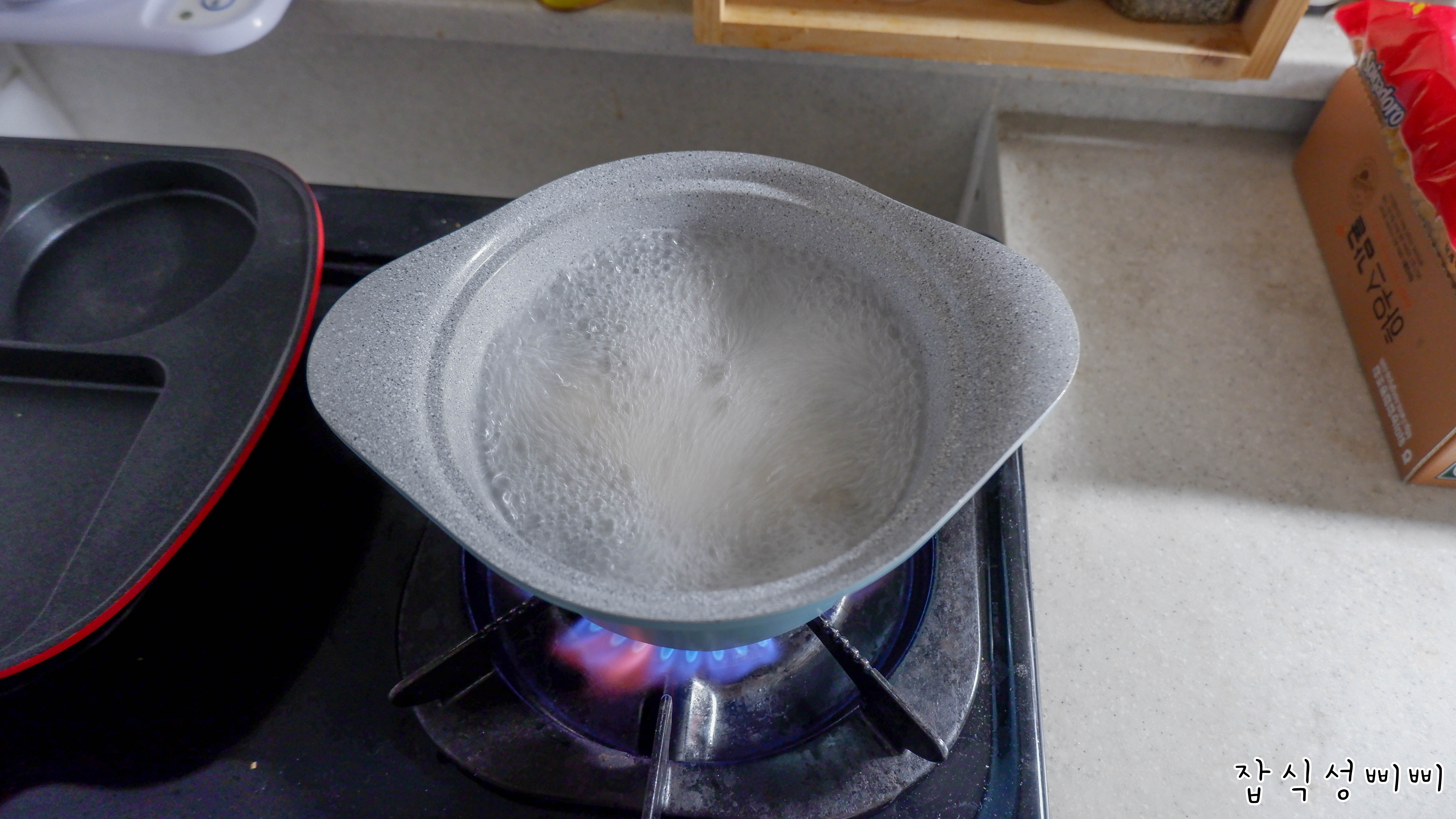 저는 눈대중으로 그냥 대충 종이컵 반컵 정도 털어넣은 것 같아요. ㅋㅋㅋ 진짜 팥은 아니지만 그래두 느낌뿜뿜!
