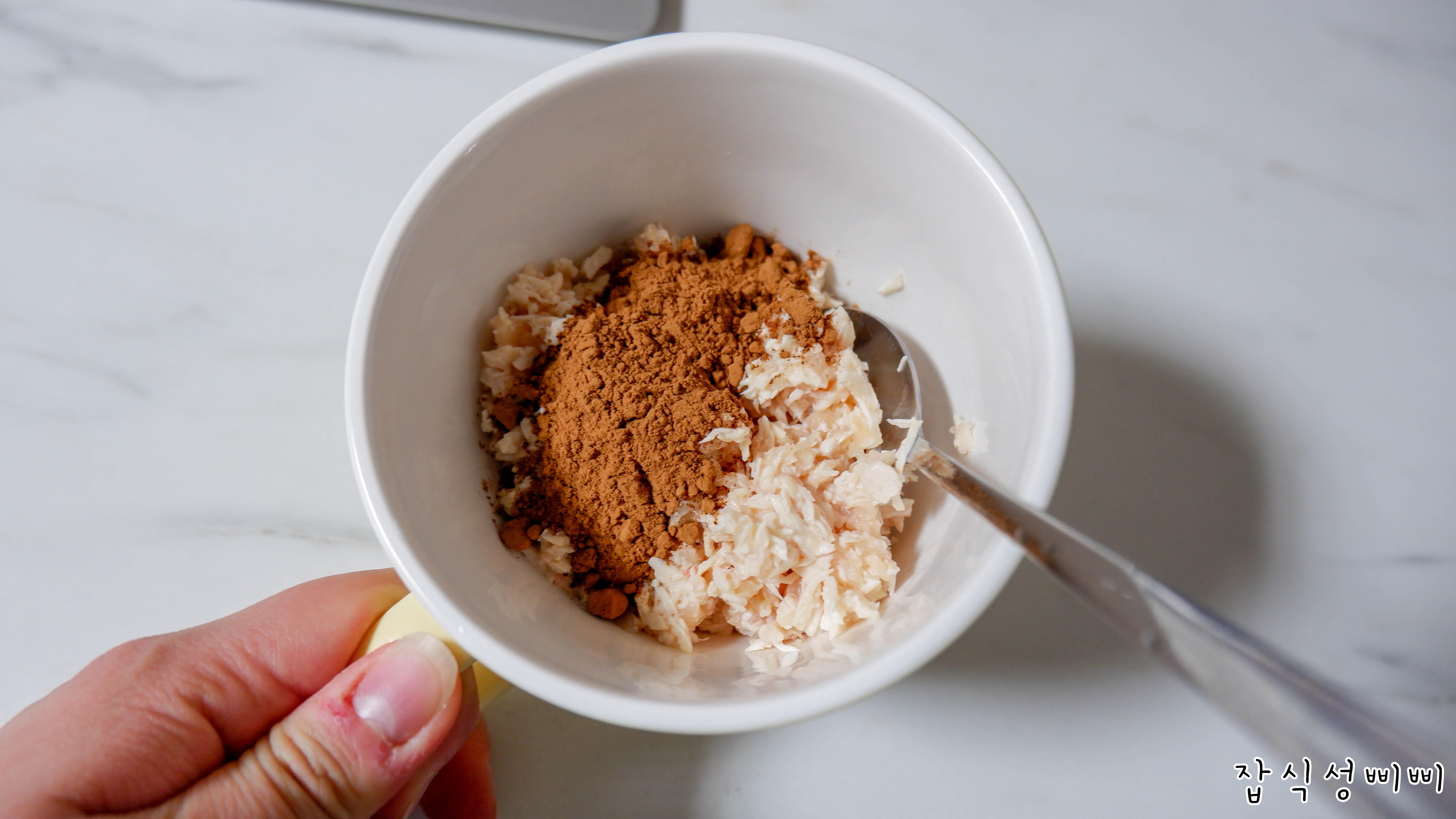 쌀가루와 코코넛가루, 계란을 슥슥 섞어서 반죽으로 뭉쳐줄거에요.