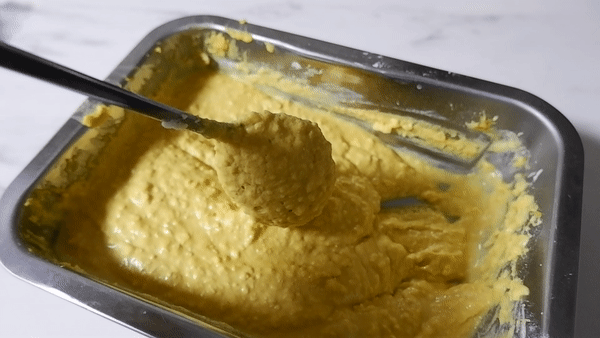 숟가락으로 슥슥 긁어보았을 때, 살짝 묽어서 숟가락에서 주륵 흐를 정도의 농도가 좋아요~