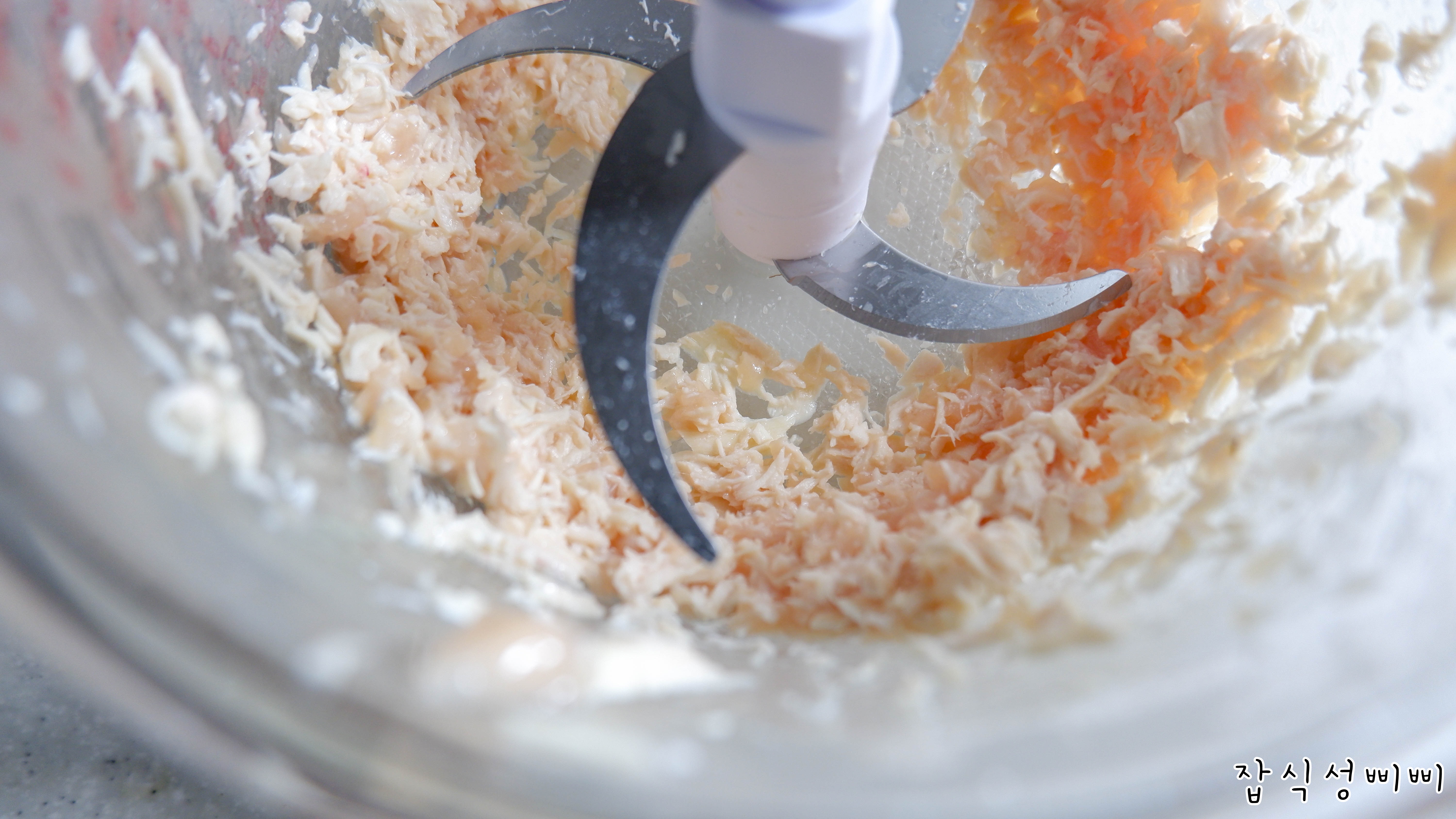 닭가슴살을 푹 삶아서 익혀준 다음, 차퍼를 이용해서 갈아주었어요~ 믹서기보다 요새 차퍼를 더 자주 사용하는 ㅎ;;