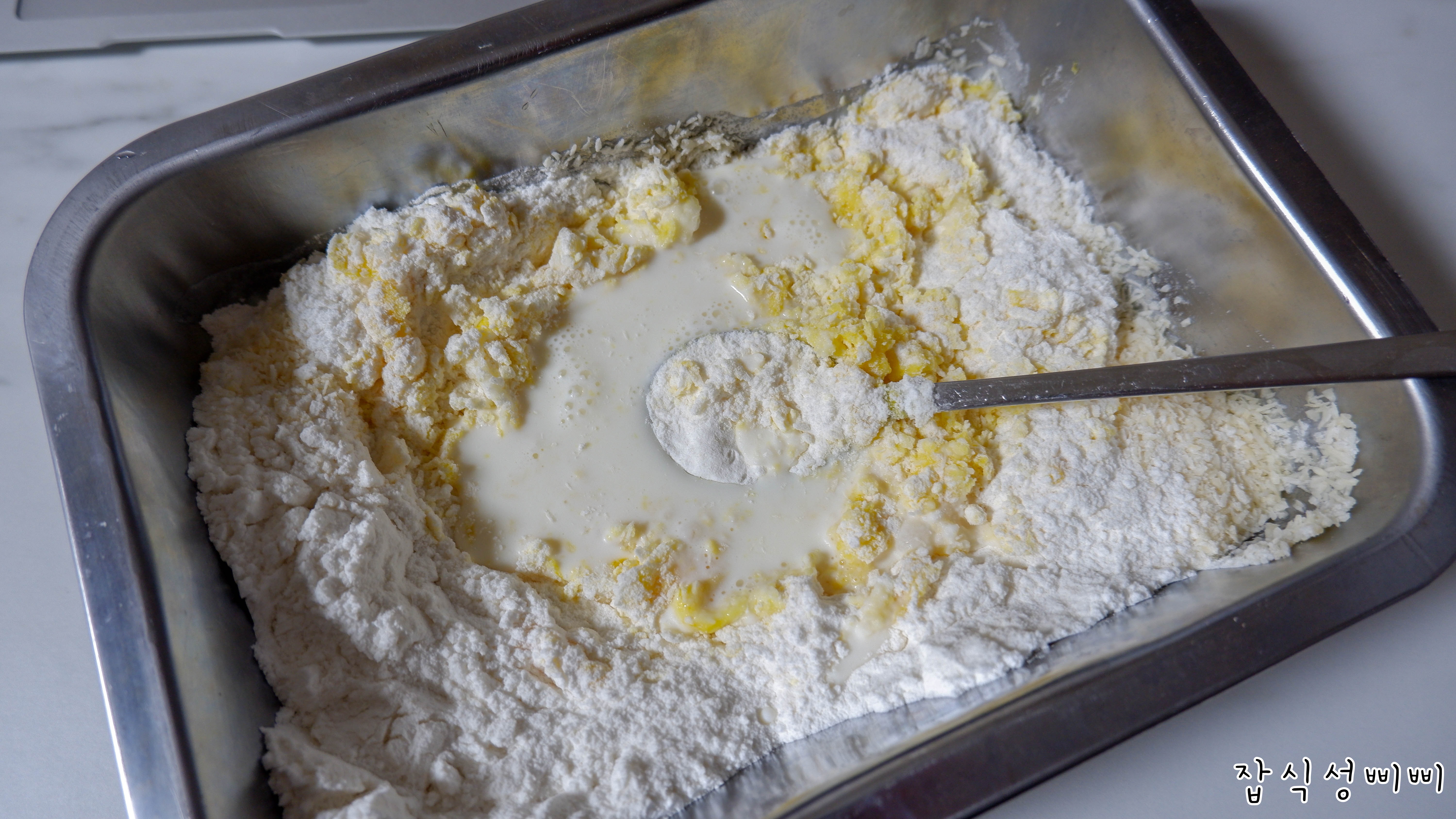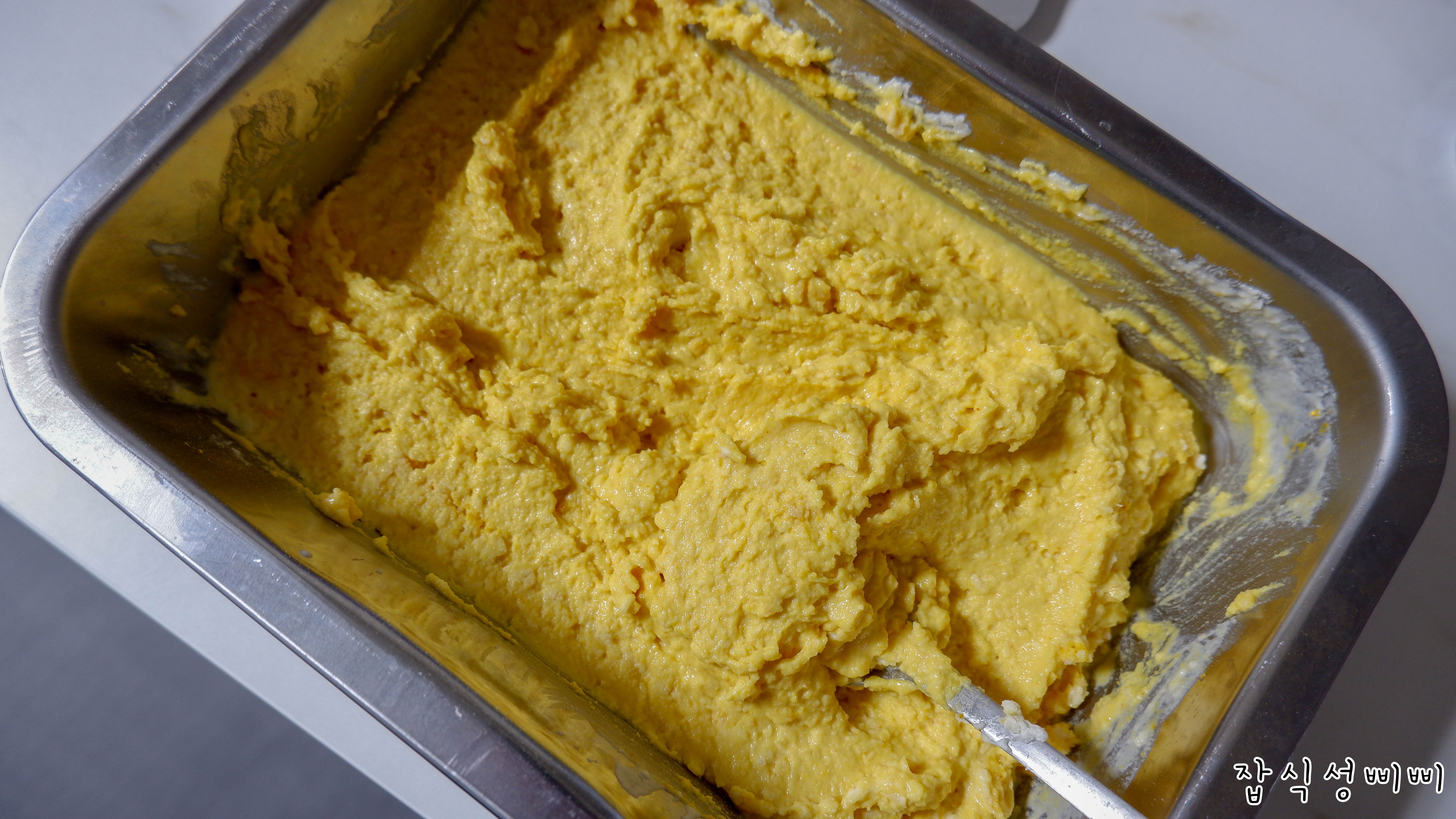 너무 뻑뻑하면 수분감이 없어서 오븐으로 구우면 다 갈라져버리더라구요.
