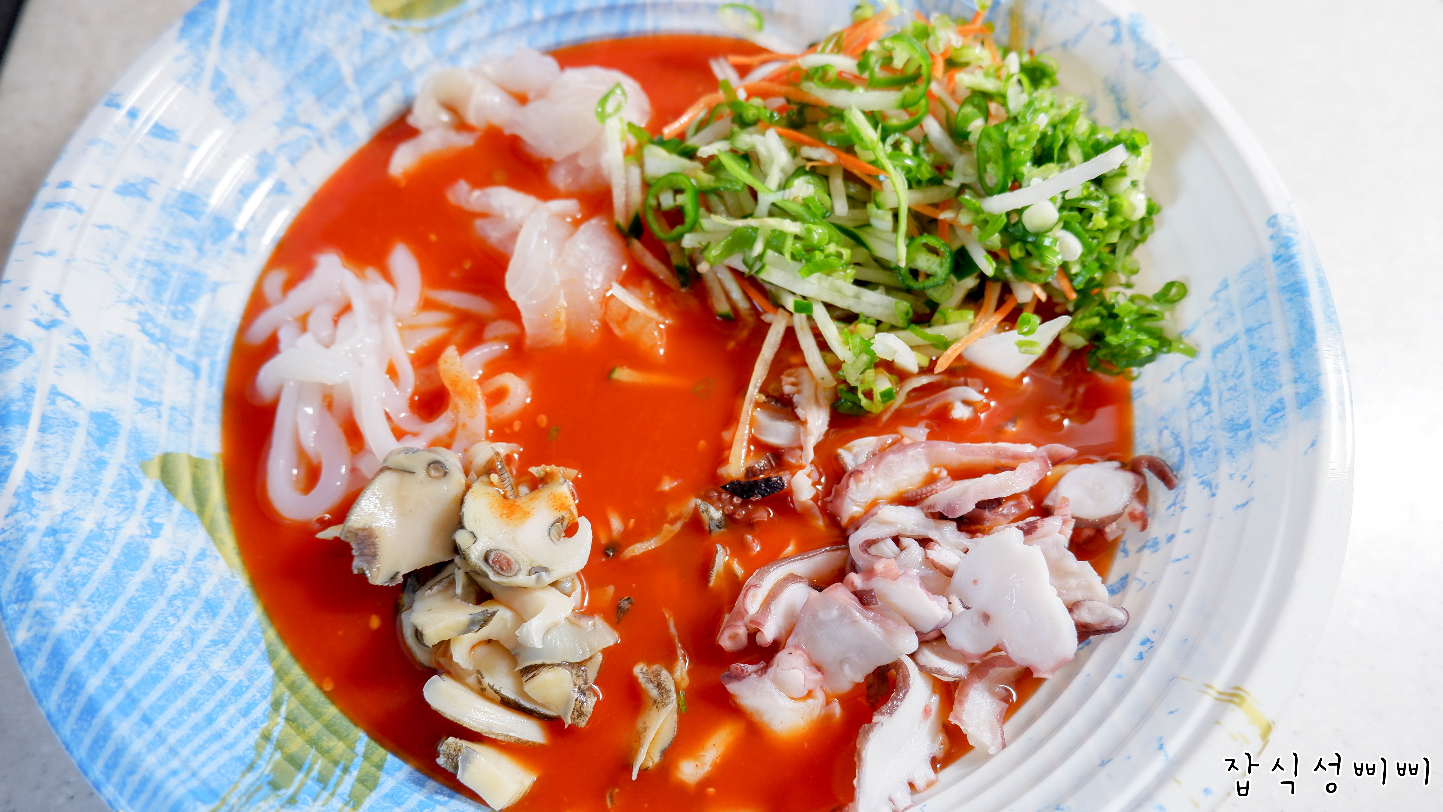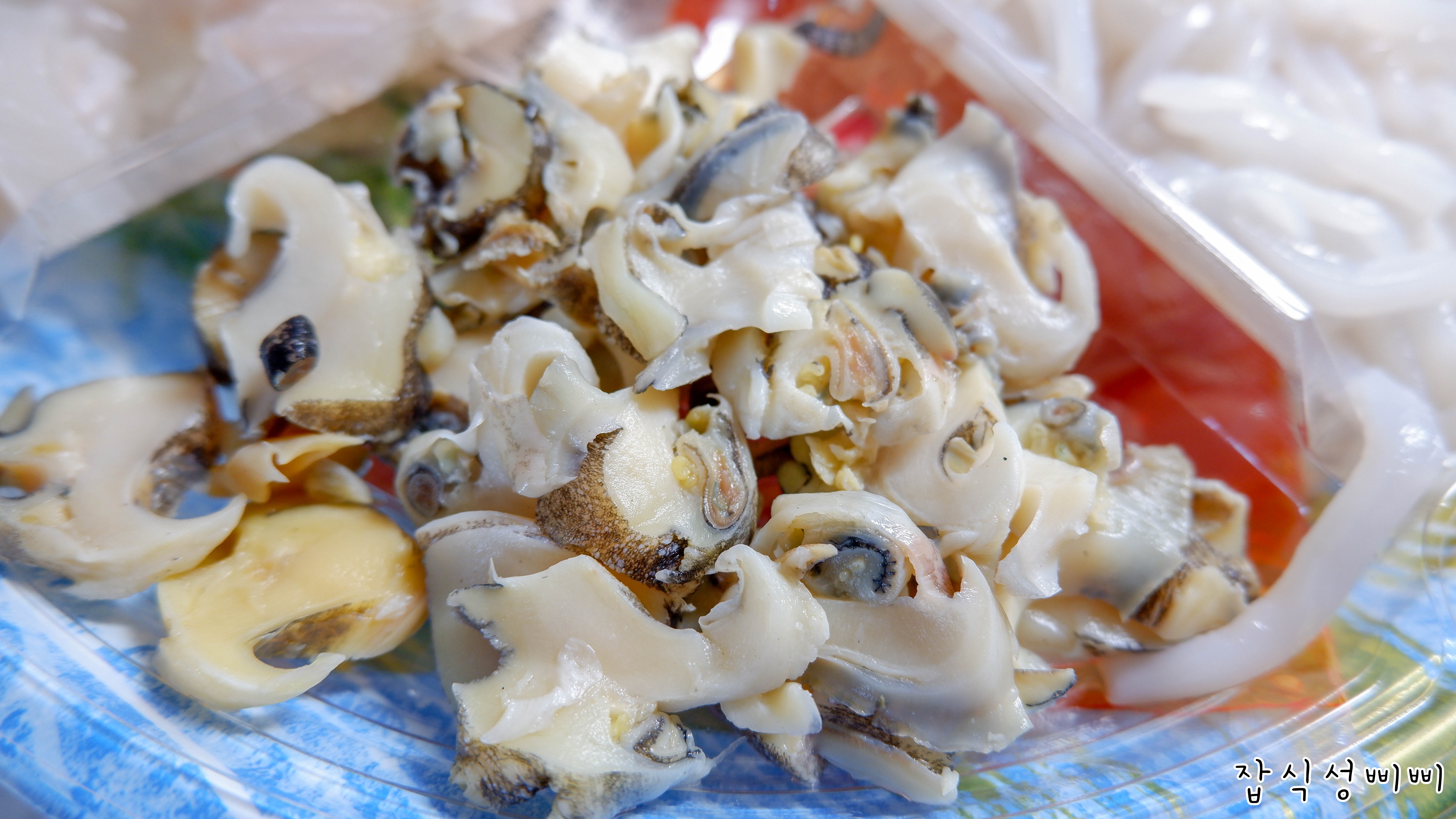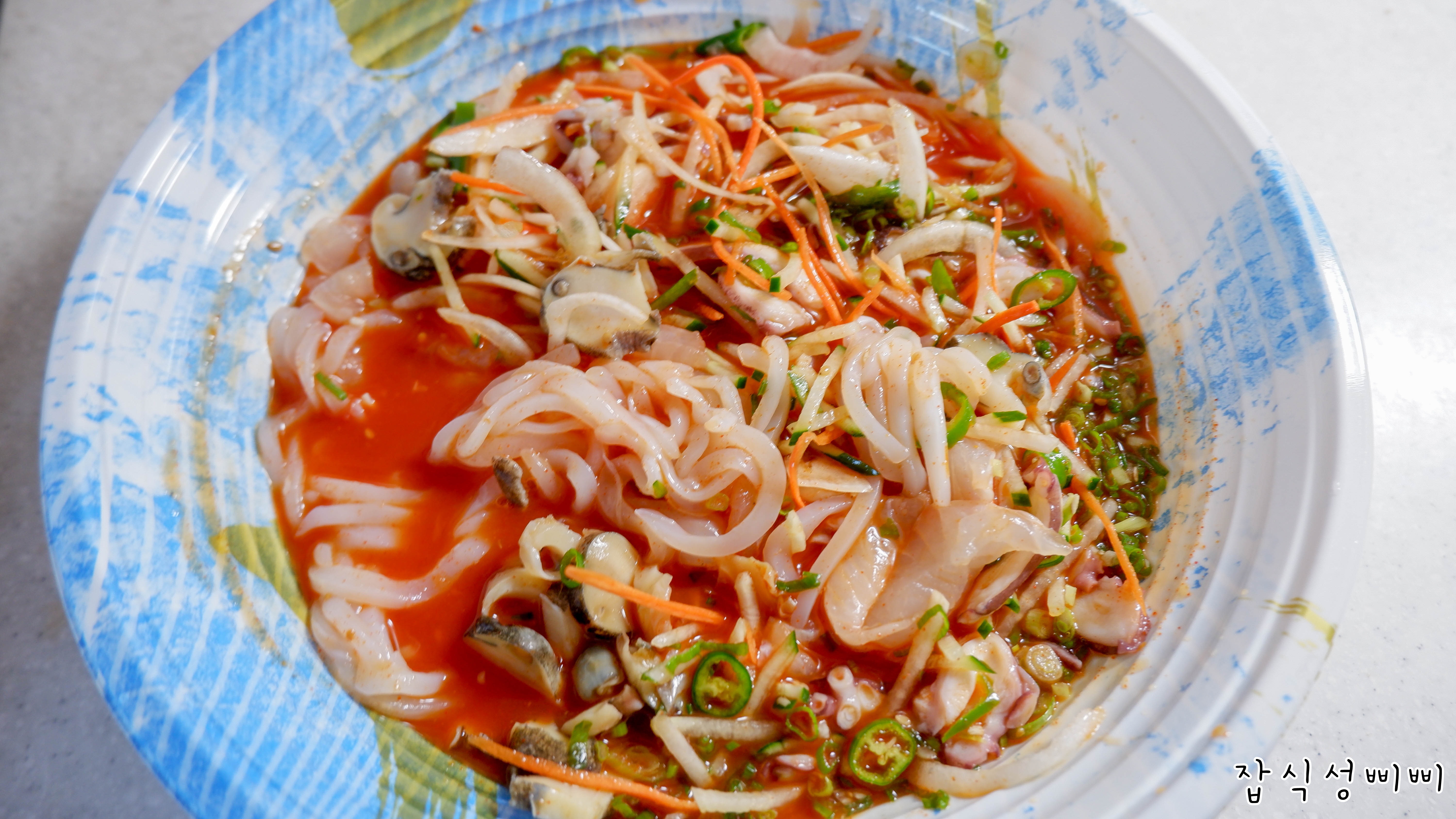 참소라도 먹기 좋은 크기로 손질되어 들어있구요. 양은 그리 많지는 않지만 물회에서 존재감 제대로입니다. ㅋㅋ