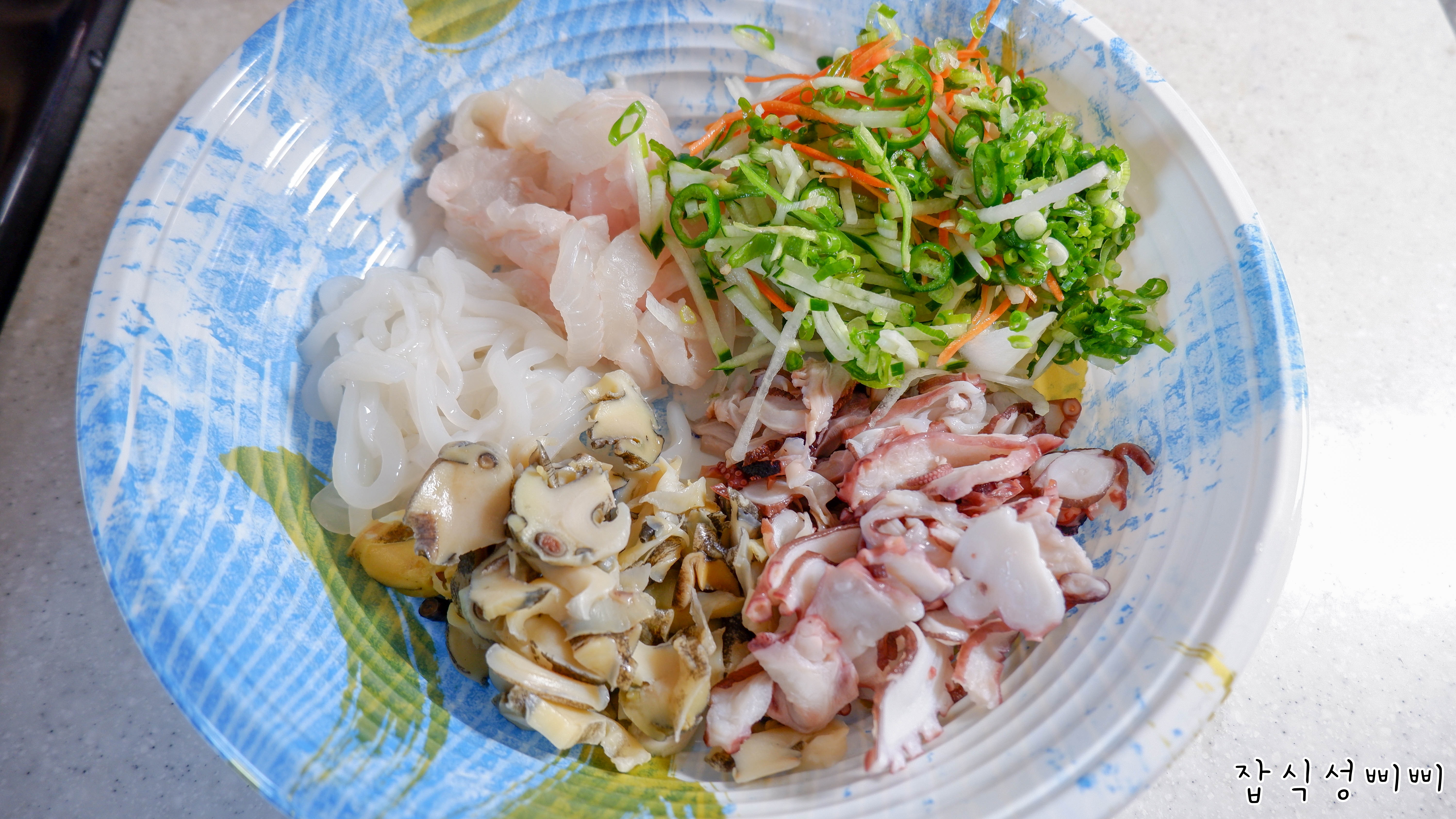 이렇게 한치, 소라, 문어, 광어까지 들어있어서 양이 푸짐하더라구요. 물론 2인용입니다. ㅋㅋ